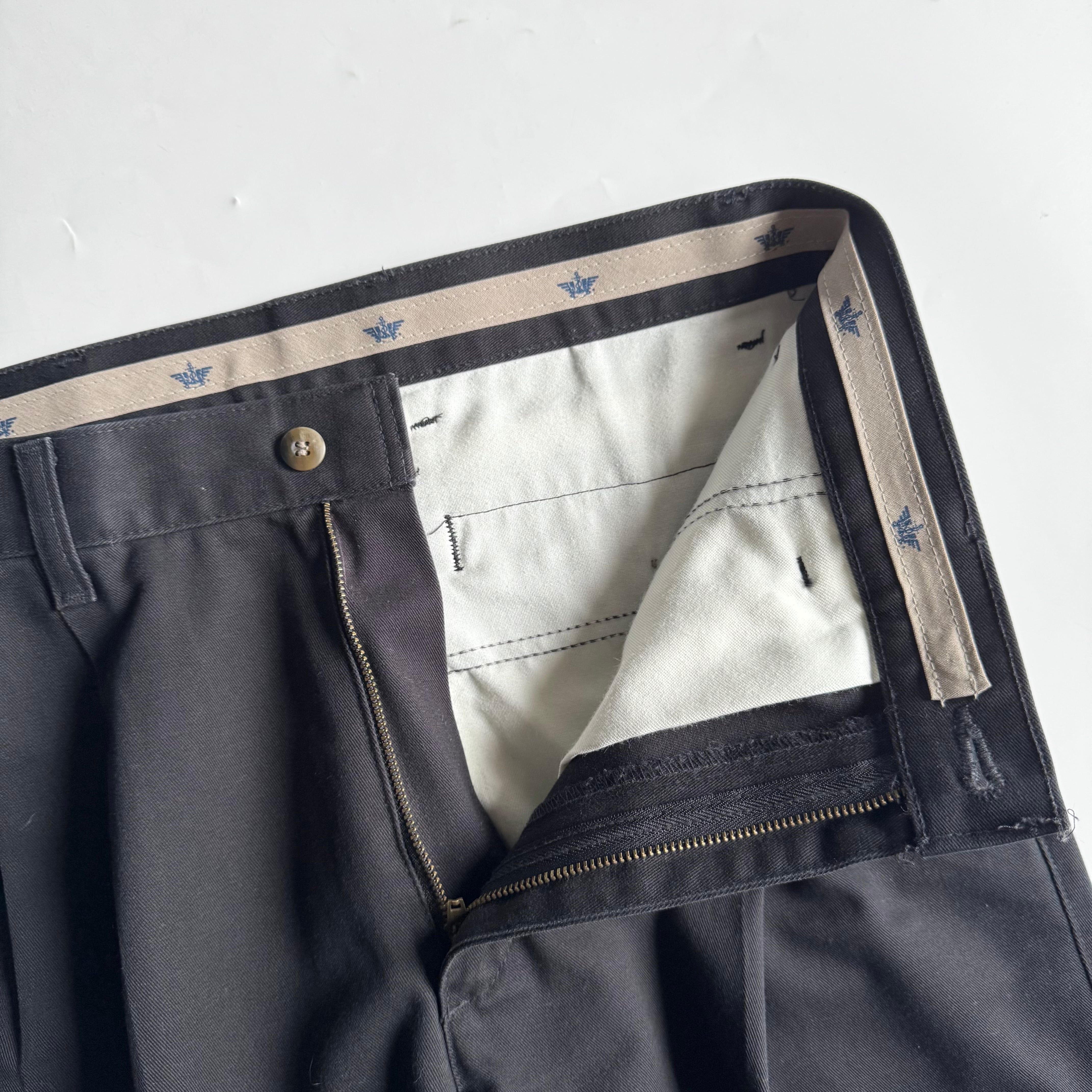 •SIZE W32 L34 ウエスト 83cm 股上 29cm 股下 80cm わたり 33cm 裾幅 22cm 175cm着用(ベルトで絞ってハイウエスト) •MATERIAL COTTON 100% •COLOR ブラック •CONDITION 使用感はございますが、目立った傷や汚れ等はございません。 gar1992