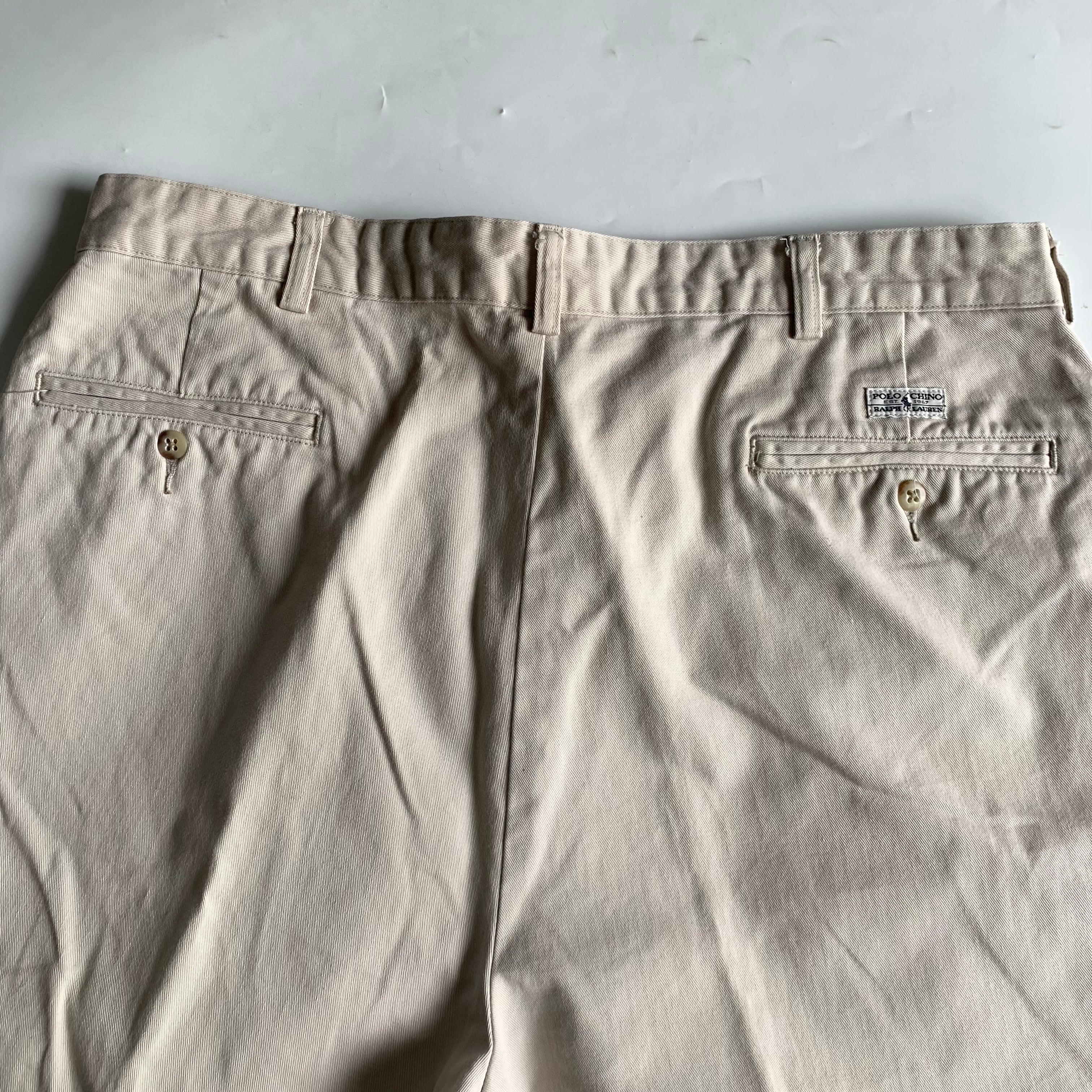 •SIZE 38×30 ウエスト 94cm 股上 33cm 股下 76cm 渡り幅 36cm 裾幅23cm 175cm着用(ベルトで絞ってハイウェスト) •MATERIAL COTTON 100% •COLOR ベージュ •CONDITION 使用感はございますが、目立った傷や汚れ等はございません。 ya5636