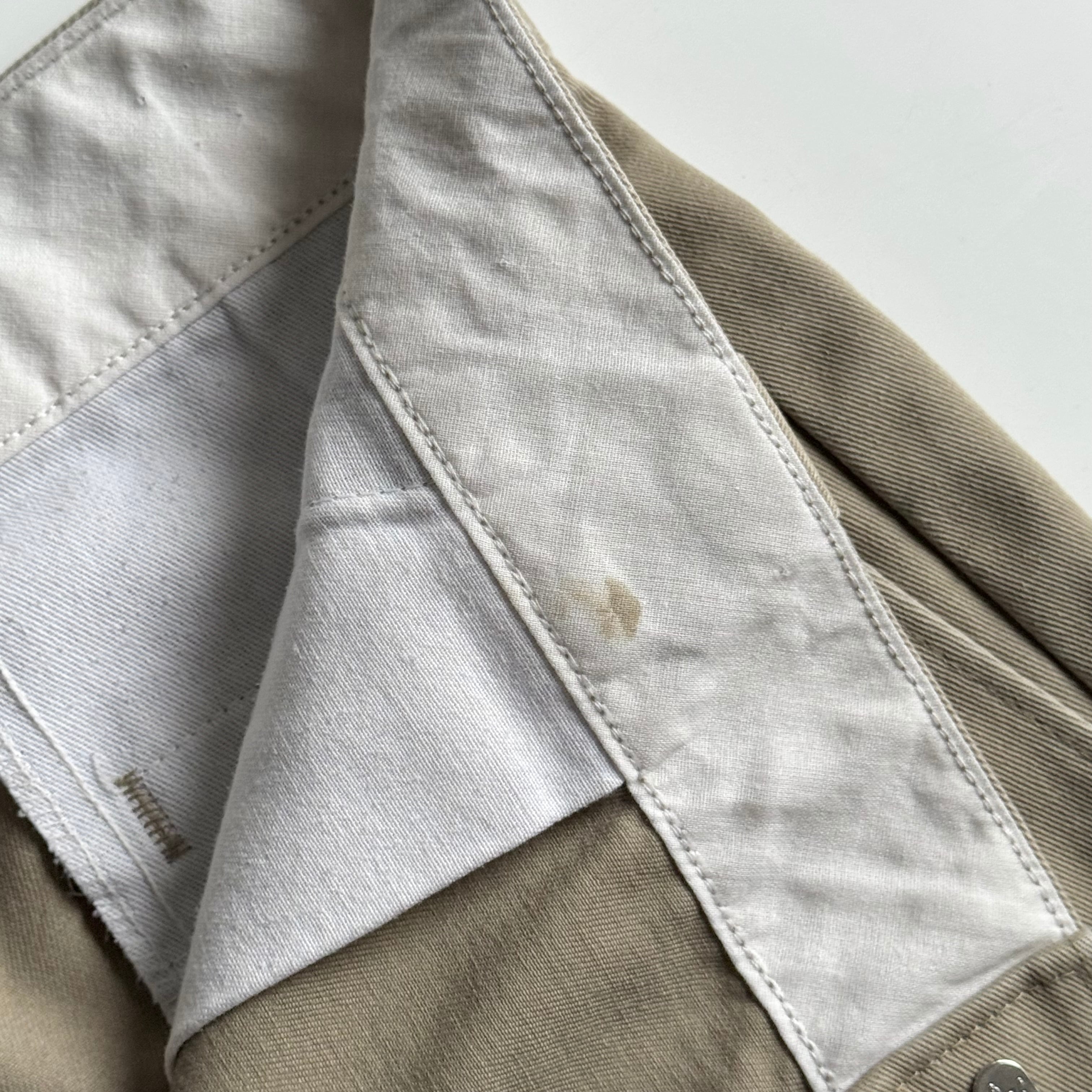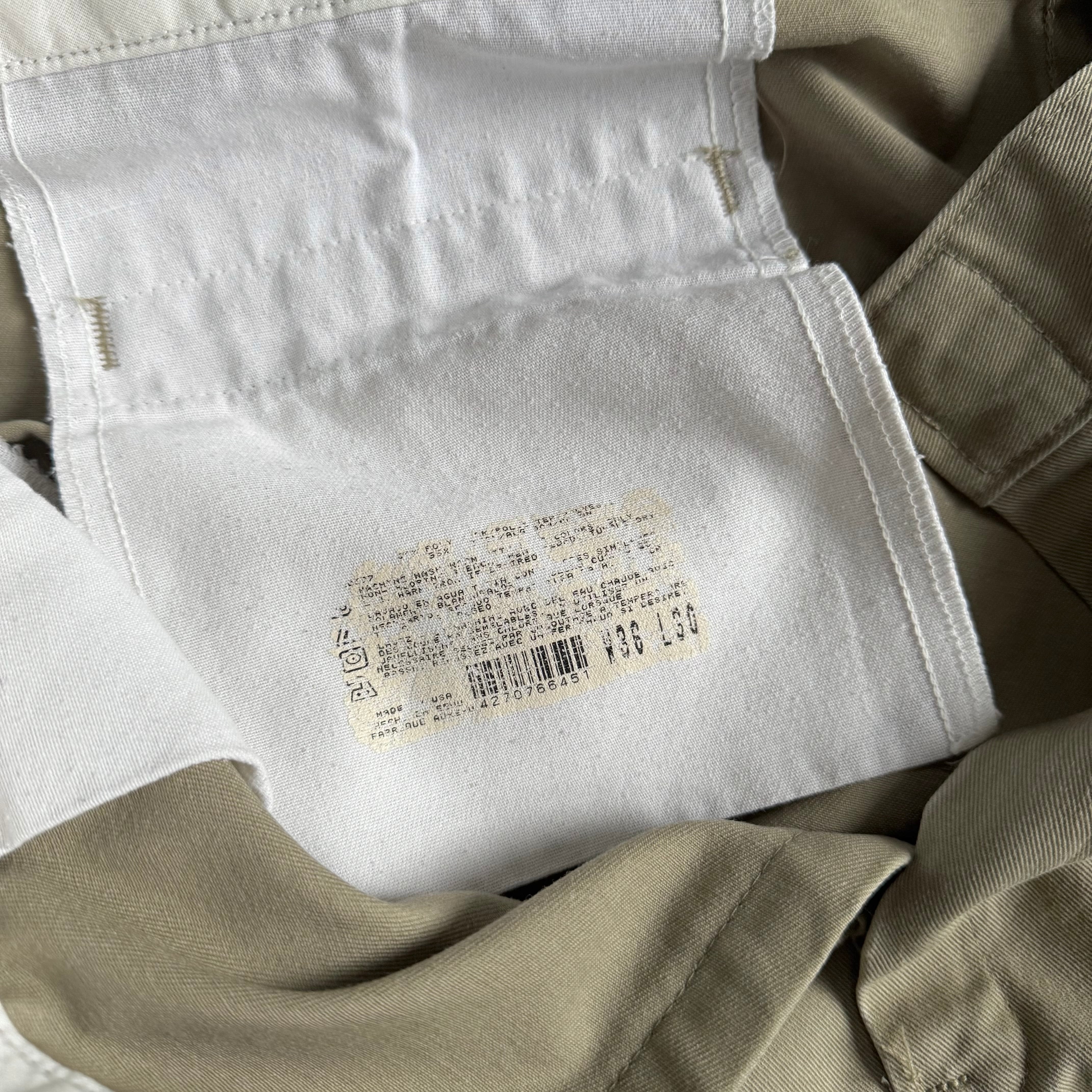•SIZE W36 L30 ウエスト 90cm 股上 33cm 股下 66cm わたり 33cm 裾幅 24cm 175cm着用 •MATERIAL POLYESTER 65% COTTON 35% •COLOR ベージュ •CONDITION 使用感、フロントと内側に小さな汚れ。 写真にてご確認ください。 gar2019
