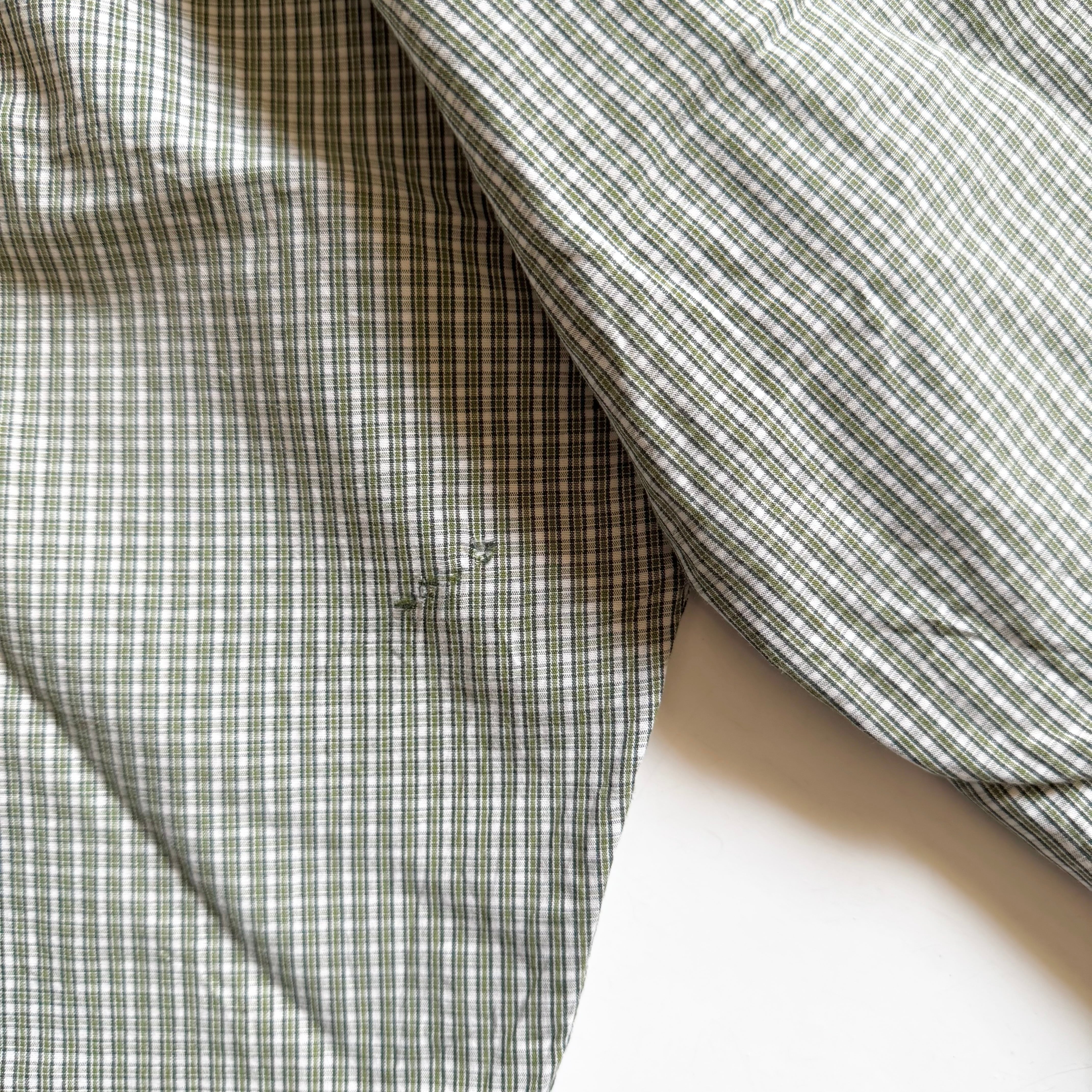 •SIZE L 肩幅 53cm 袖丈 60cm 身幅 63cm 着丈 80.5cm •MATERIAL COTTON 100% •COLOR グリーン ホワイト •CONDITION アームにダメージ。 写真にてご確認下さい。 ya5945