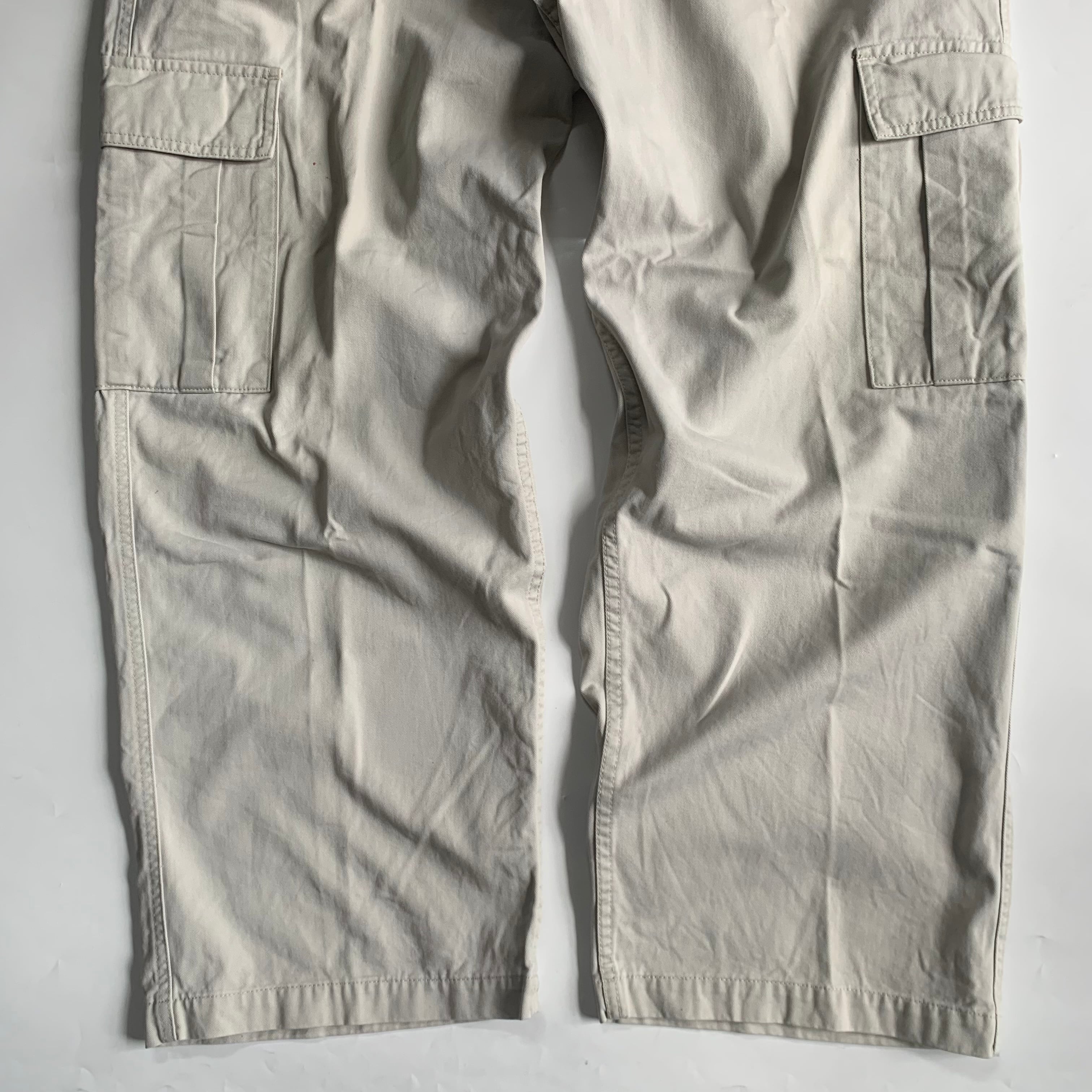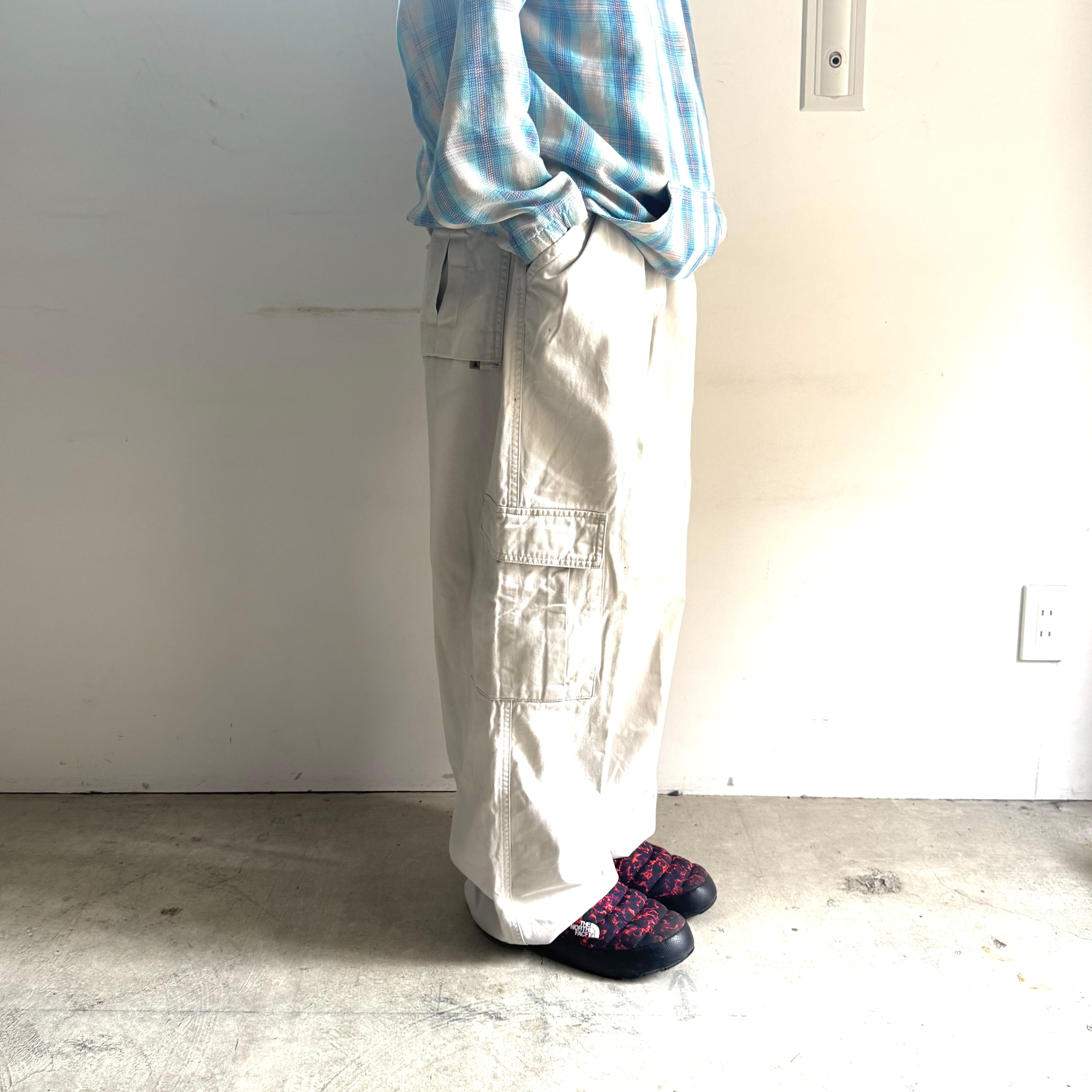 •SIZE ウエスト 96cm 股上 36cm 股下 77.5cm わたり 39cm 裾幅 27cm •MATERIAL Cotton100% •COLOR オフホワイト •CONDITION 汚れあり kt296