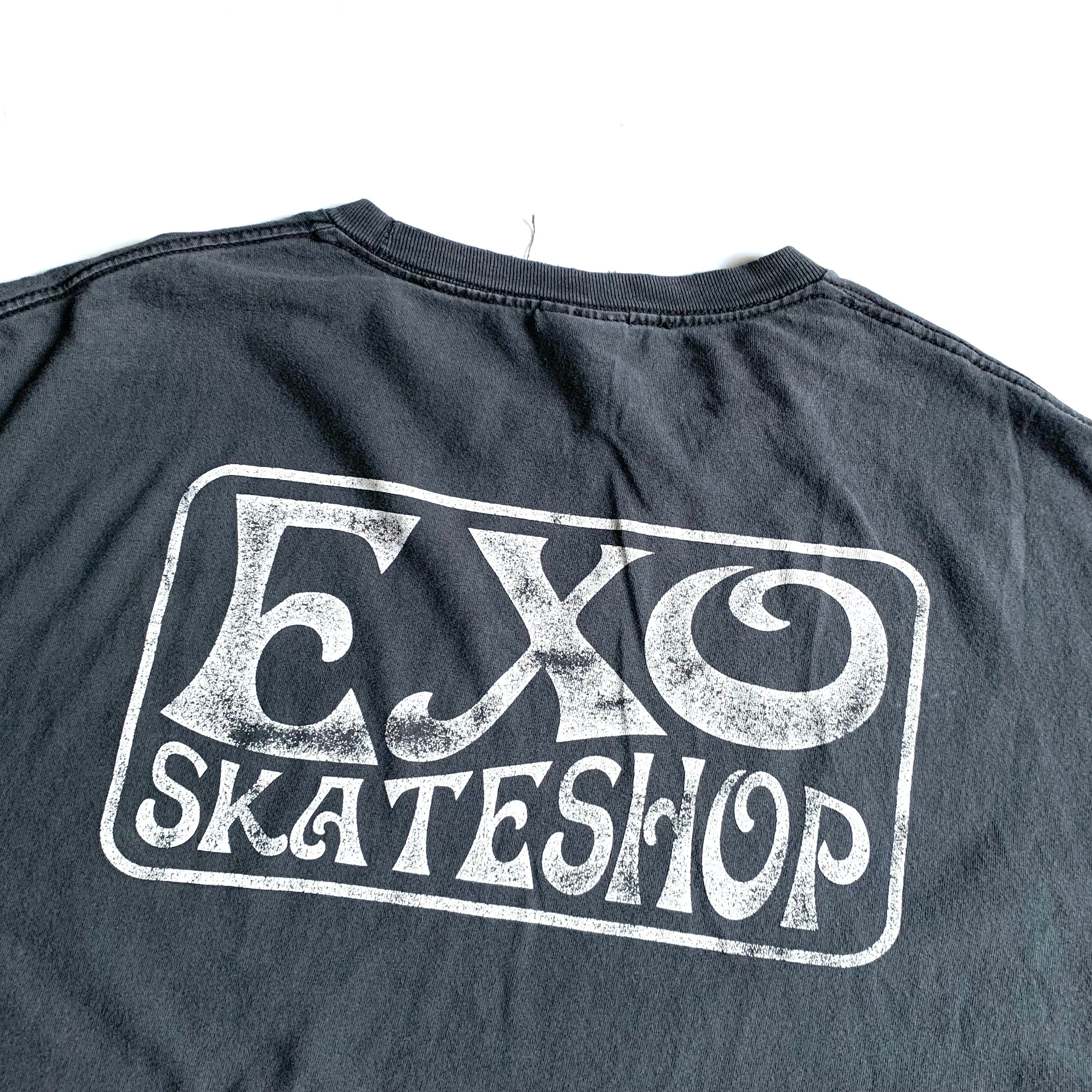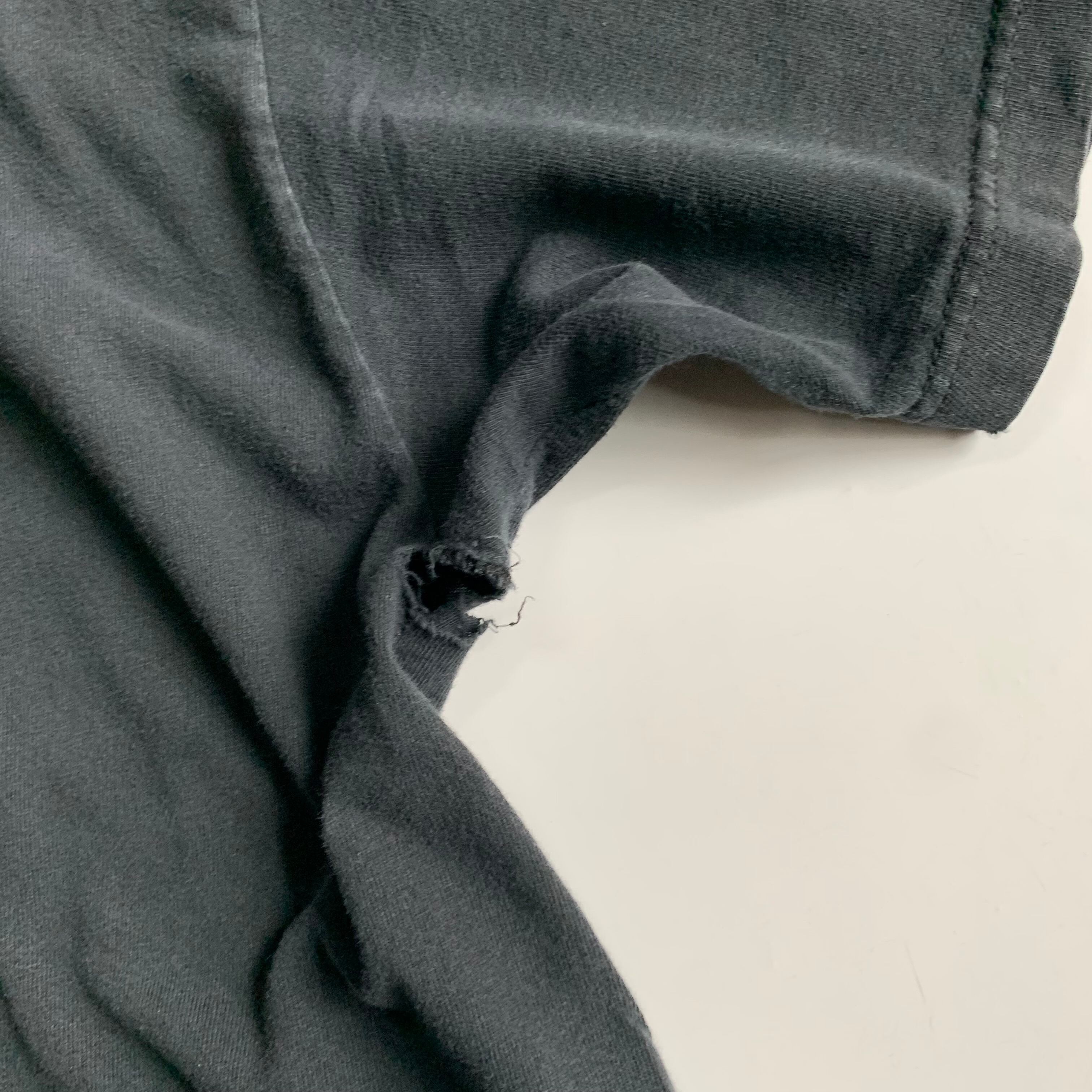 カナダにあるスケートショップのオリジナル プリントの割れやフェード感諸所いい雰囲気◎ •SIZE 肩幅 65cm 袖丈 23cm 身幅 64cm 着丈 77cm •MATERIAL COTTON 100% •COLOR ブラック •CONDITION 全体的にフェード、所々に破れあり。 kt328