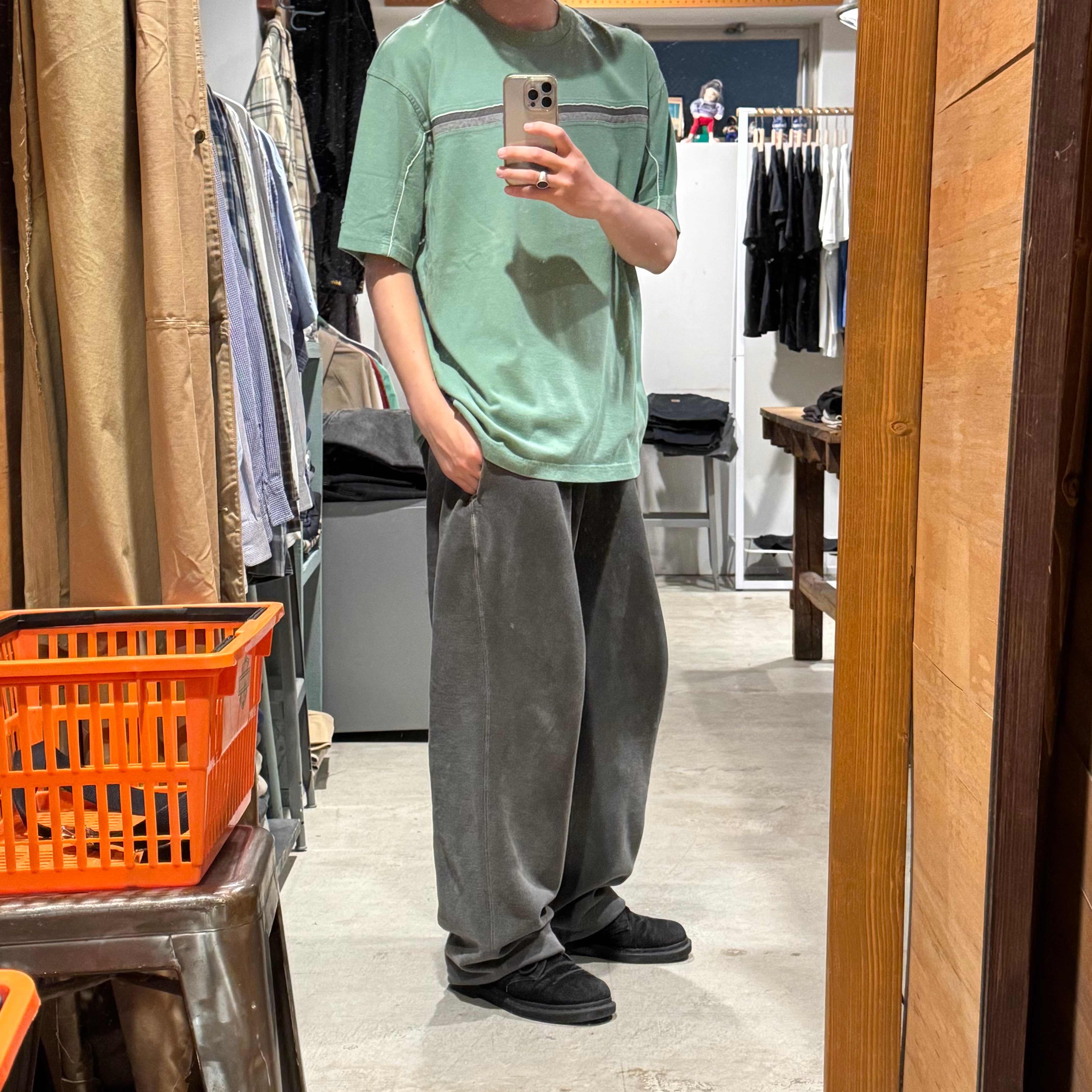 たまにはこういうアースカラー まっすぐ着るのもレイヤーで着るのも◎ •SIZE XL 肩幅 56cm 袖丈 25cm 身幅 61cm 着丈 73.5cm 175cm着用 •MATERIAL COTTON 100% •COLOR グリーン系 •CONDITION 使用感、背タグに劣化。 写真にてご確認ください。 fuk191