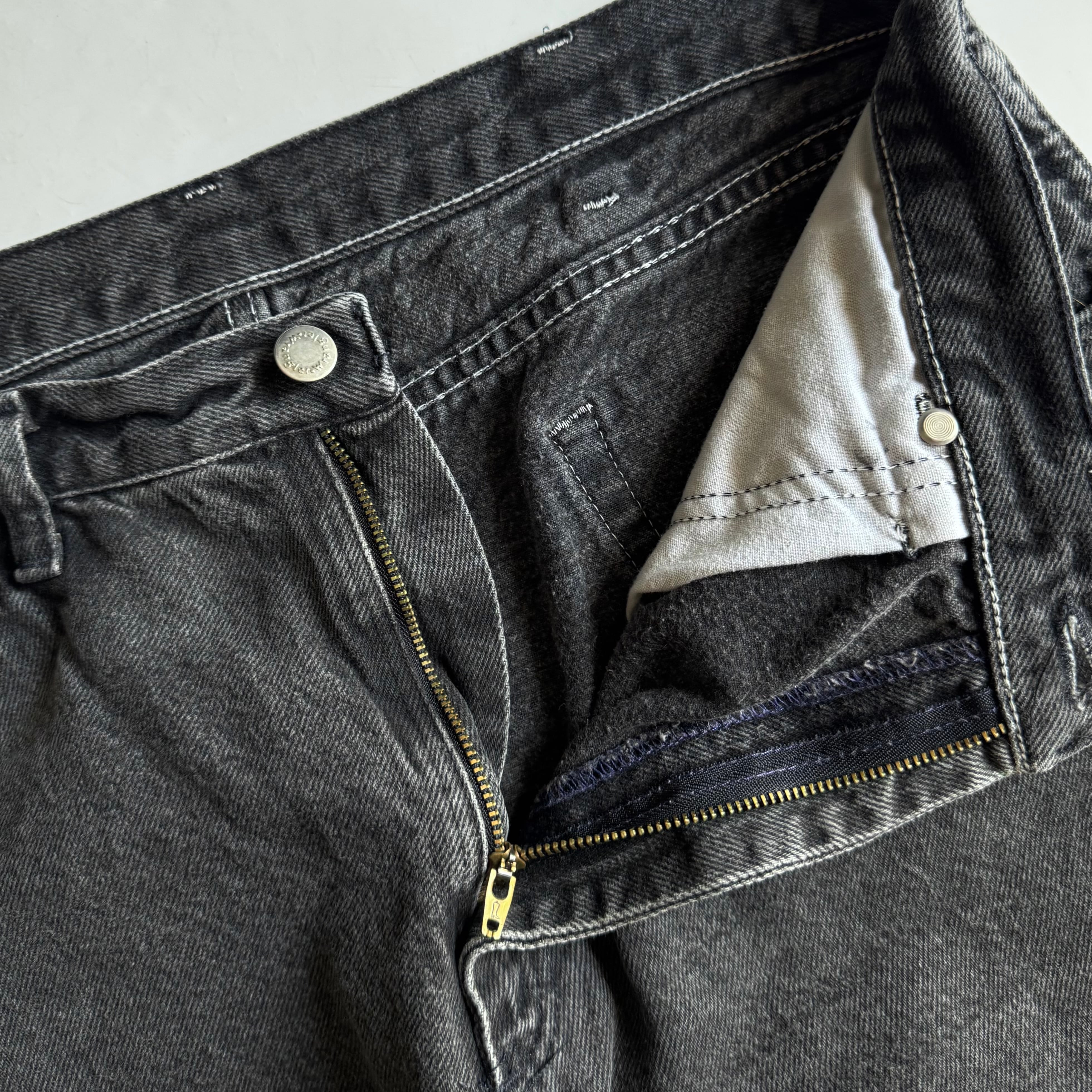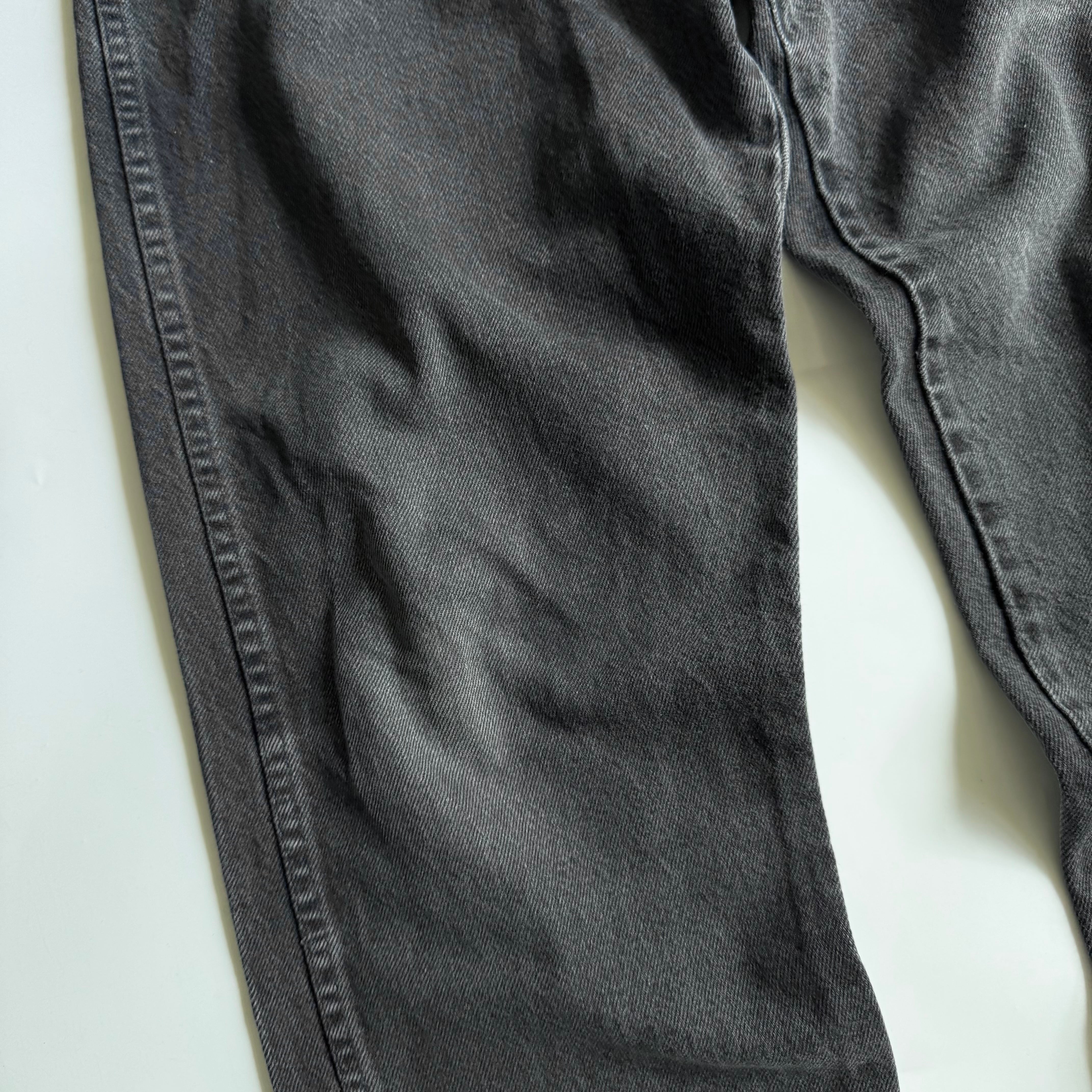 •SIZE 表記不明 ウエスト 89cm 股上 32.5cm 股下 76cm わたり 33.5cm 裾幅 19cm •MATERIAL COTTON 100% •COLOR ブラック •CONDITION 使用感、フェード感、裾にダメージ。 写真にてご確認下さい。 ya5989