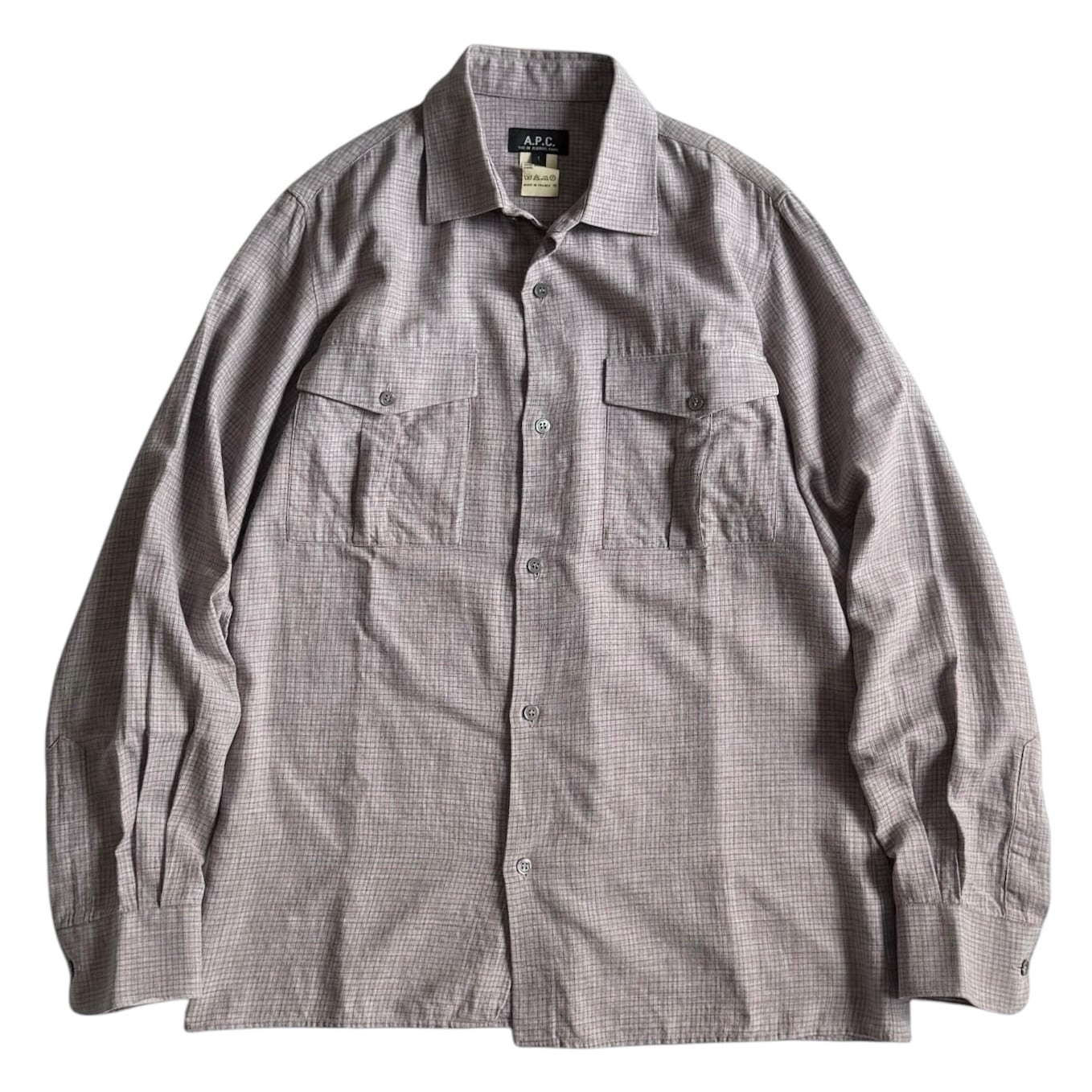 フランス製の古いA.P.C. ヨーロッパなサイズ感で アメリカンな雰囲気 •SIZE 1 肩幅 42cm 袖丈 62.5cm 身幅 52cm 着丈 70.5cm 175cm着用 •MATERIAL COTTON 82% WOOL 18% •COLOR グレー系 レッド •CONDITION 使用感はございますが、目立った傷や汚れ等はございません。