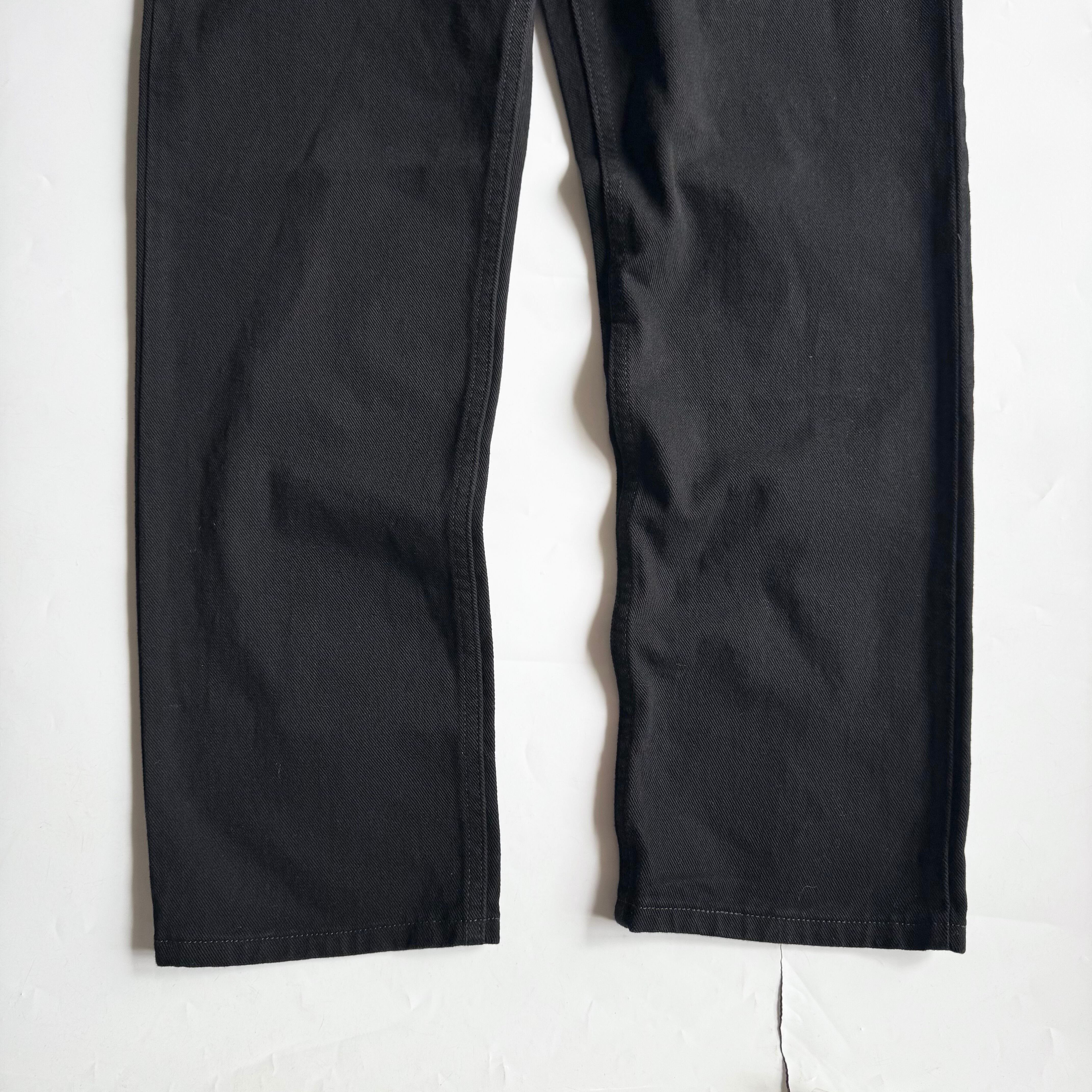 •SIZE W34 L30 ウエスト 88cm 股上 28cm 股下 77cm わたり 31cm 裾幅 20cm 175cm着用 •MATERIAL Cotton100% •COLOR ブラック •CONDITION 使用感はございますが、目立った傷や汚れ等はございません。 デッドストック。 gar2199