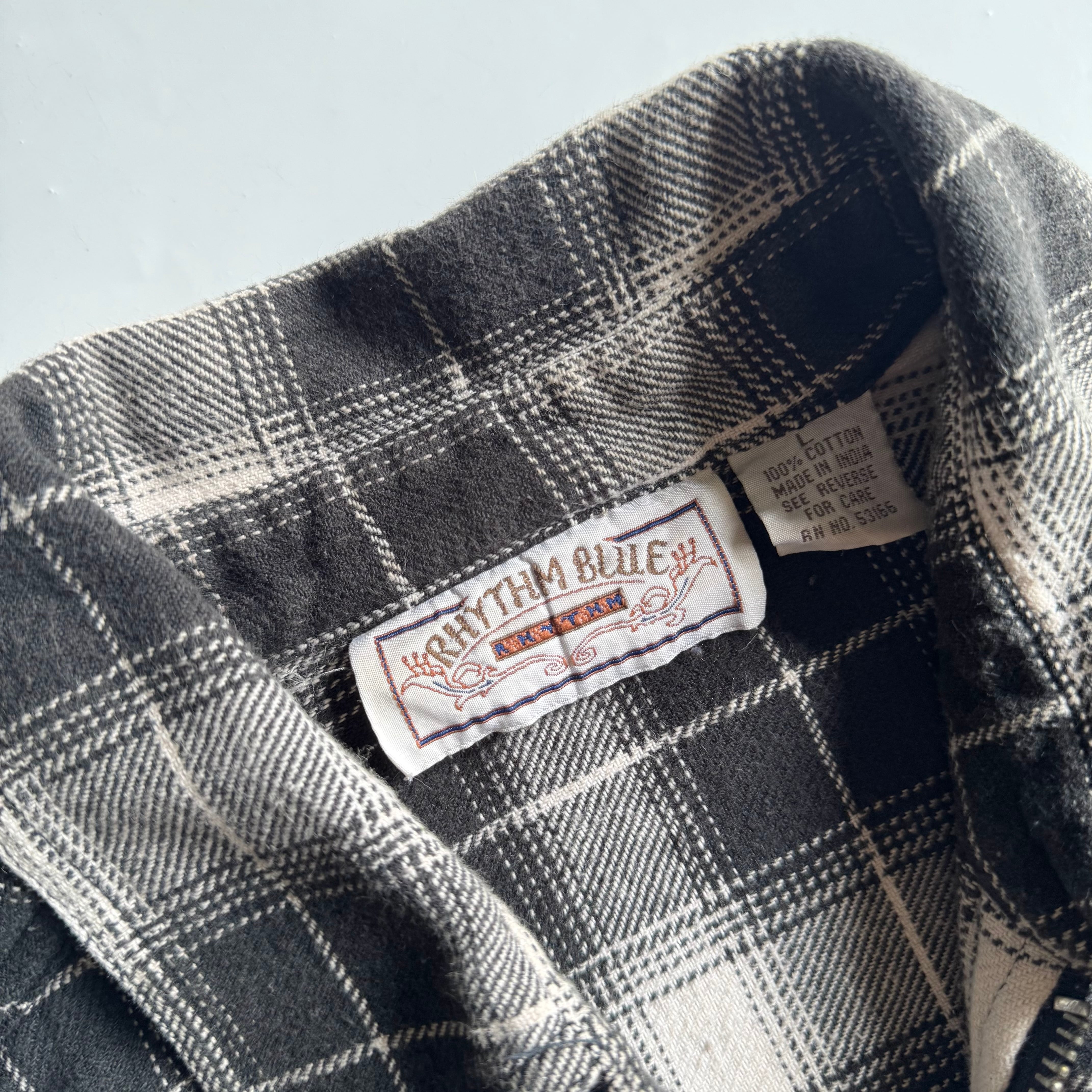 •SIZE L 肩幅 54cm 袖丈 57.5cm 身幅 60cm 着丈 74.5cm 175cm着用 •MATERIAL COTTON 100% •COLOR ブラック ホワイト •CONDITION 使用感、両袖口のボタン欠損。 写真にてご確認下さい。 ya6023