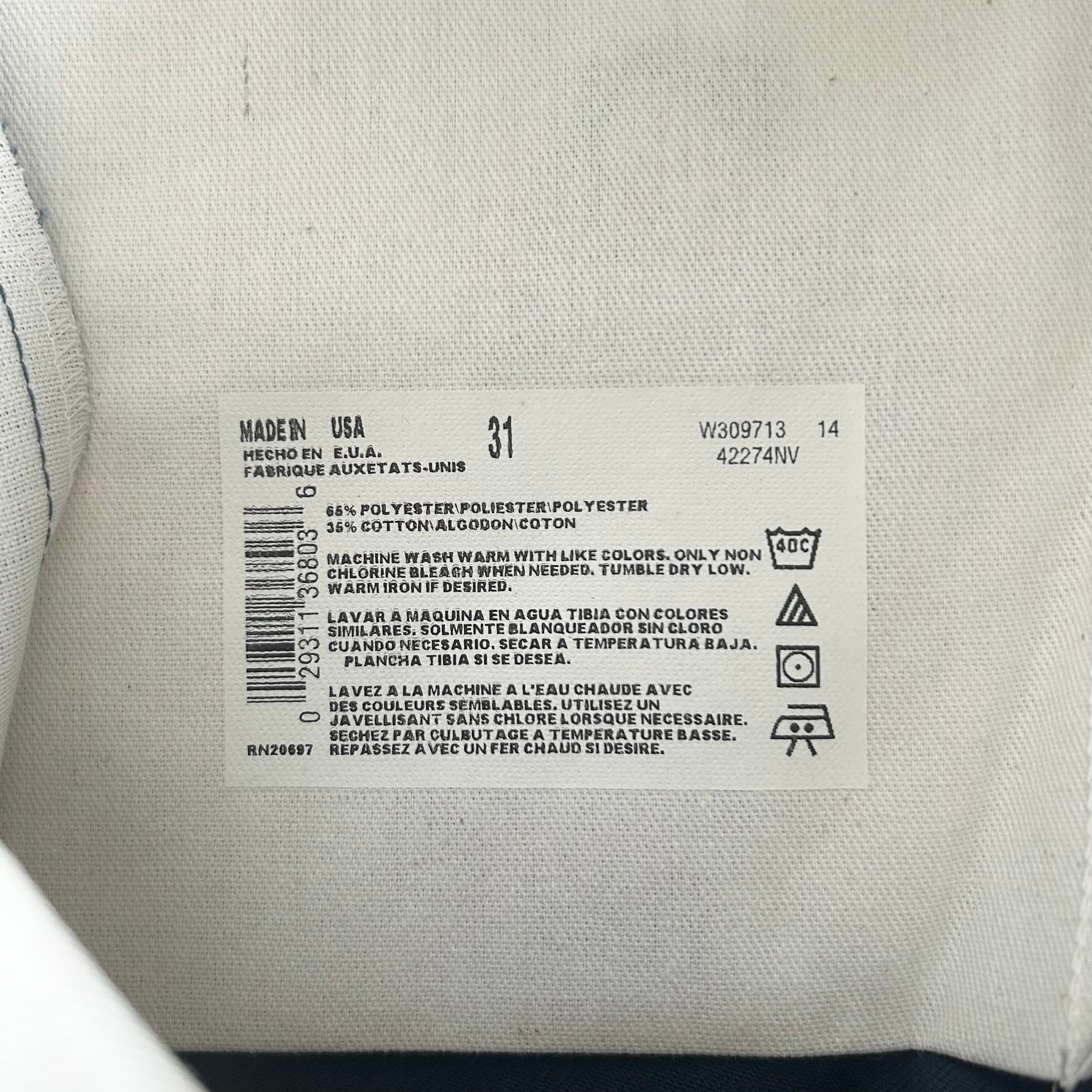 •SIZE 31 ウエスト 79cm 股上 33cm 股下 33cm わたり 25cm 裾幅 28.5cm •MATERIAL Polyester65% Cotton35% •COLOR ネイビーブルー •CONDITION デッドストック P986