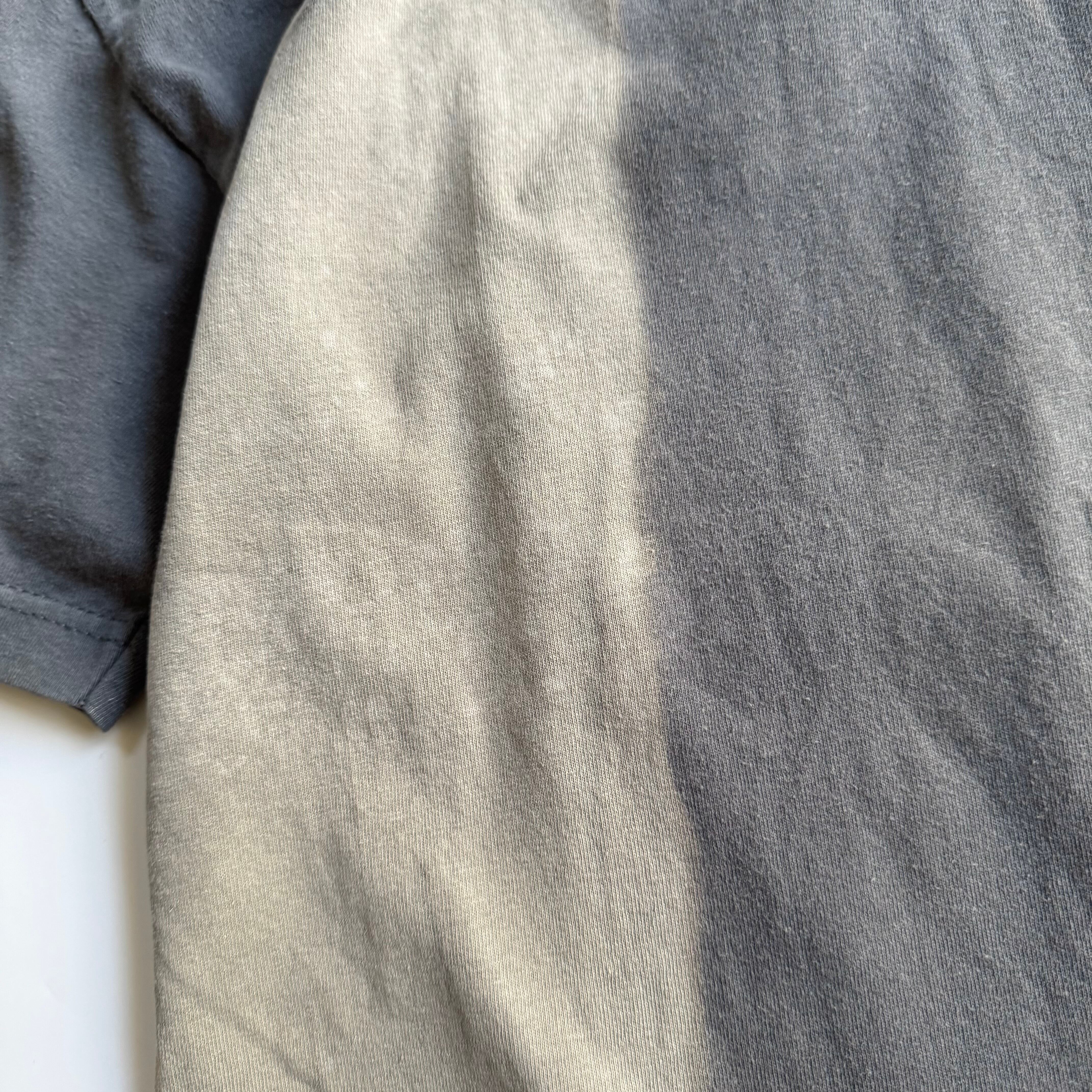 ランダムなブリーチがいい雰囲気です •SIZE L 肩幅 53.5cm 袖丈 22cm 身幅 54cm 着丈 76.5cm •MATERIAL COTTON 100% •COLOR チャコールグレー系 •CONDITION 使用感がございます。 写真にてご確認ください。 f709