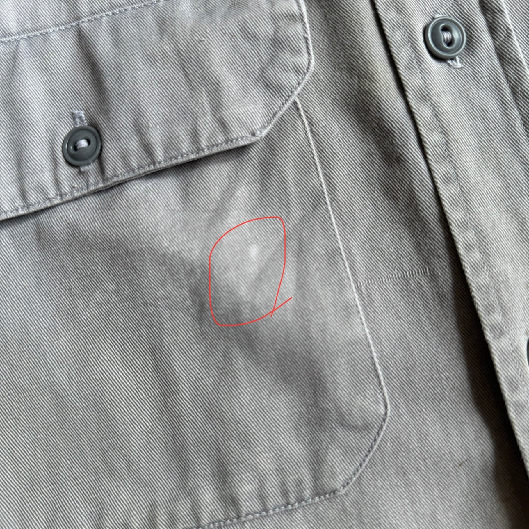 •SIZE 16 1/2 肩幅 49.5cm 袖丈 15cm 身幅 62cm 着丈 73cm •MATERIAL COTTON 100% •COLOR グレーベージュ系 •CONDITION 全体的に使用感、汚れあり。 写真にてご確認下さい。 kt377