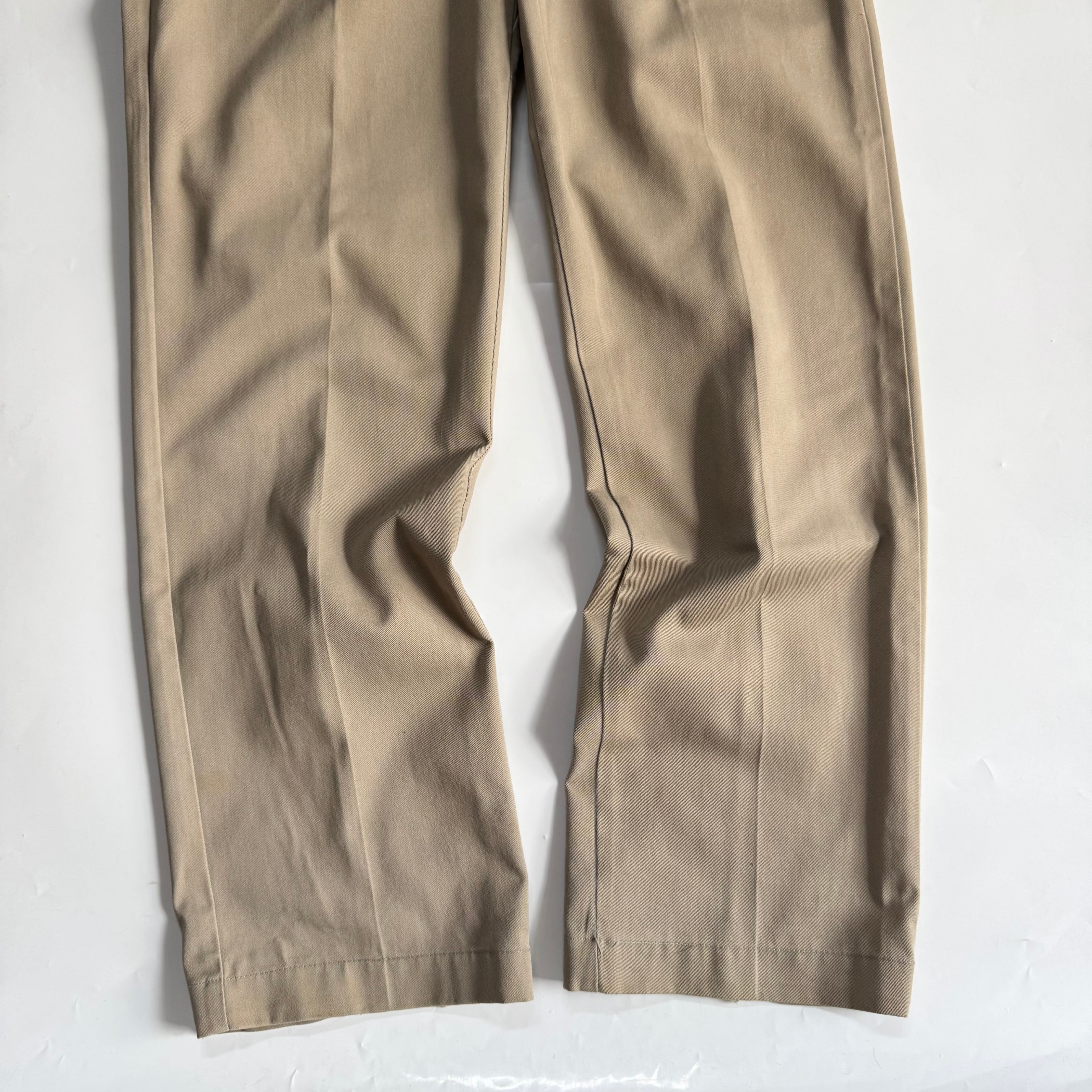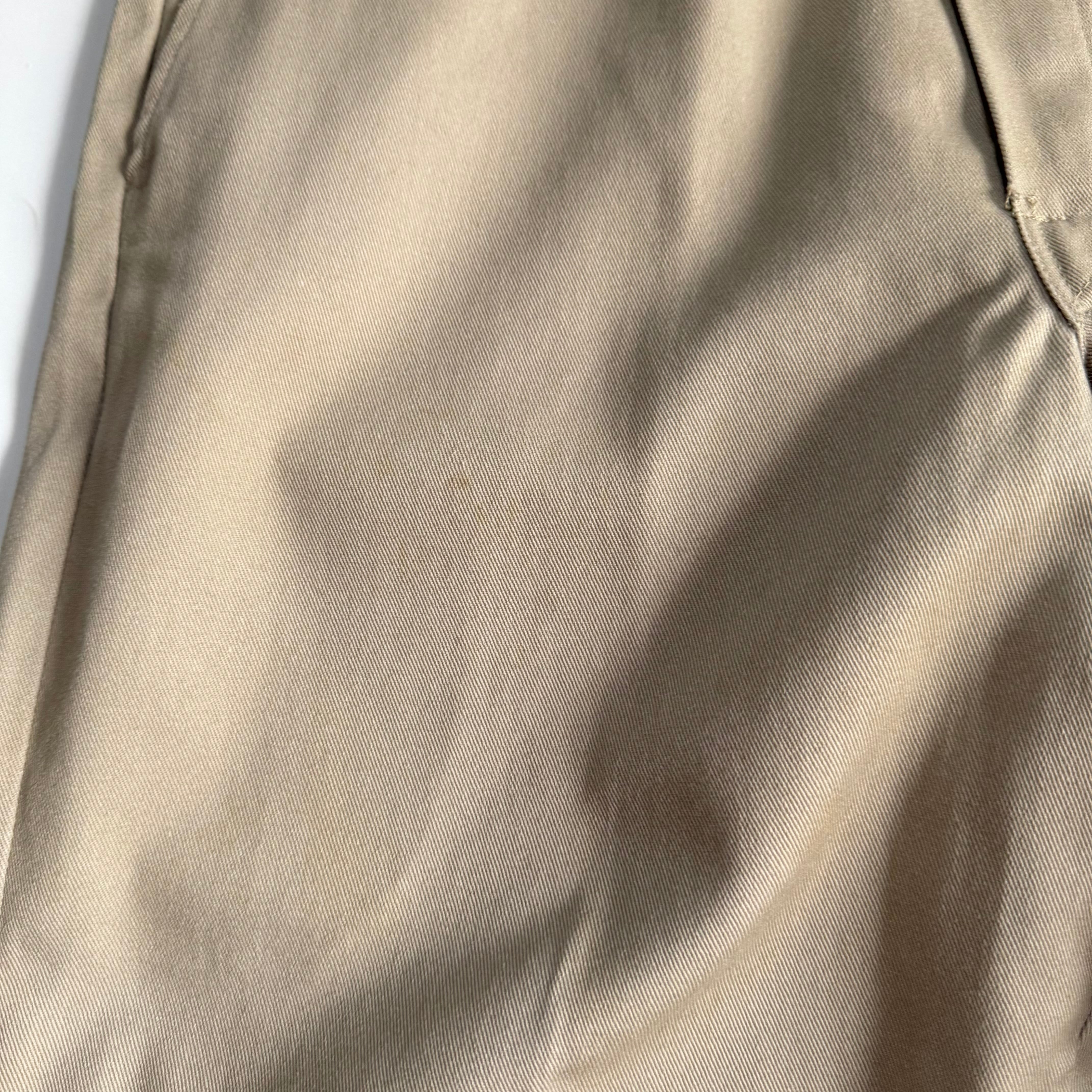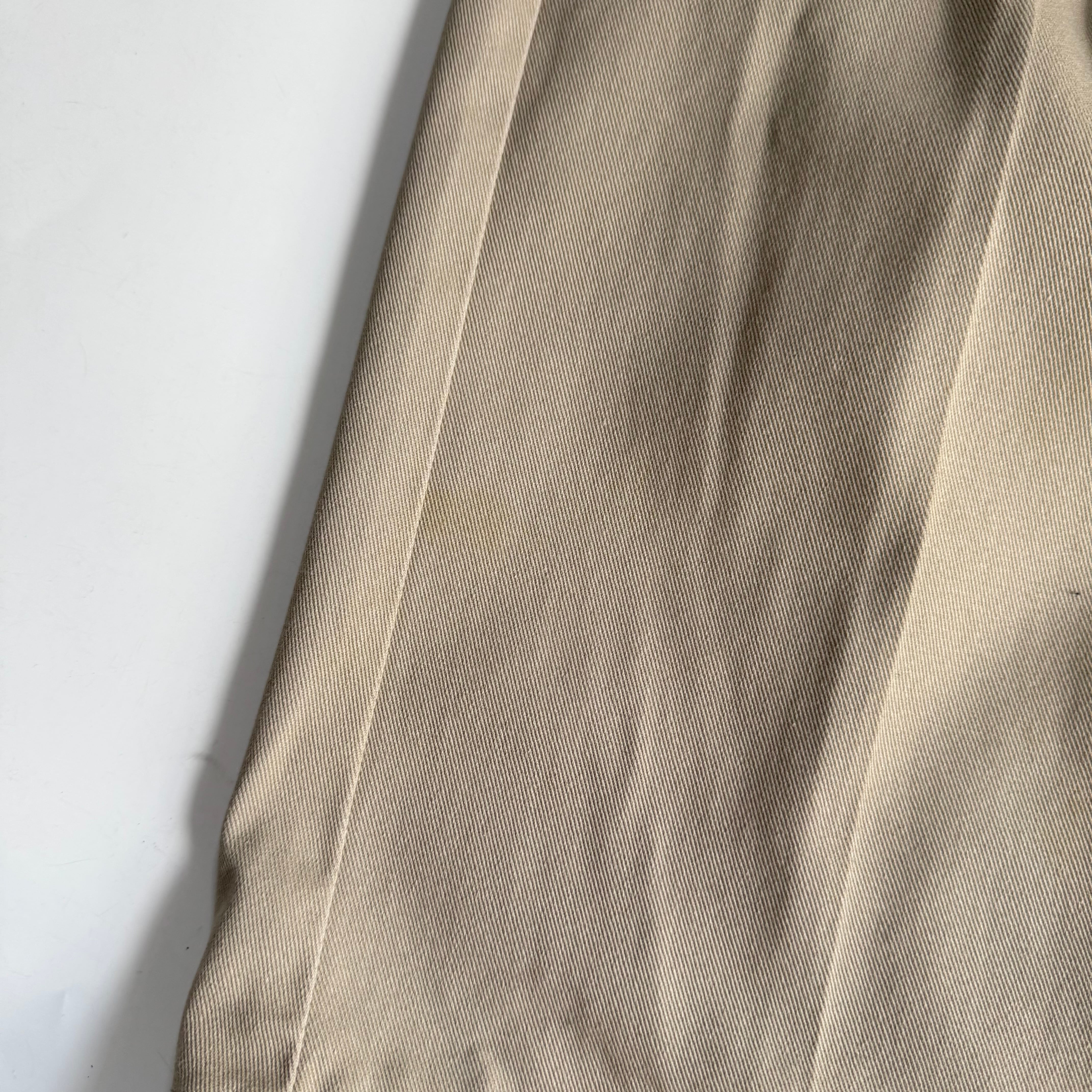 •SIZE 32×34 ウエスト 82cm 股上 33cm 股下 81.5cm わたり 31cm 裾幅 24cm 180cm着用 •MATERIAL POLYESTER 65% COTTON 35% •COLOR ベージュ •CONDITION 使用感、裾にダメージ、薄い汚れ。 写真にてご確認下さい。 gar2136