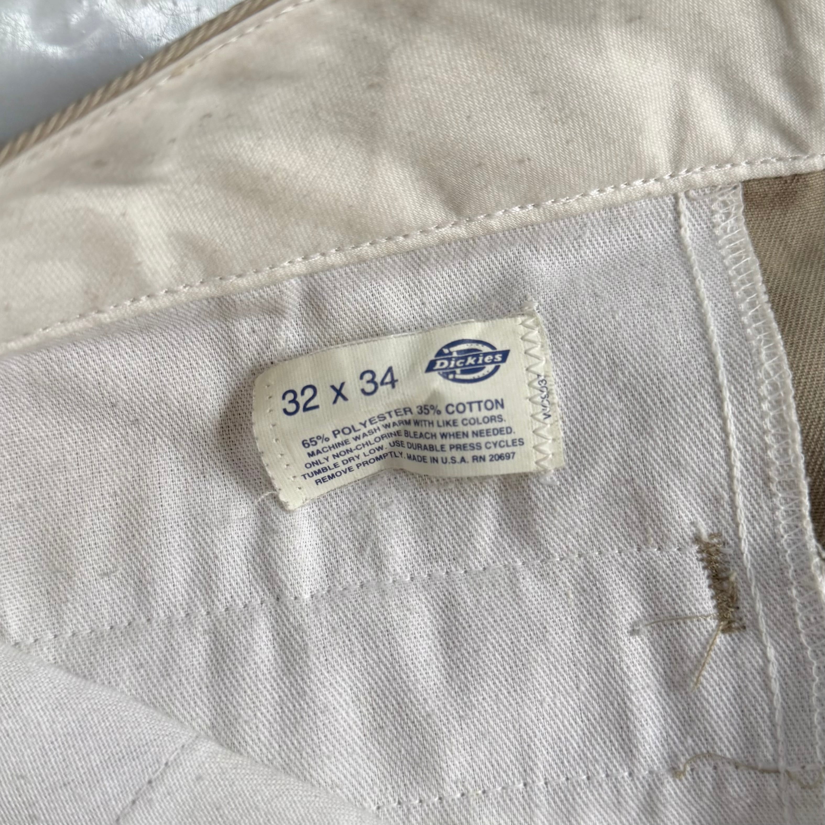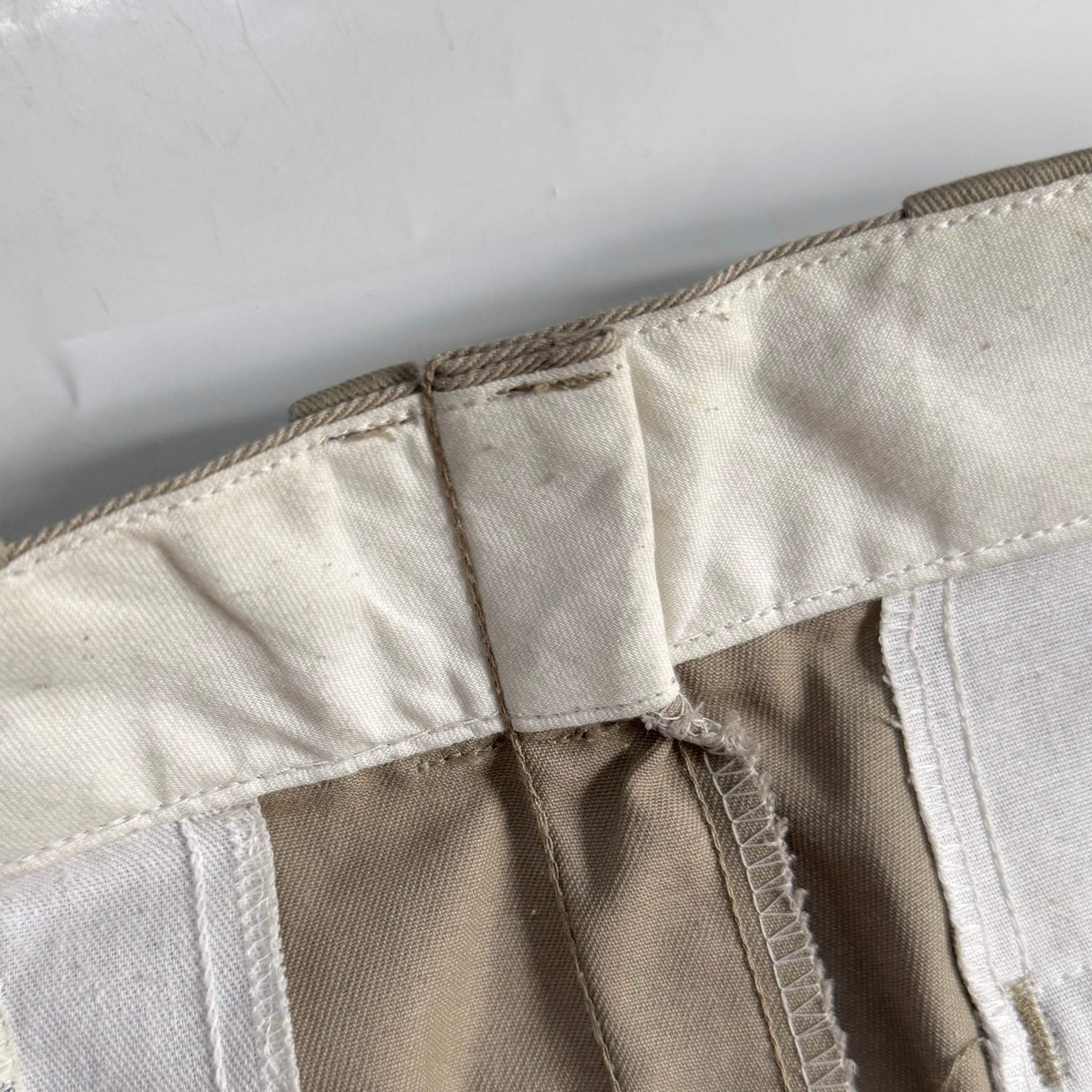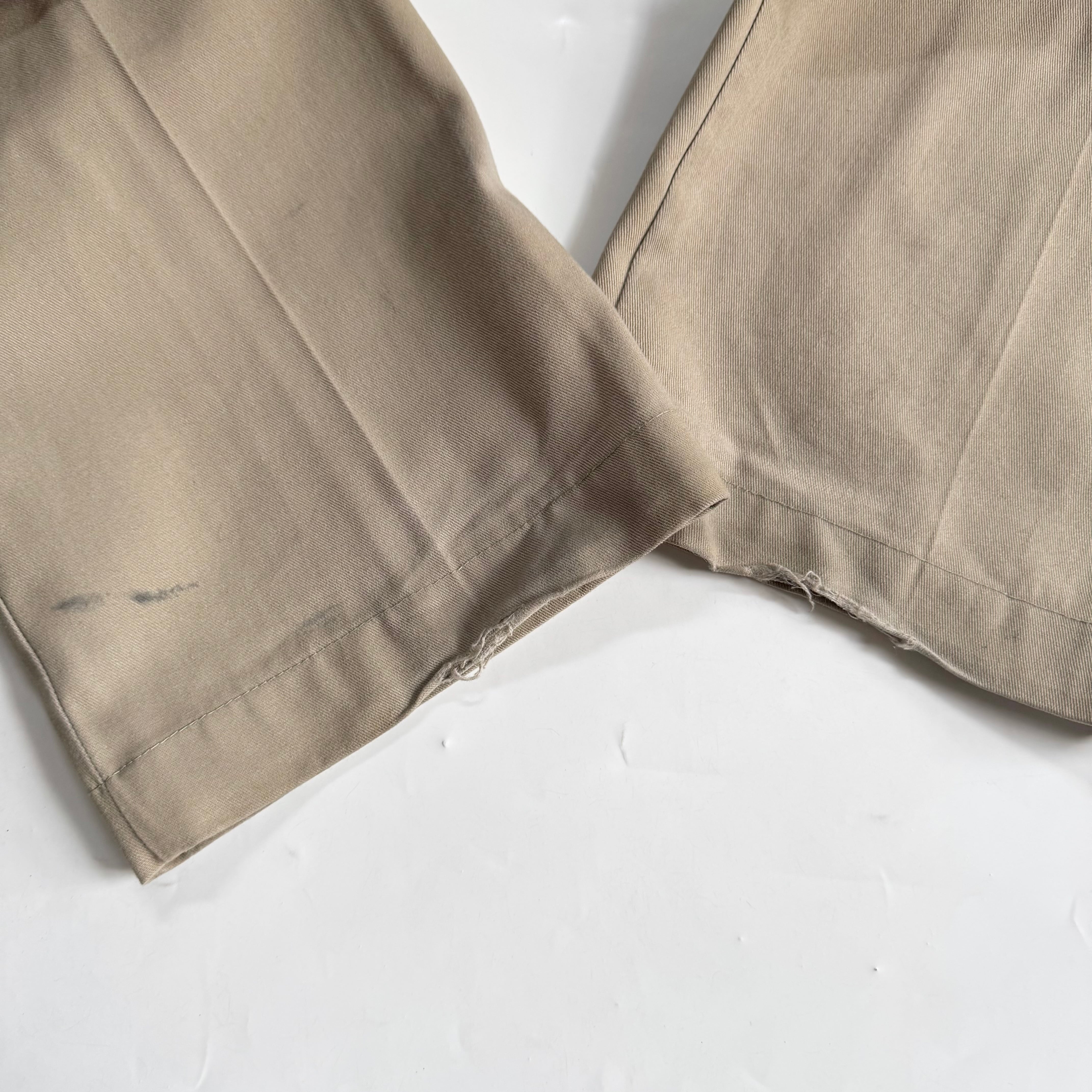 •SIZE 32×34 ウエスト 82cm 股上 33cm 股下 81.5cm わたり 31cm 裾幅 24cm 180cm着用 •MATERIAL POLYESTER 65% COTTON 35% •COLOR ベージュ •CONDITION 使用感、裾にダメージ、薄い汚れ。 写真にてご確認下さい。 gar2136