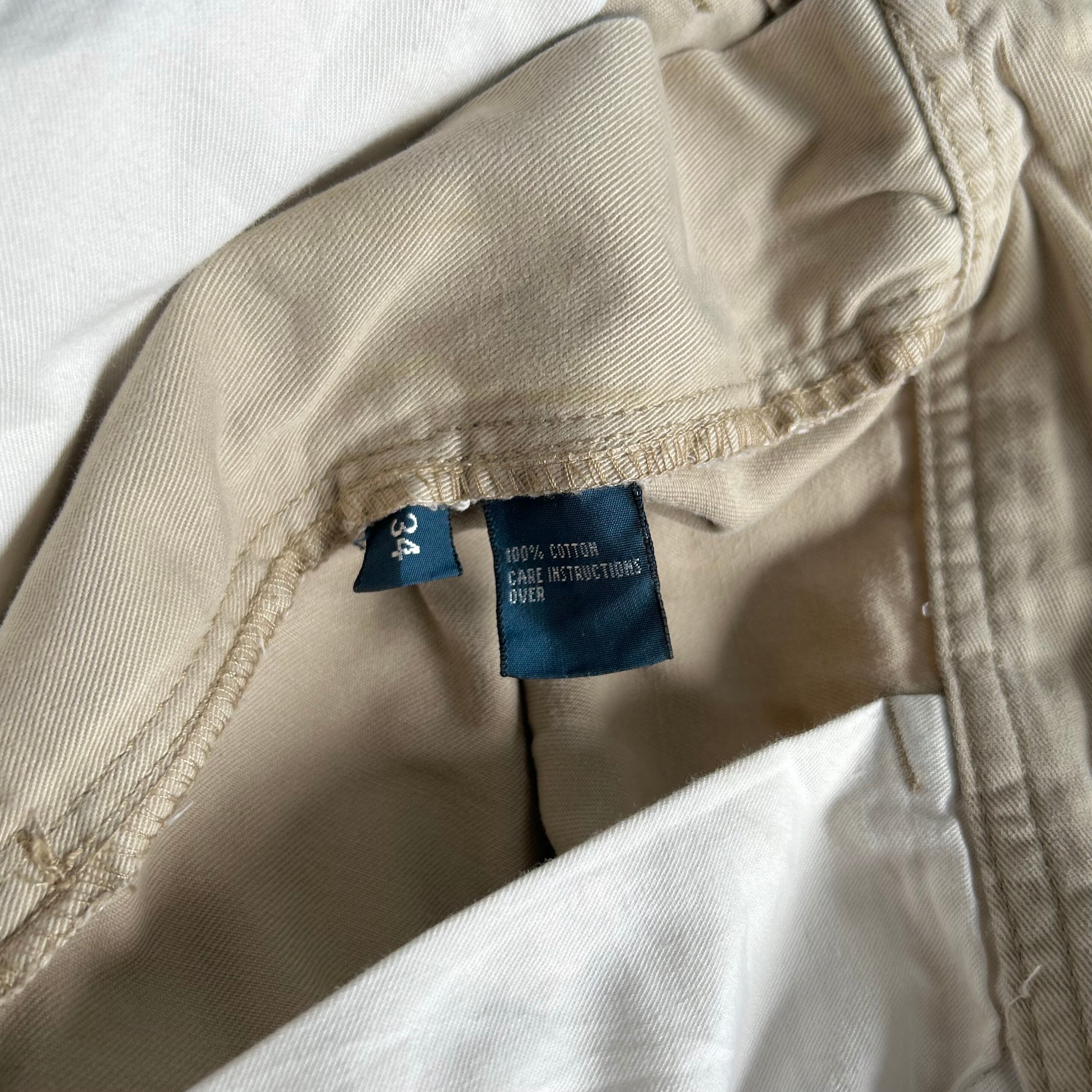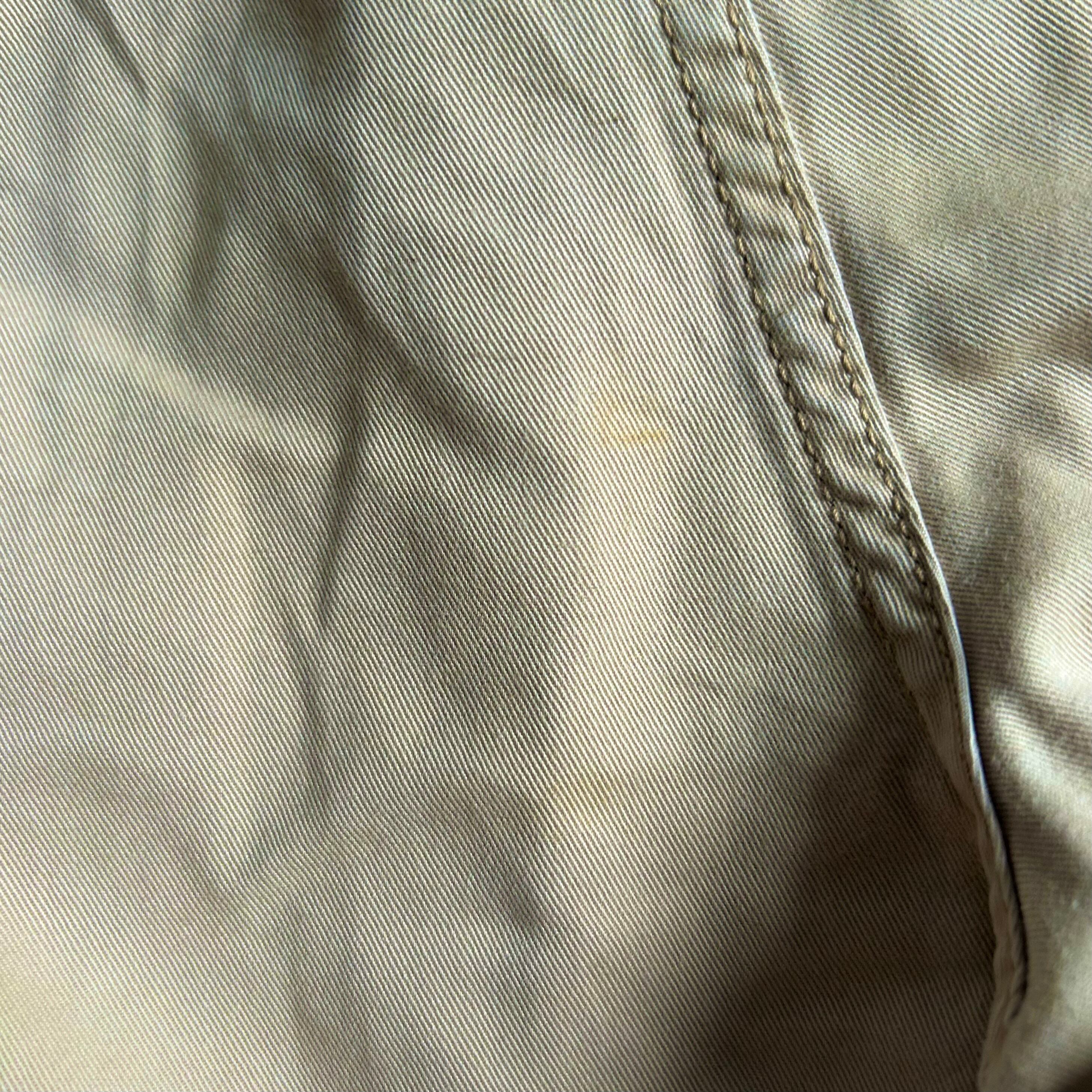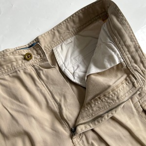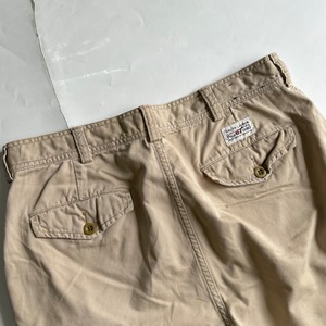 •SIZE 34 ウエスト 90cm 股上 32.5cm 股下 25cm わたり 33cm 裾幅 28.5cm •MATERIAL Cotton100% •COLOR ベージュ •CONDITION フロントバック共に汚れあり 裾に少しダメージあり 写真参照 kt419