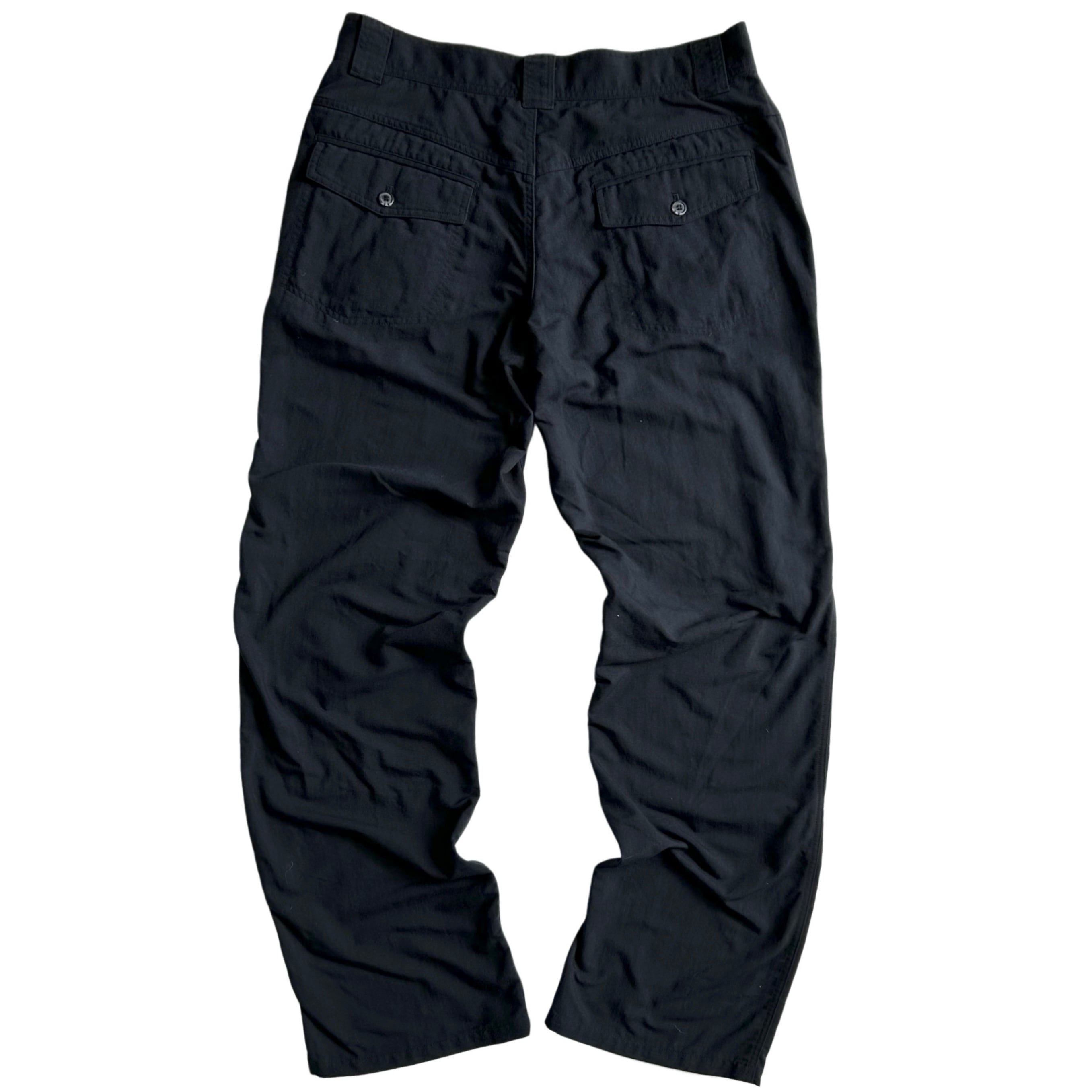 •SIZE 34 ウエスト 87cm 股上 27.5cm 股下 84cm わたり 29.5cm 裾幅 21.5cm •MATERIAL Nylon100% •COLOR ブラック •CONDITION 所々毛玉あり 写真参照 kt435