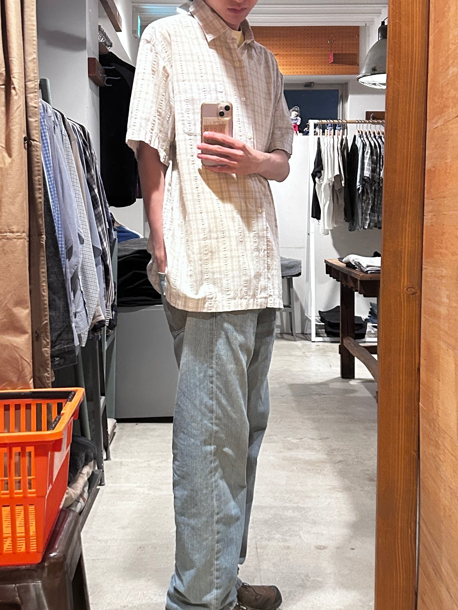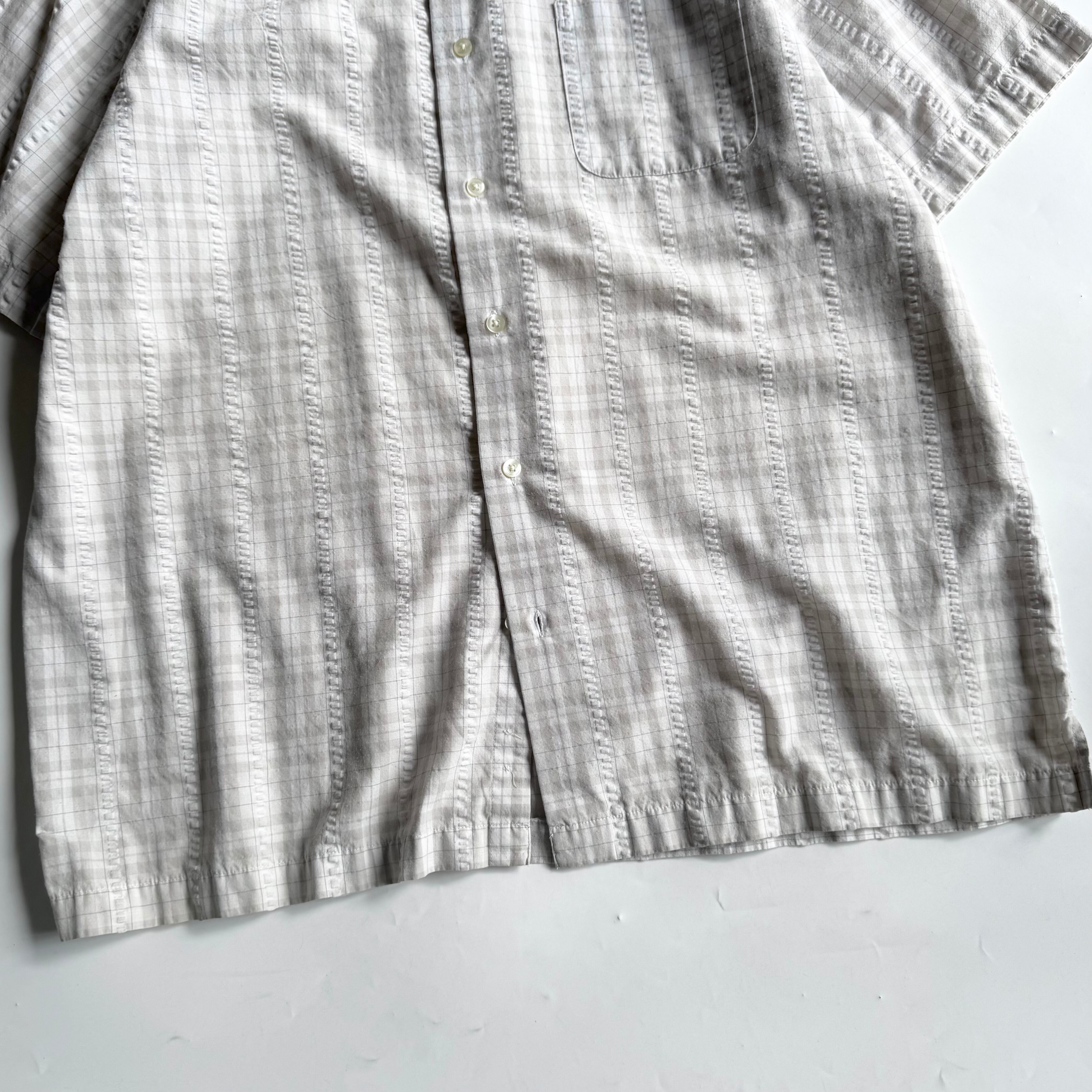 •SIZE L 肩幅 51cm 袖丈 25cm 身幅 64cm 着丈 77.5cm •MATERIAL COTTON 55% POLYESTER 45% •COLOR オフホワイト系 •CONDITION 使用感はございますが、目立った傷や汚れ等はございません。 f750