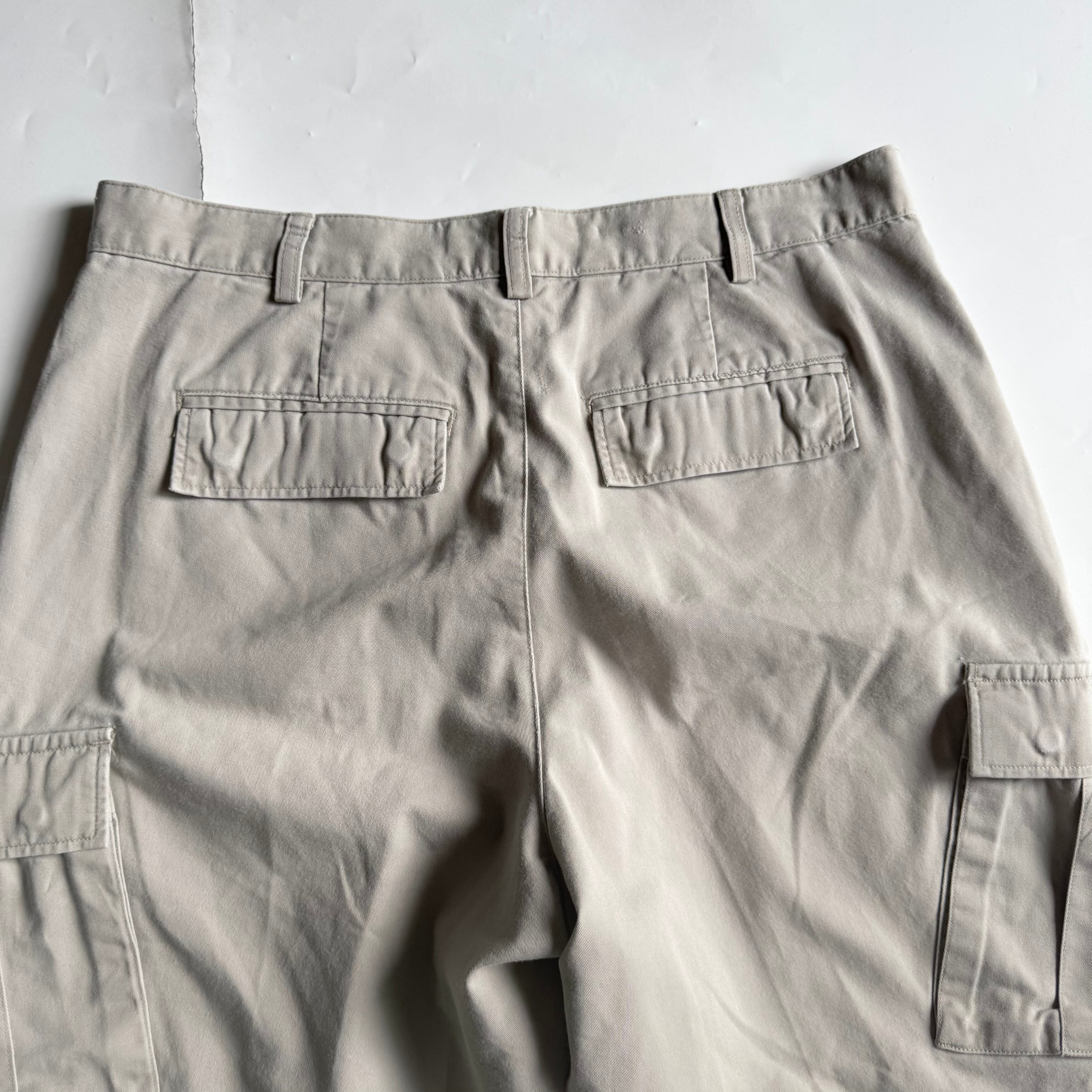 •SIZE 34 ウエスト 87cm 股上 31.5cm 股下 22.5cm わたり 34.5cm 裾幅 33cm 175cm着用 •MATERIAL COTTON 100% •COLOR ベージュ •CONDITION 使用感はございますが、目立った傷や汚れ等はございません。 f738