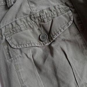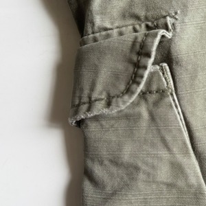 •SIZE 34/32 ウエスト 89cm 股上 31.5cm 股下 80cm わたり 32cm 裾幅 25.5cm 175cm着用 •MATERIAL COTTON 100% •COLOR カーキグリーン •CONDITION 使用感、あたり、裾にダメージ。 写真にてご確認ください。