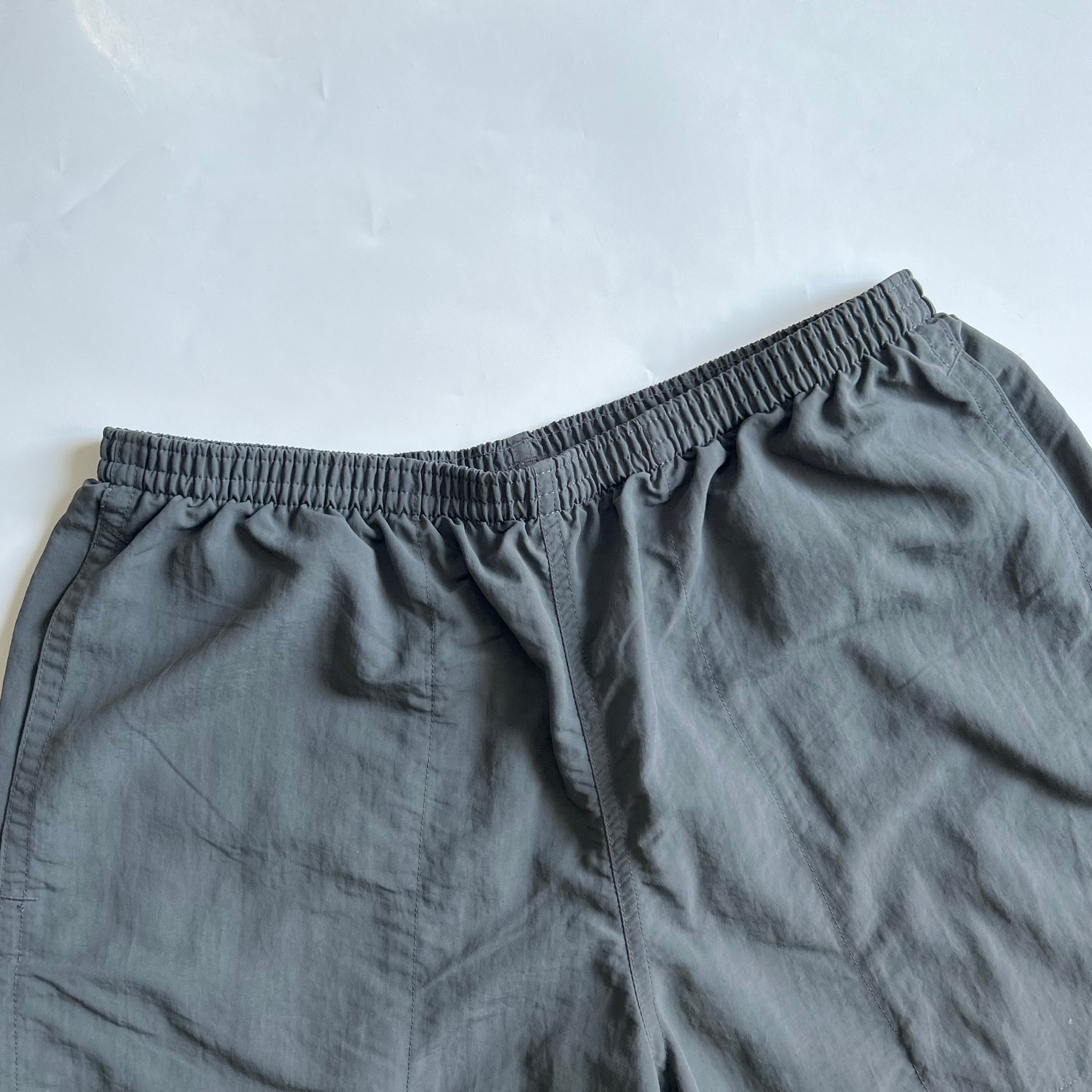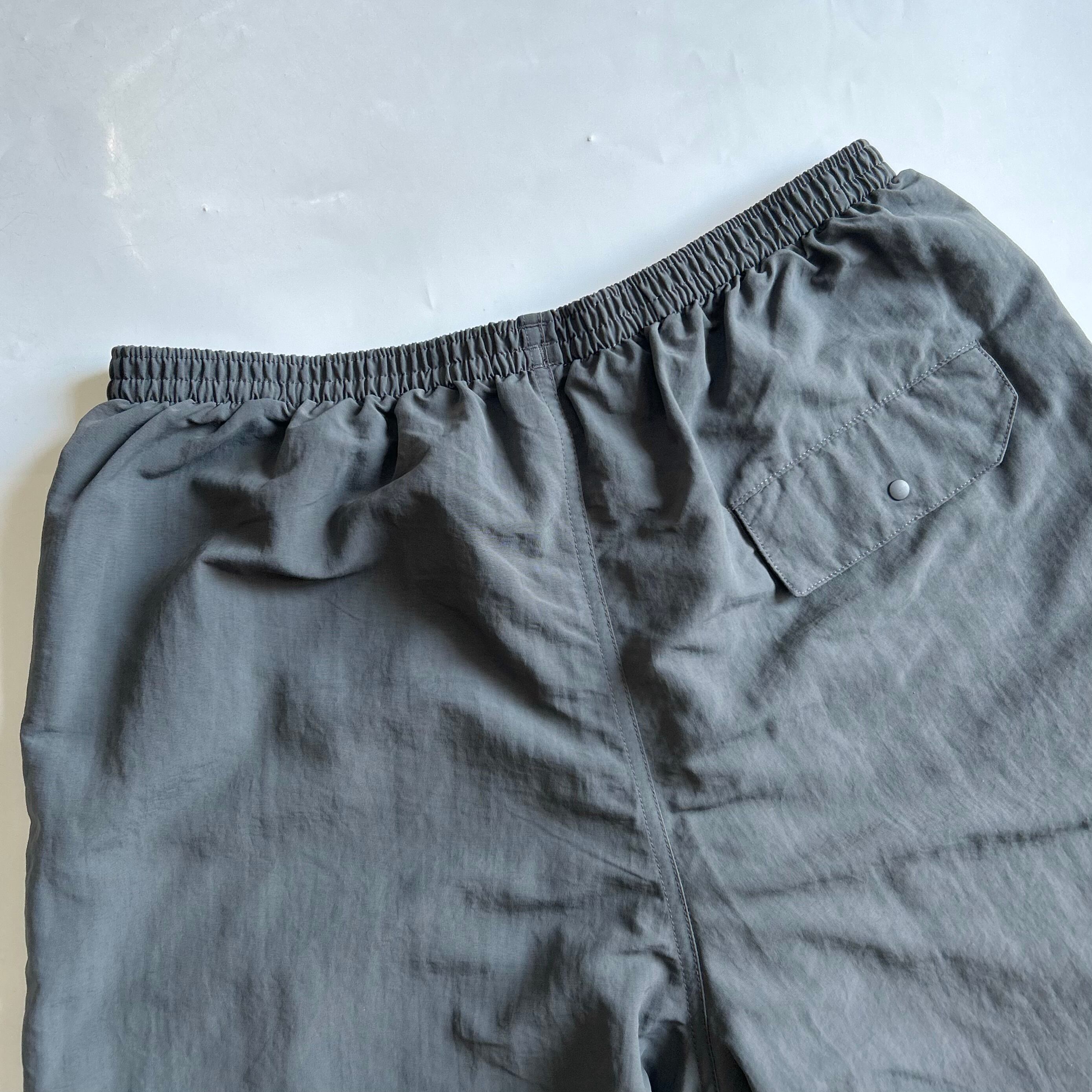 イージータイプで深めなポケット シティなカラーです◎ •SIZE M ウエスト 74cm 股上 29cm 股下 16.5cm わたり 31.5cm 裾幅 30cm 175cm着用 •MATERIAL Polyester100% •COLOR グレー •CONDITION フロントロゴ付近に小さな汚れあり 写真参照 ya6055