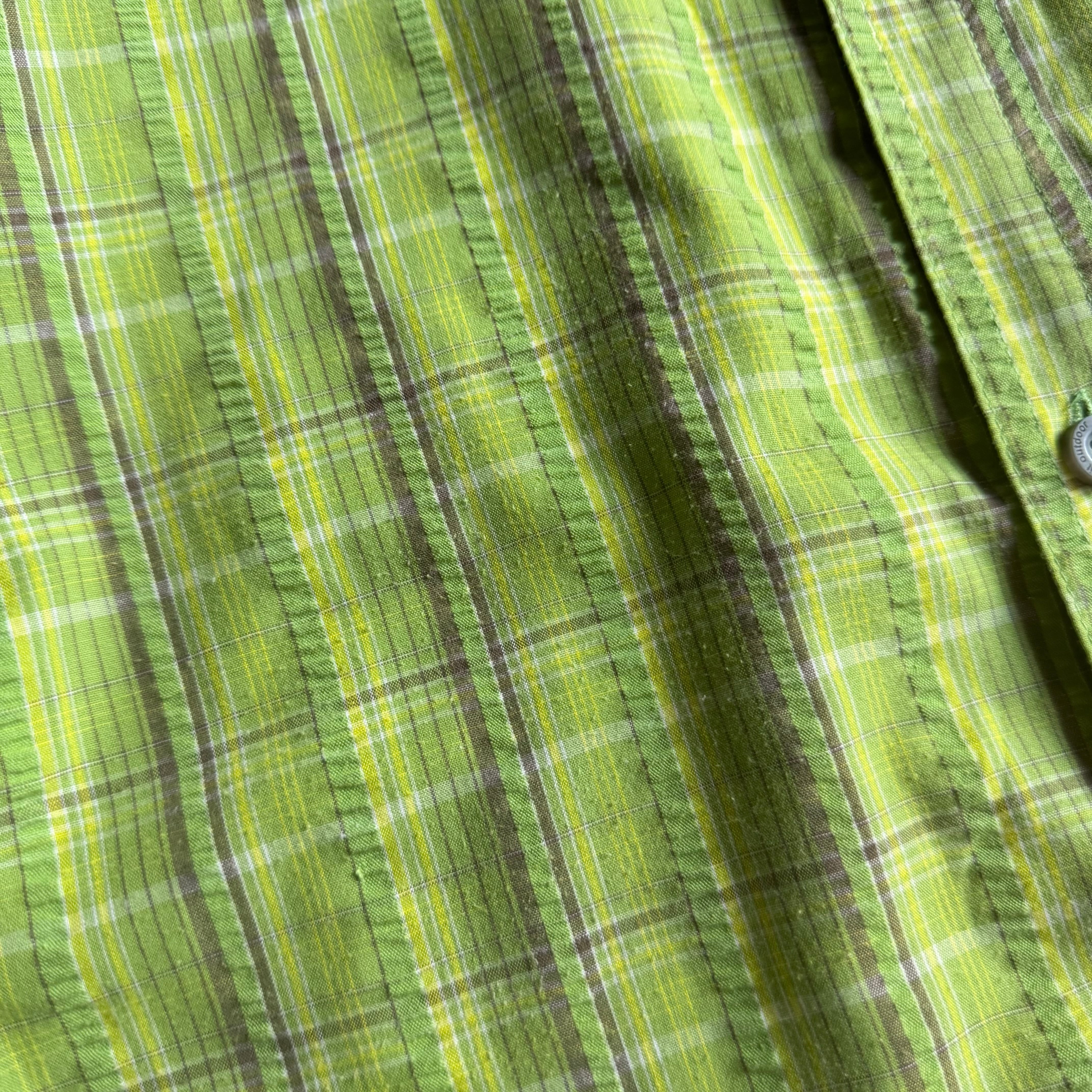 •SIZE XL 肩幅 51cm 袖丈 27.5cm 身幅 66cm 着丈 77cm 175cm着用 •MATERIAL POLYESTER 70% COTTON 30% •COLOR グリーン系 •CONDITION 使用感あり。写真にてご確認ください。 ya5991