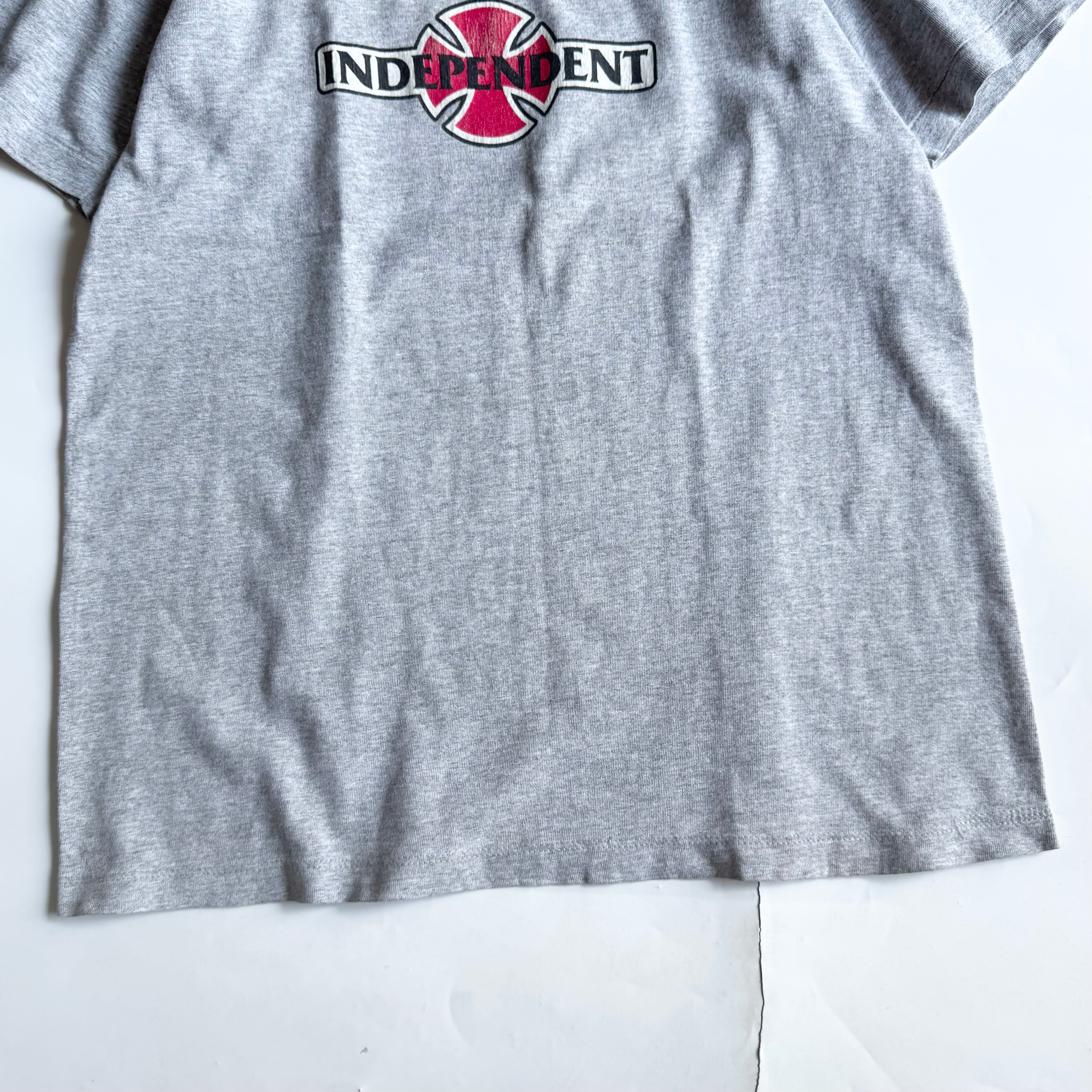 •SIZE M 肩幅 50.5cm 袖丈 18.5cm 身幅 51cm 着丈 68.5cm 175cm着用 •MATERIAL COTTON 100% •COLOR グレー •CONDITION フロントに薄い汚れ、使用感、プリントのひび割れ。 ya6075