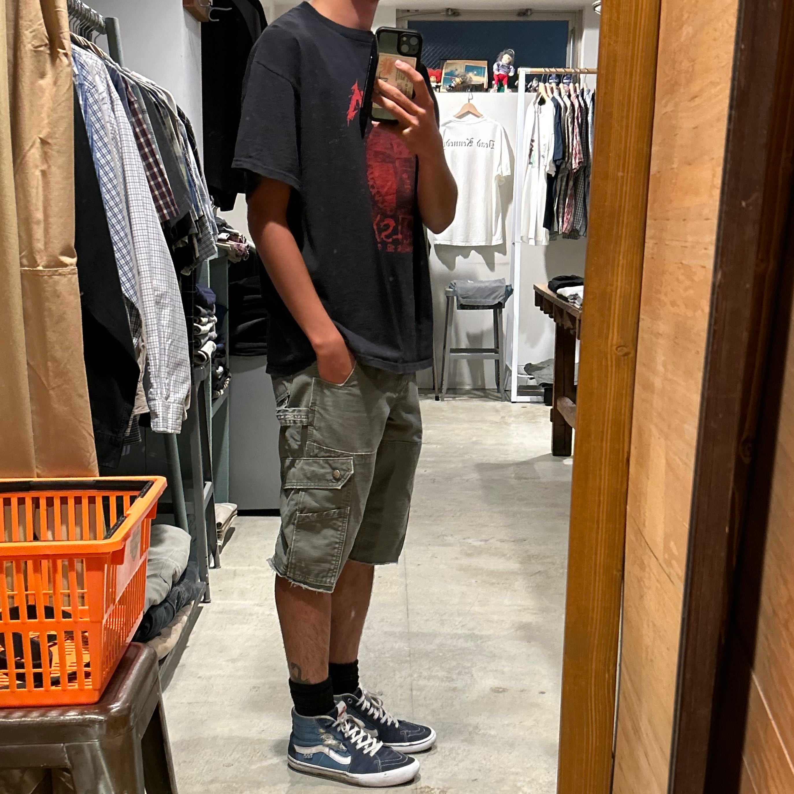 •SIZE L 肩幅 54cm 袖丈 19cm 身幅 54.5cm 着丈 64.5cm •MATERIAL Cotton100% •COLOR ブラック •CONDITION シワ跡あり写真参照 168cm着用 ya6065