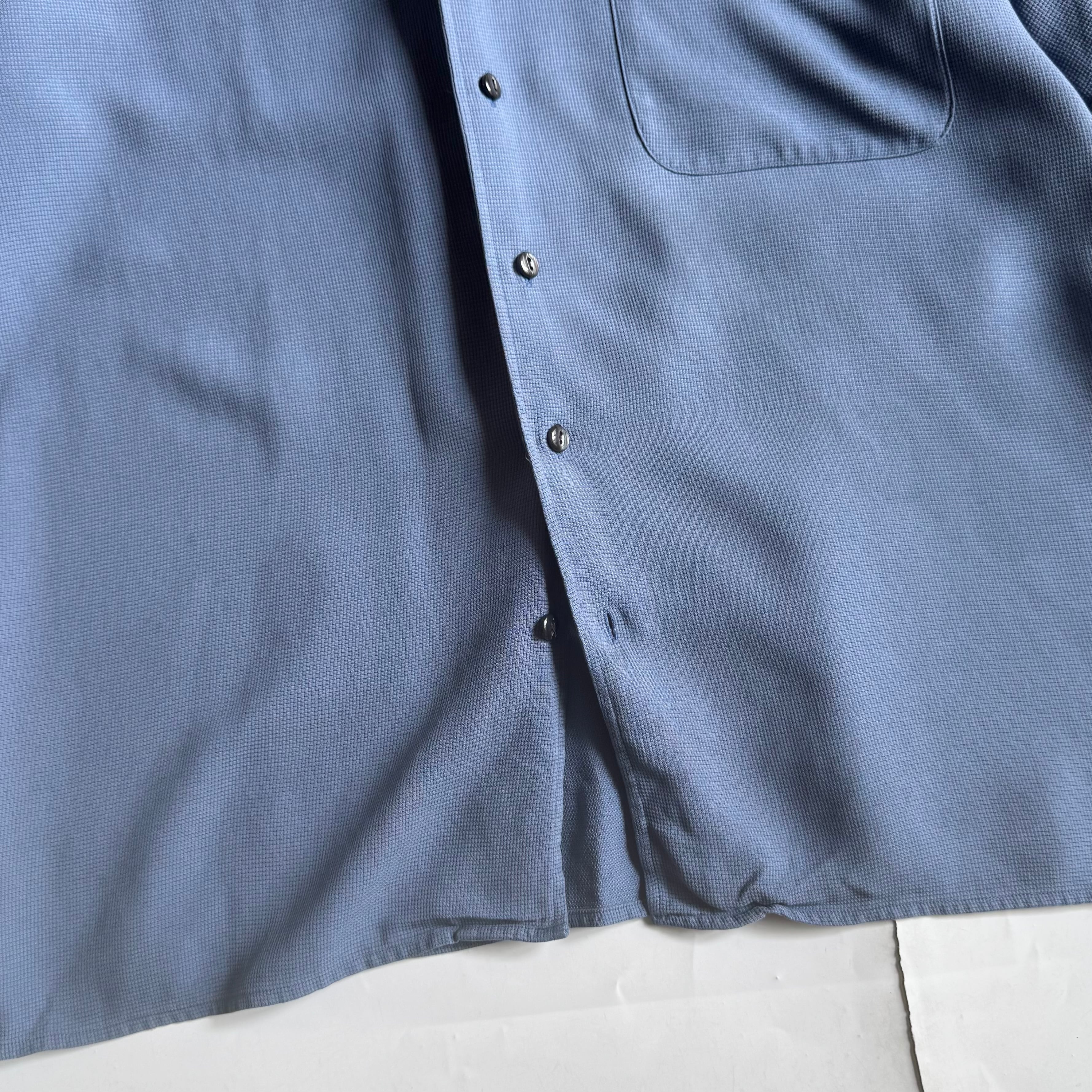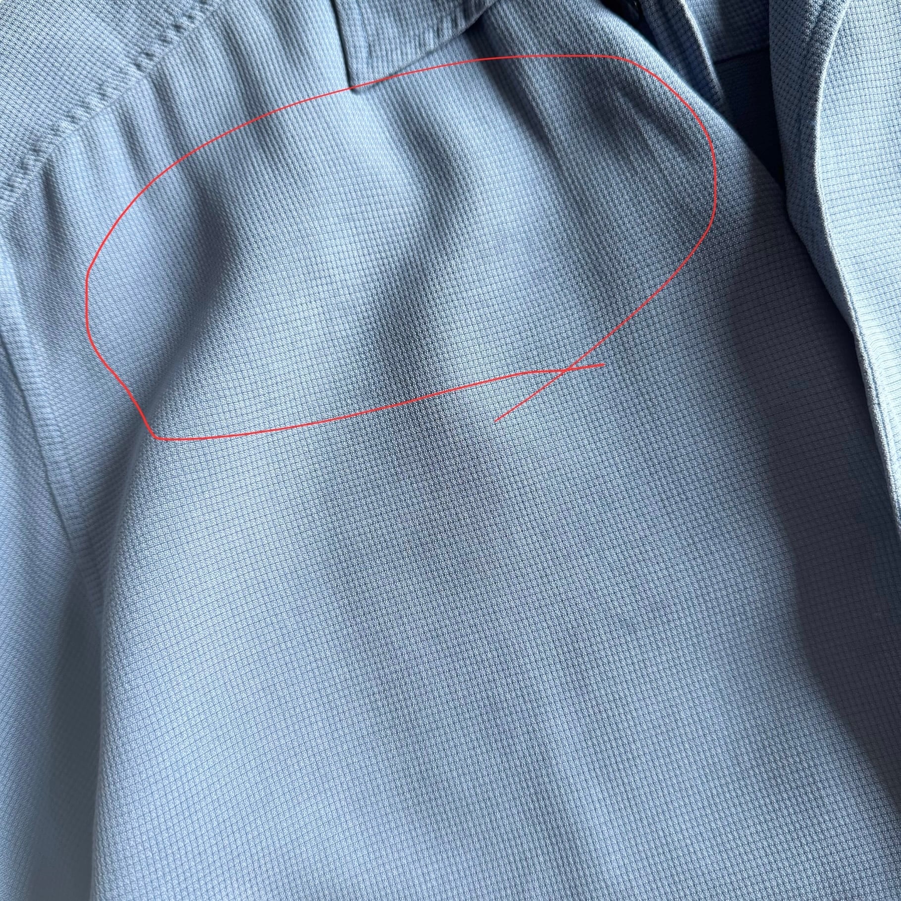 •SIZE S 肩幅 48cm 袖丈 24cm 身幅 57cm 着丈 69cm 175cm着用 •MATERIAL SILK 100% •COLOR ブルー系 •CONDITION フロントや背面、袖あたりに薄いシミ。 写真にてご確認ください。 ya6072