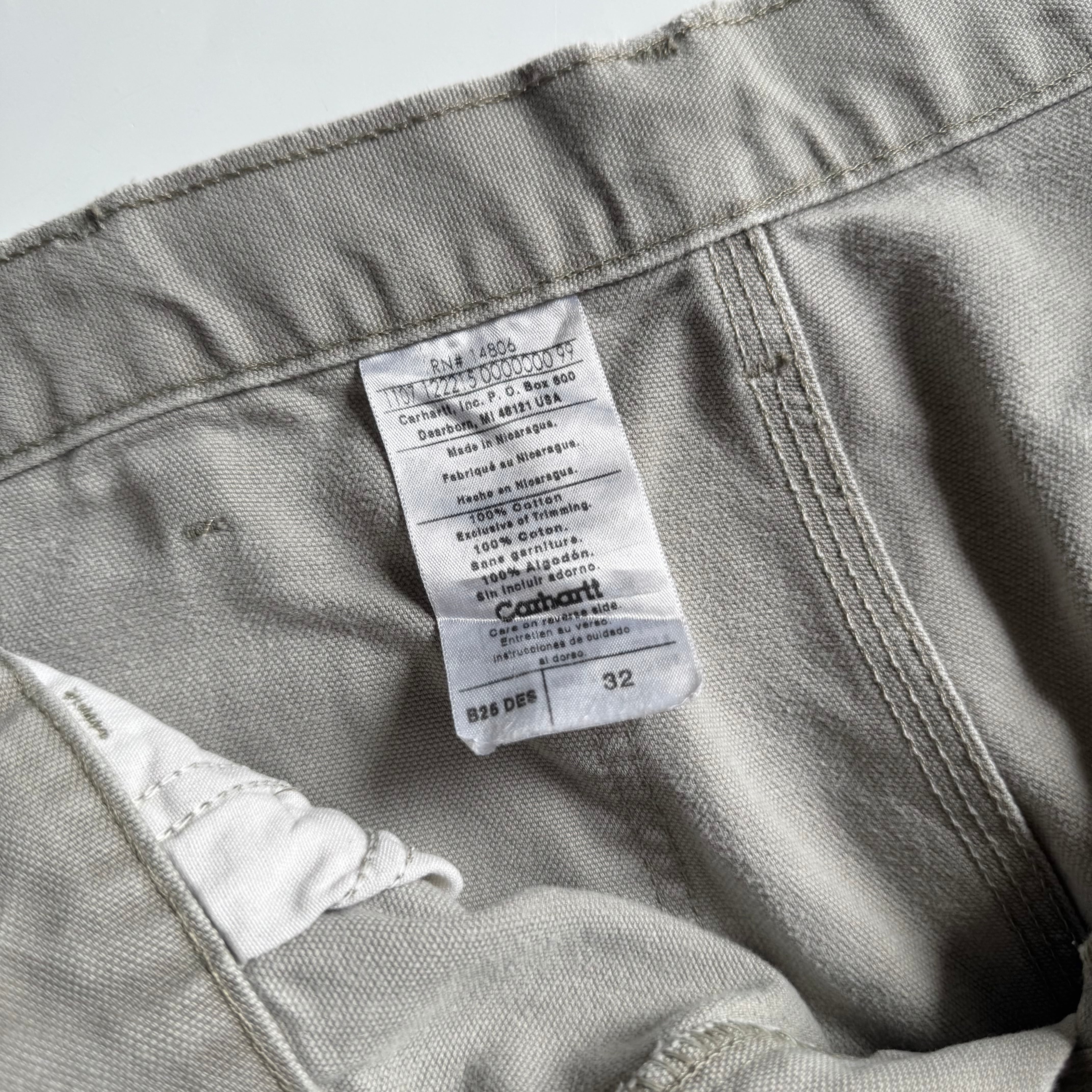 いい感じのボロ具合◎ •SIZE 32 ウエスト 82cm 股上 31cm 股下 21.5cm わたり 34cm 裾幅 30cm •MATERIAL COTTON 100% •COLOR ホワイトベージュ系 •CONDITION 全体的に使用感、ダメージ、汚れ。 いい雰囲気です。 写真にてご確認ください。 ya6083