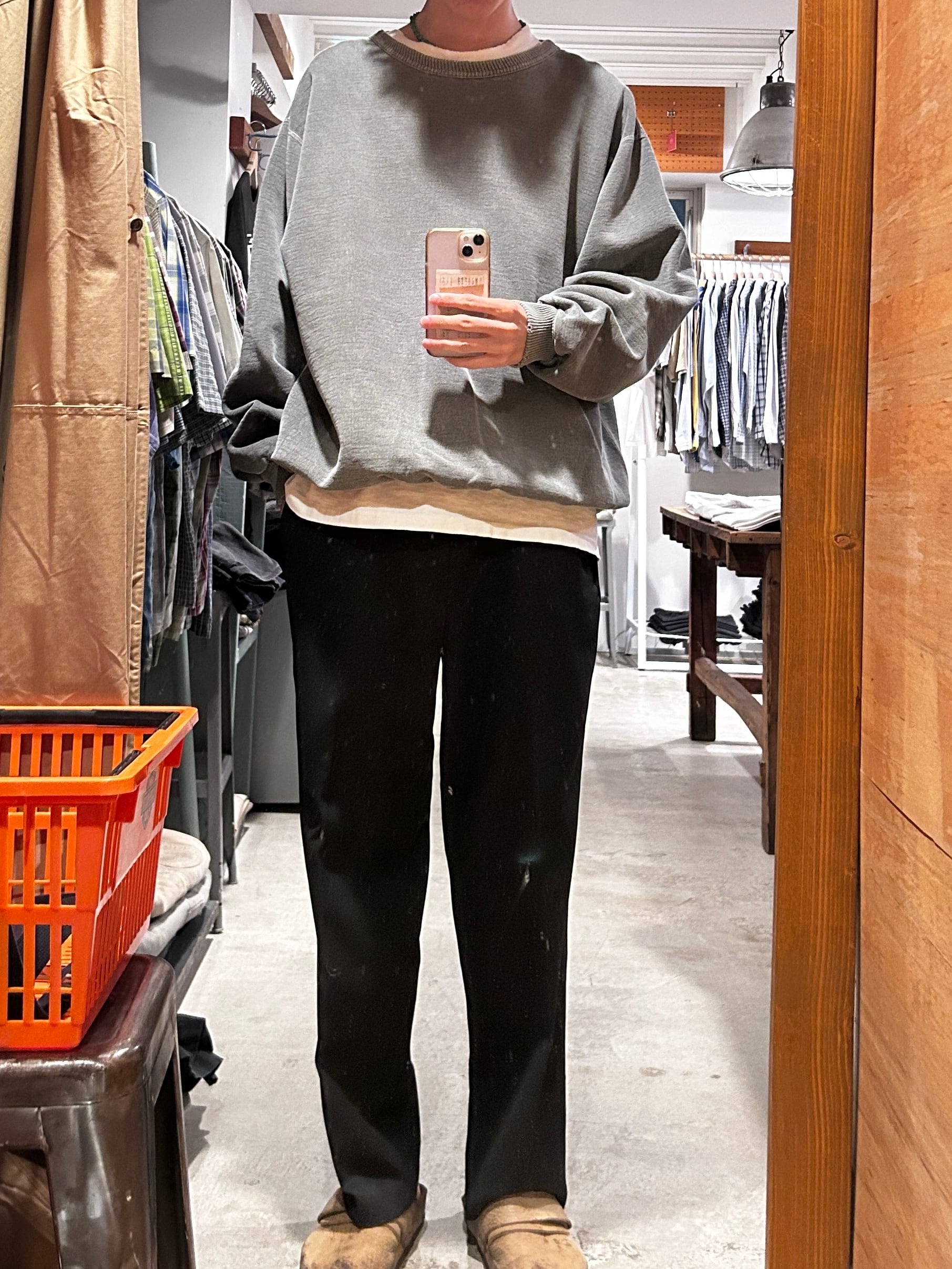 ストーングレー系で現行のよくみるスウェットとは違い一癖ある雰囲気◎