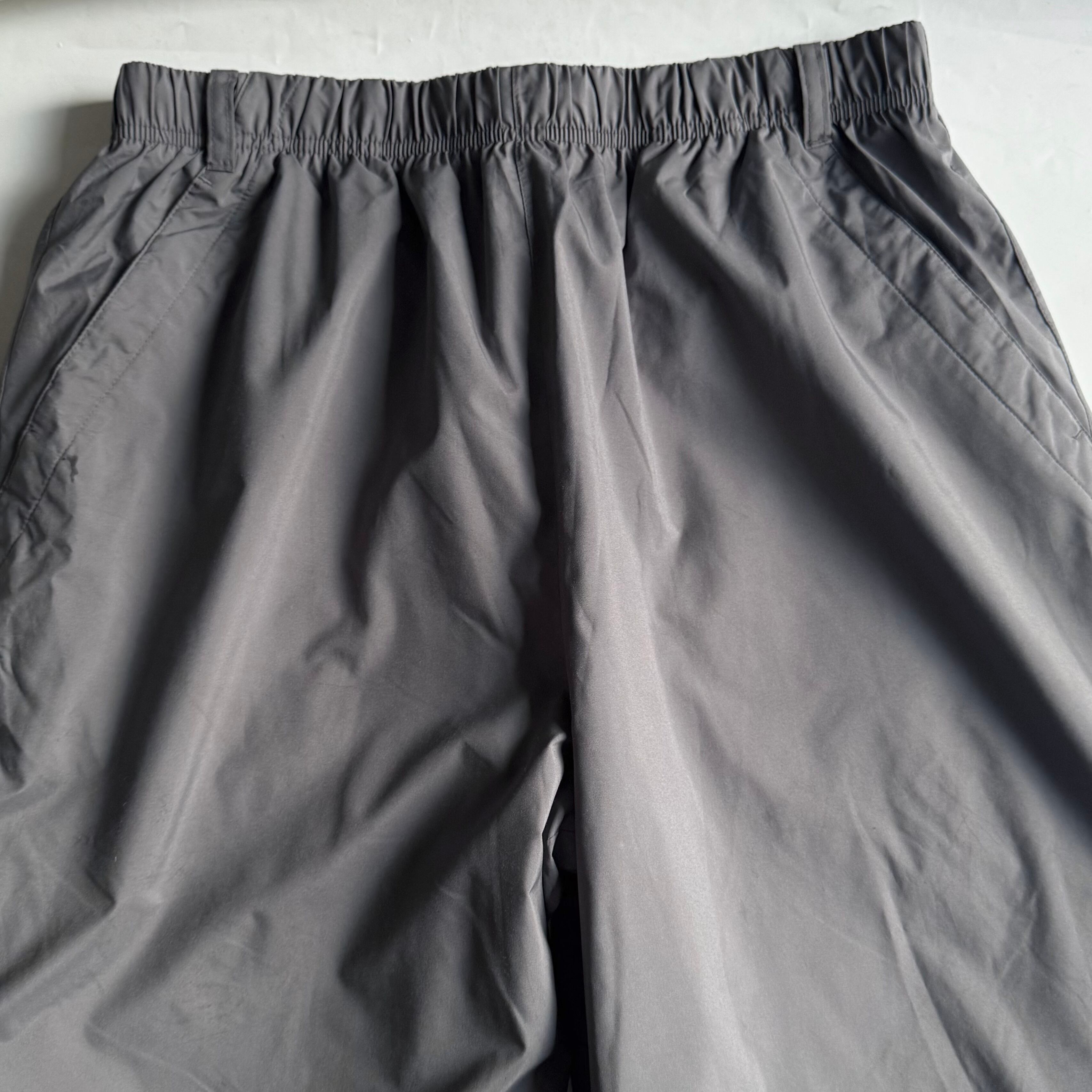 珍しい裾スウッシュ アーバンな色味 着画は裾のベルクロで絞って内側に折ってトラックパンツみたいに穿いてます。 •SIZE L ウエスト 41cm 股上 36cm 股下 78.5cm わたり 36cm 裾幅 23cm •MATERIAL Polyester100% •COLOR グレー •CONDITION フロントバック共に汚れあり 写真参照 ya6138