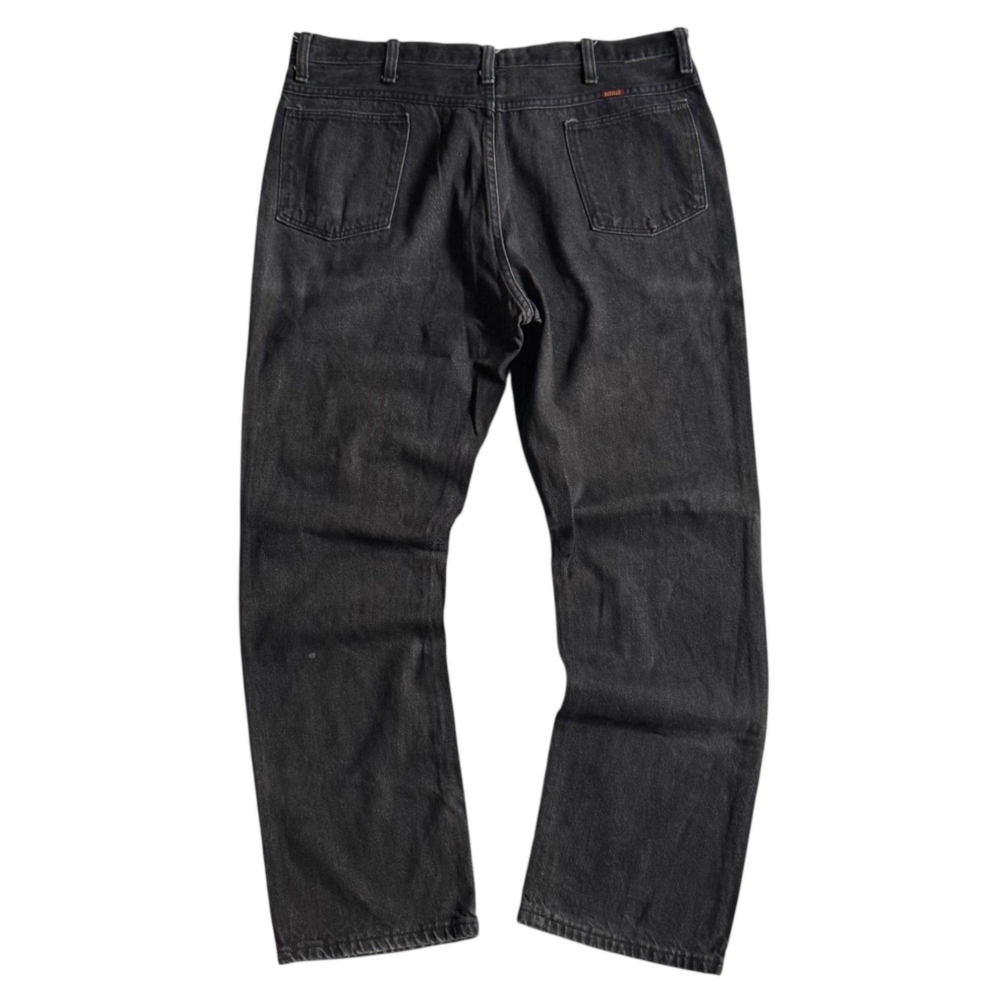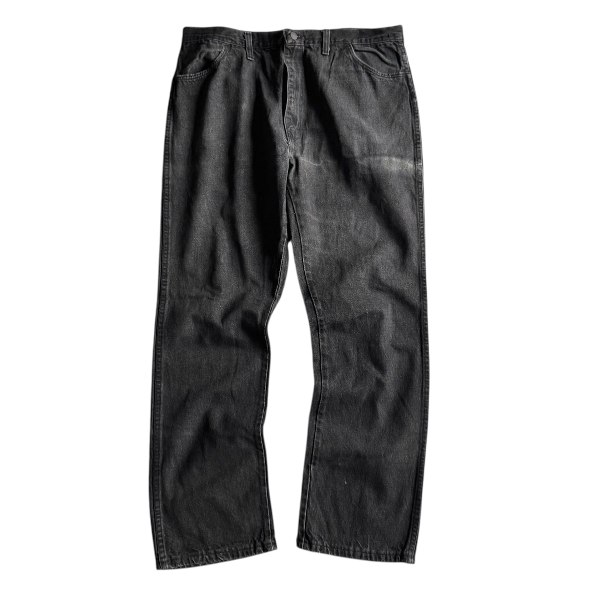 アメリカ製古めのラスラー 先染めブラックでいい雰囲気でてます •SIZE W40 L32 ウエスト 47cm 股上 34cm 股下 75cm わたり28 cm 裾幅22 cm •MATERIAL COTTON 100% •COLOR ブラック •CONDITION フロントやバックに汚れあり。 写真にてご確認ください。 ya6097