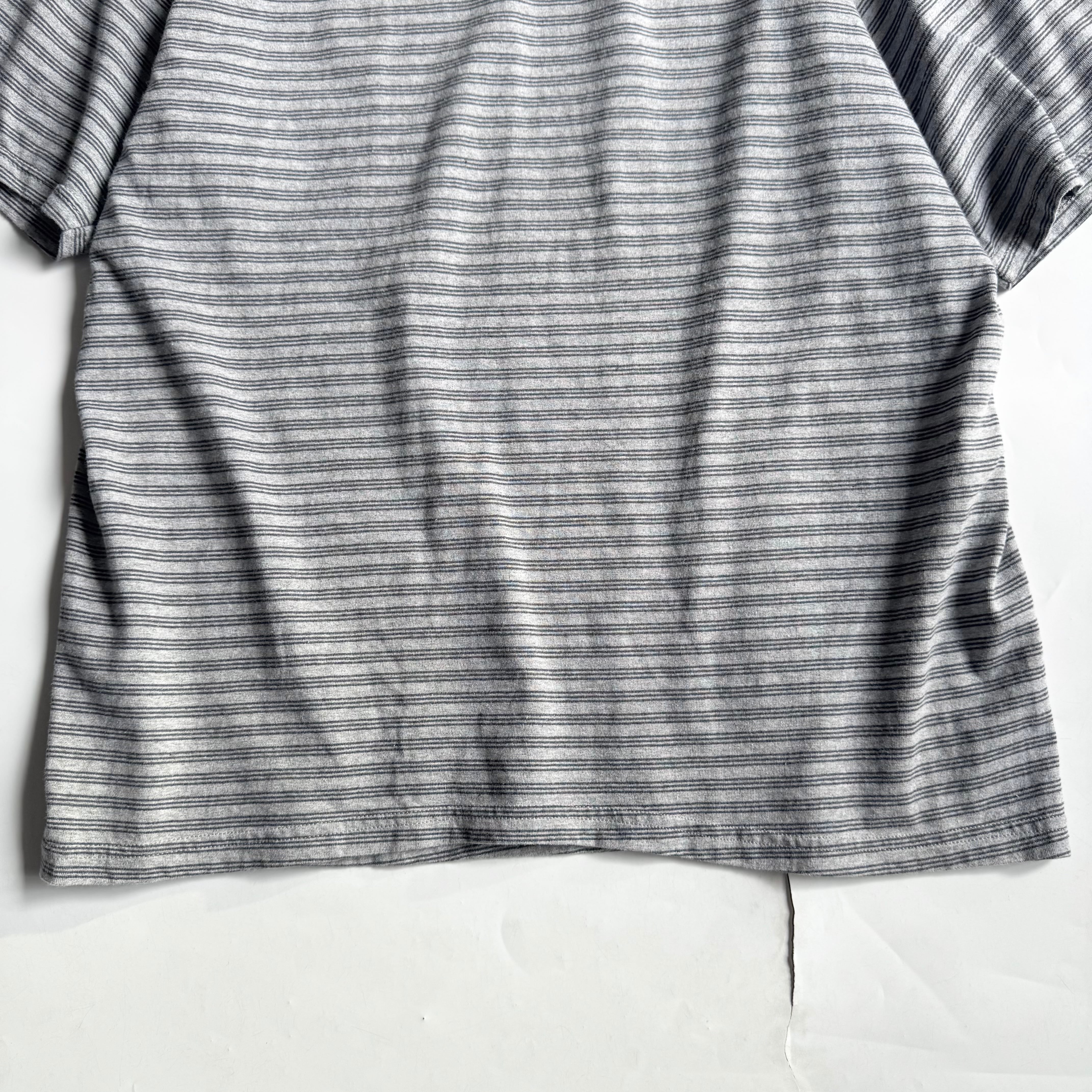 •SIZE L 肩幅 52cm 袖丈 22.5cm 身幅 58cm 着丈 70cm 175cm着用 •MATERIAL COTTON 97% POLYESTER 3% •COLOR グレー •CONDITION 使用感はございますが、目立った傷や汚れ等はございません。 f759