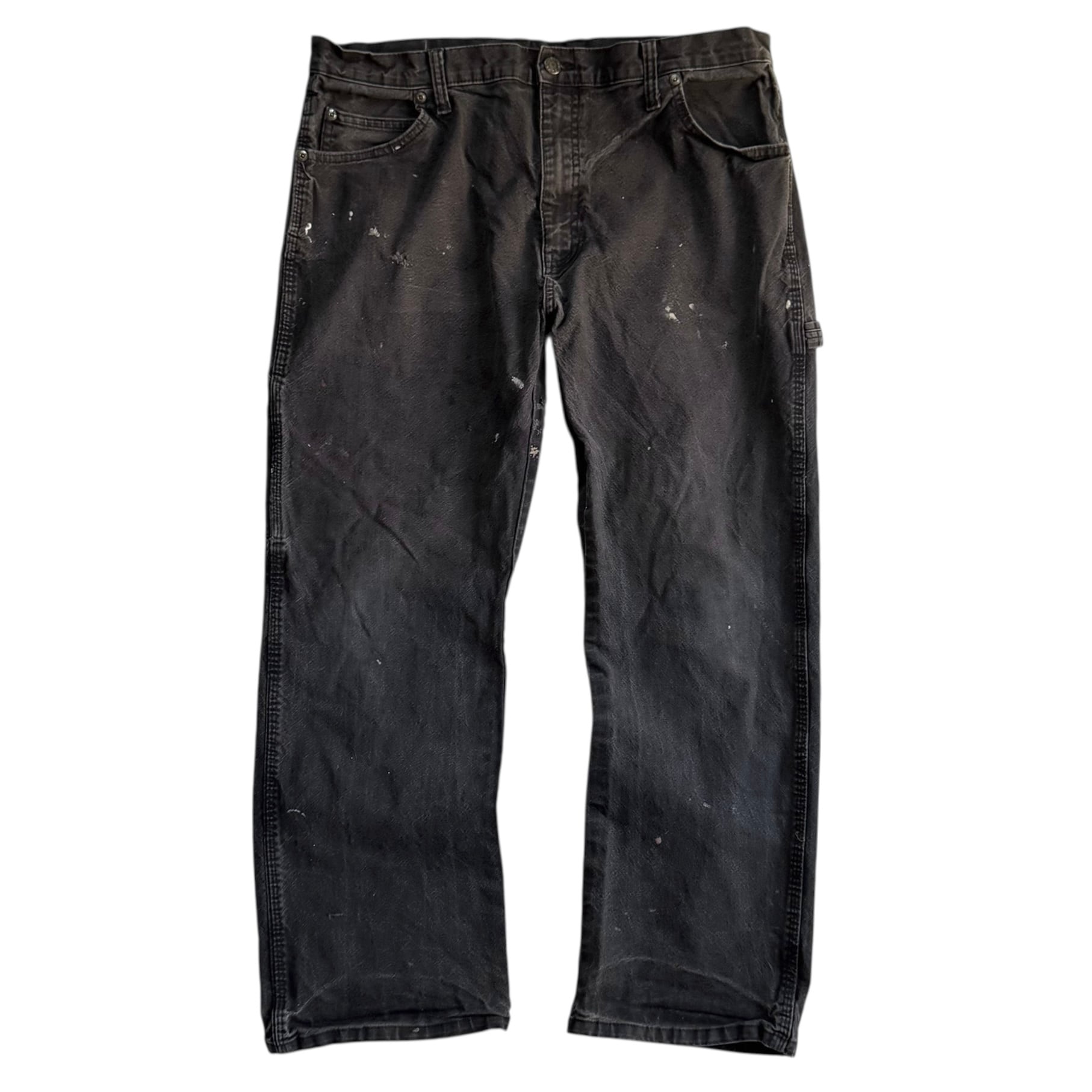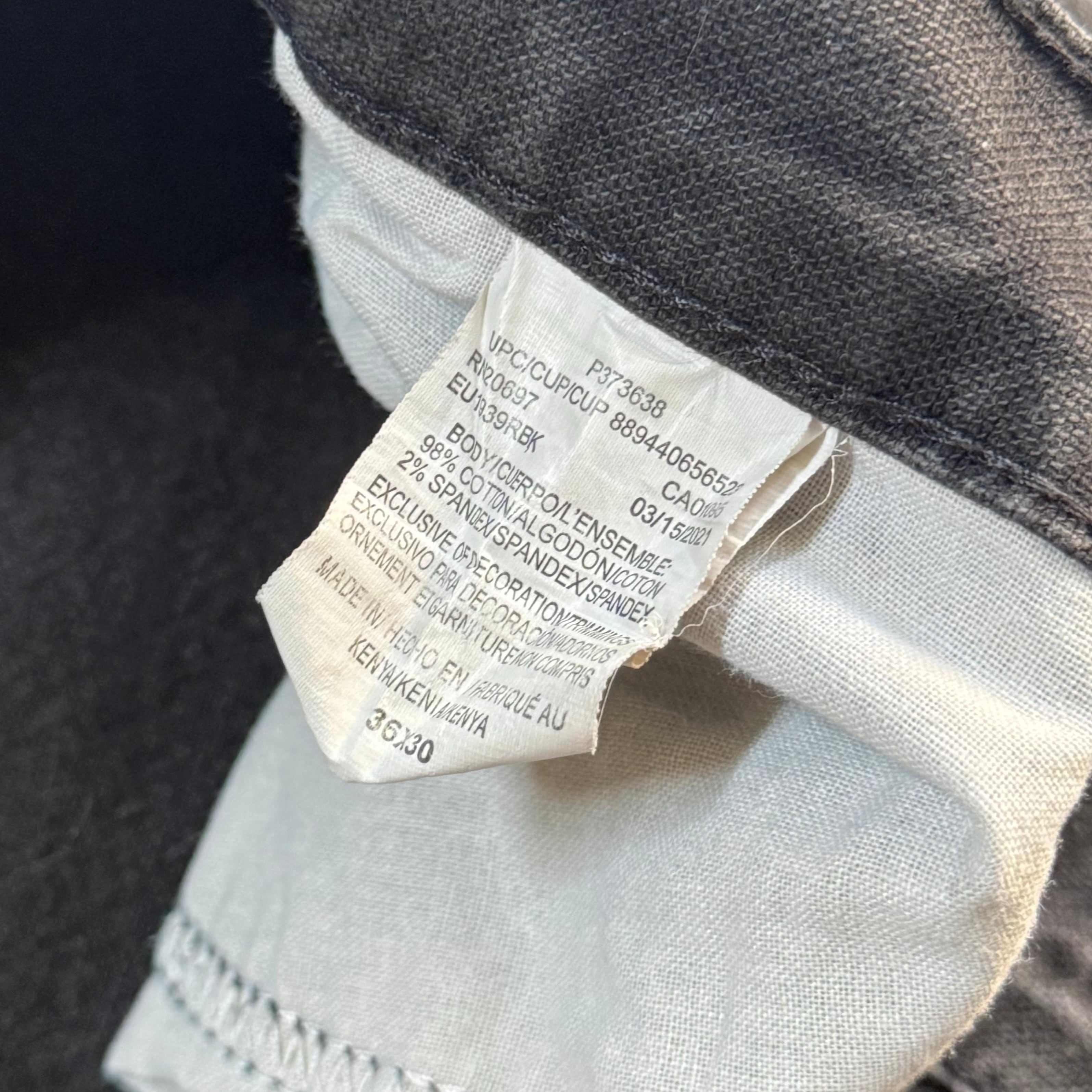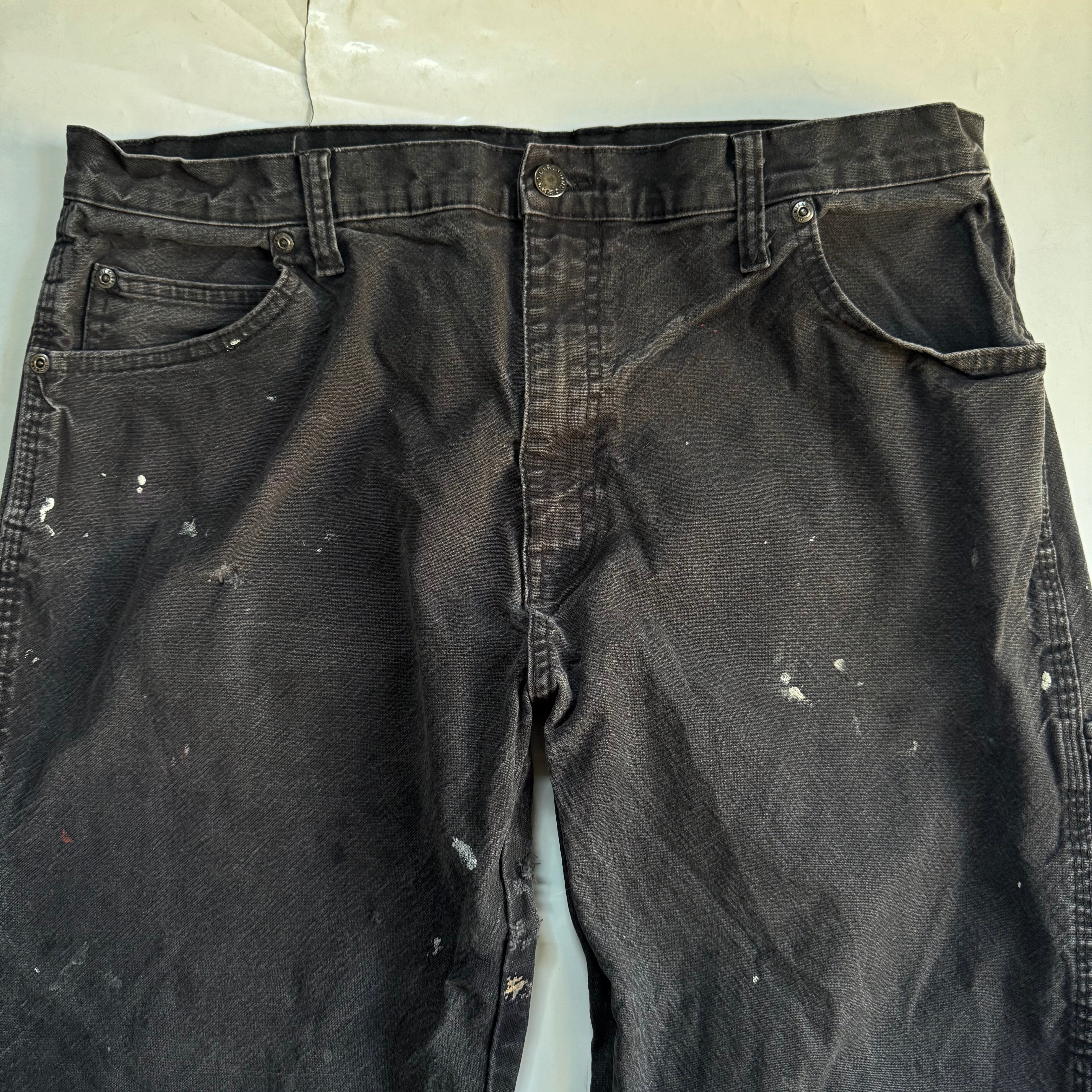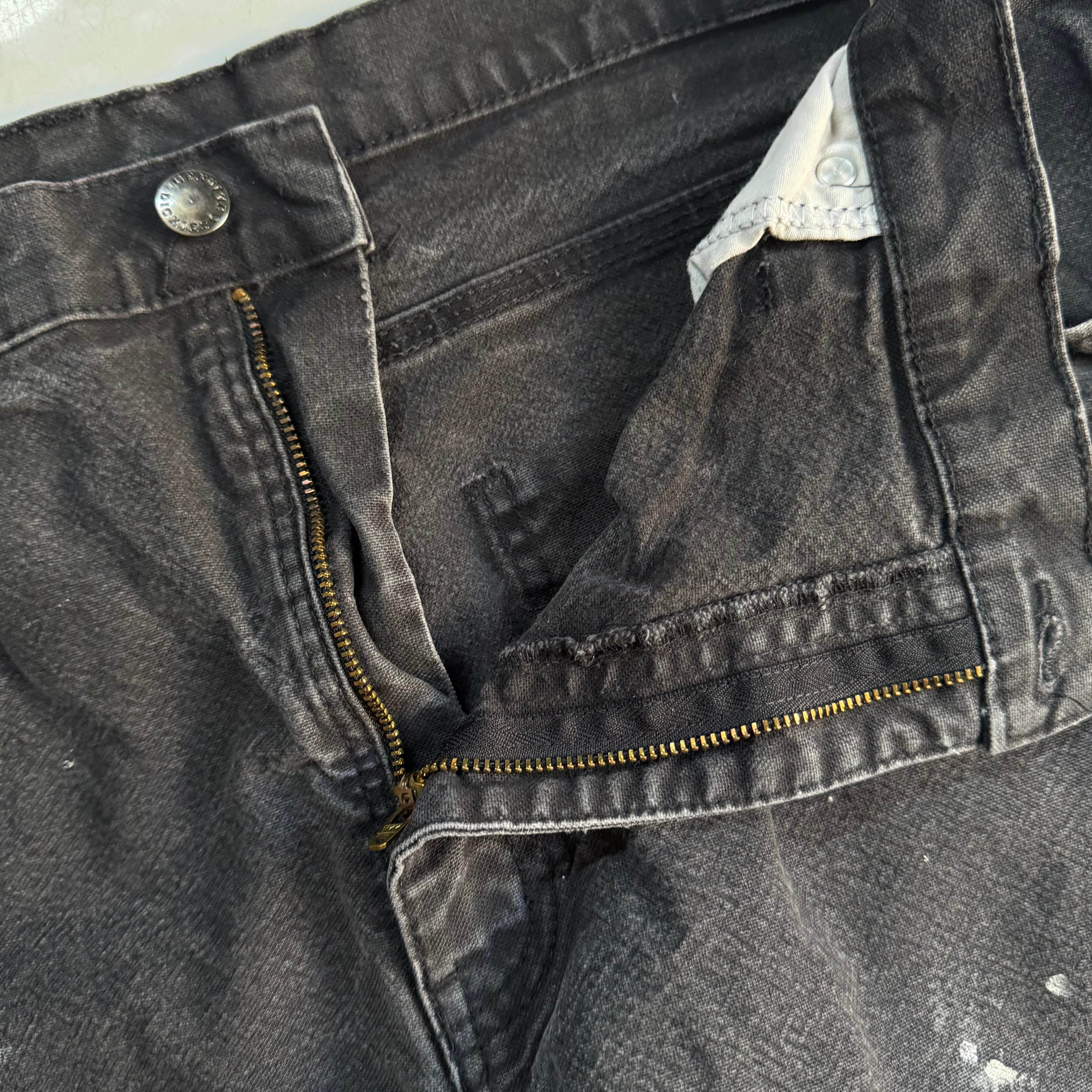 •SIZE 36×30 ウエスト 95cm 股上 30cm 股下 73cm わたり 34cm 裾幅 24cm •MATERIAL COTTON 100% •COLOR ブラック •CONDITION 全体的に使用感、ペンキ汚れ、背面股裏にダメージ。写真にてご確認下さい。 ya6154