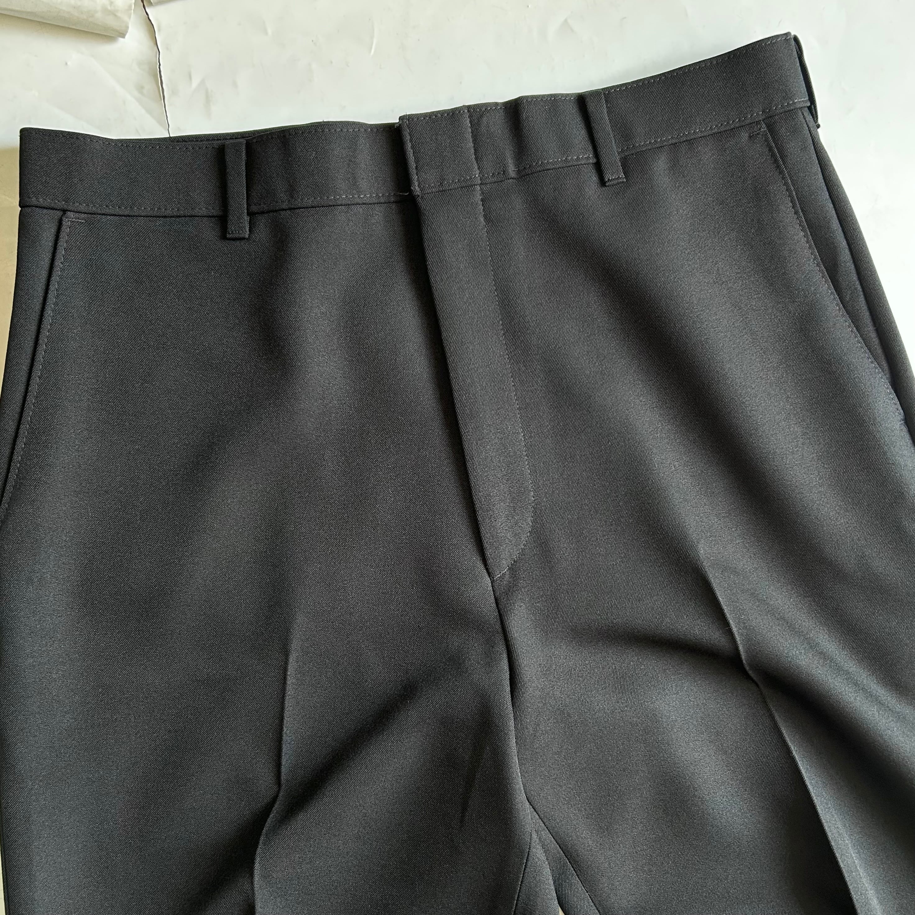 •SIZE 表記なし ウエスト 86cm 股上 34cm 股下 80cm わたり 30.5cm 裾幅 21cm •MATERIAL 恐らくPolyester100% •COLOR ブラック •CONDITION 使用感はございますが、目立った傷や汚れ等はございません。 gar2519