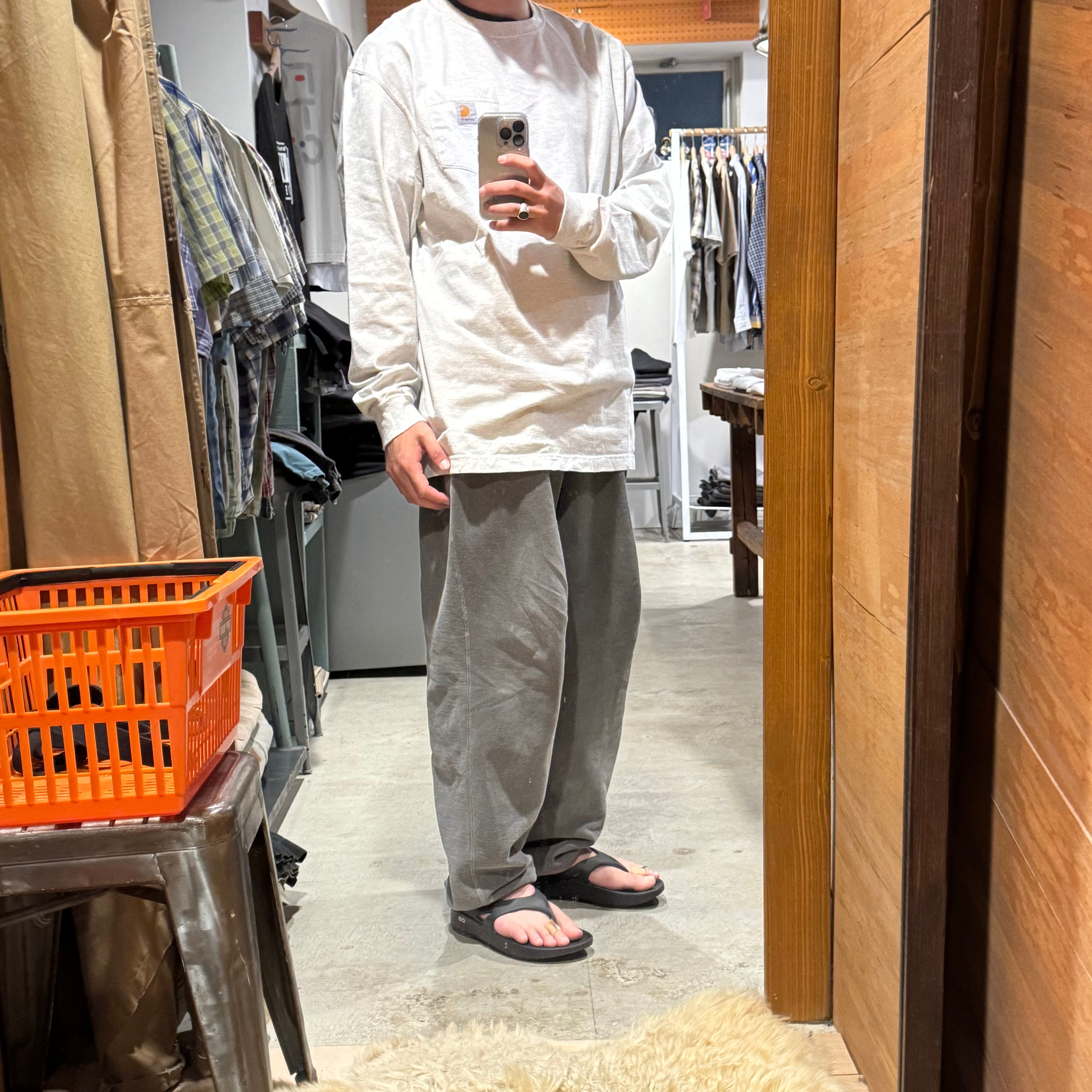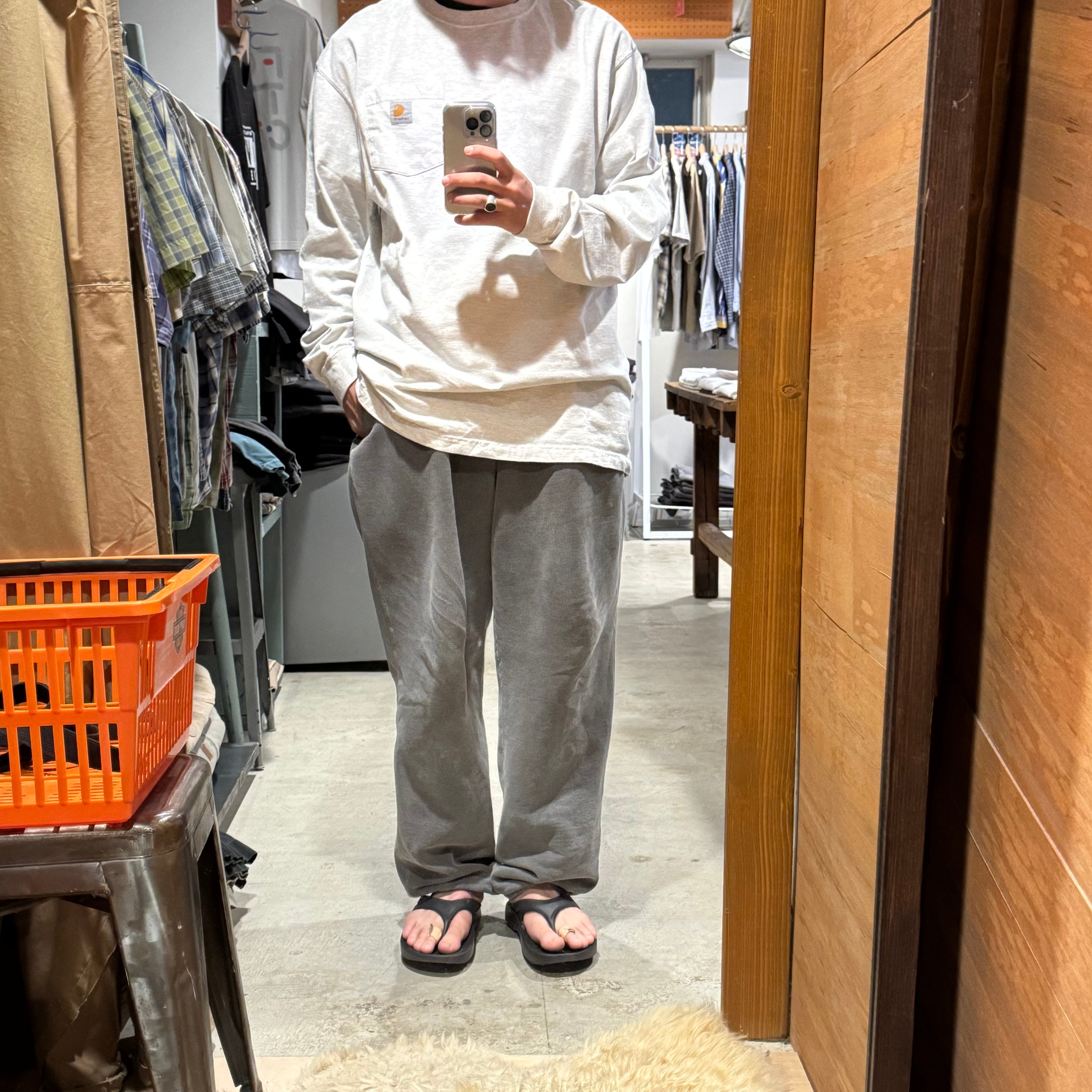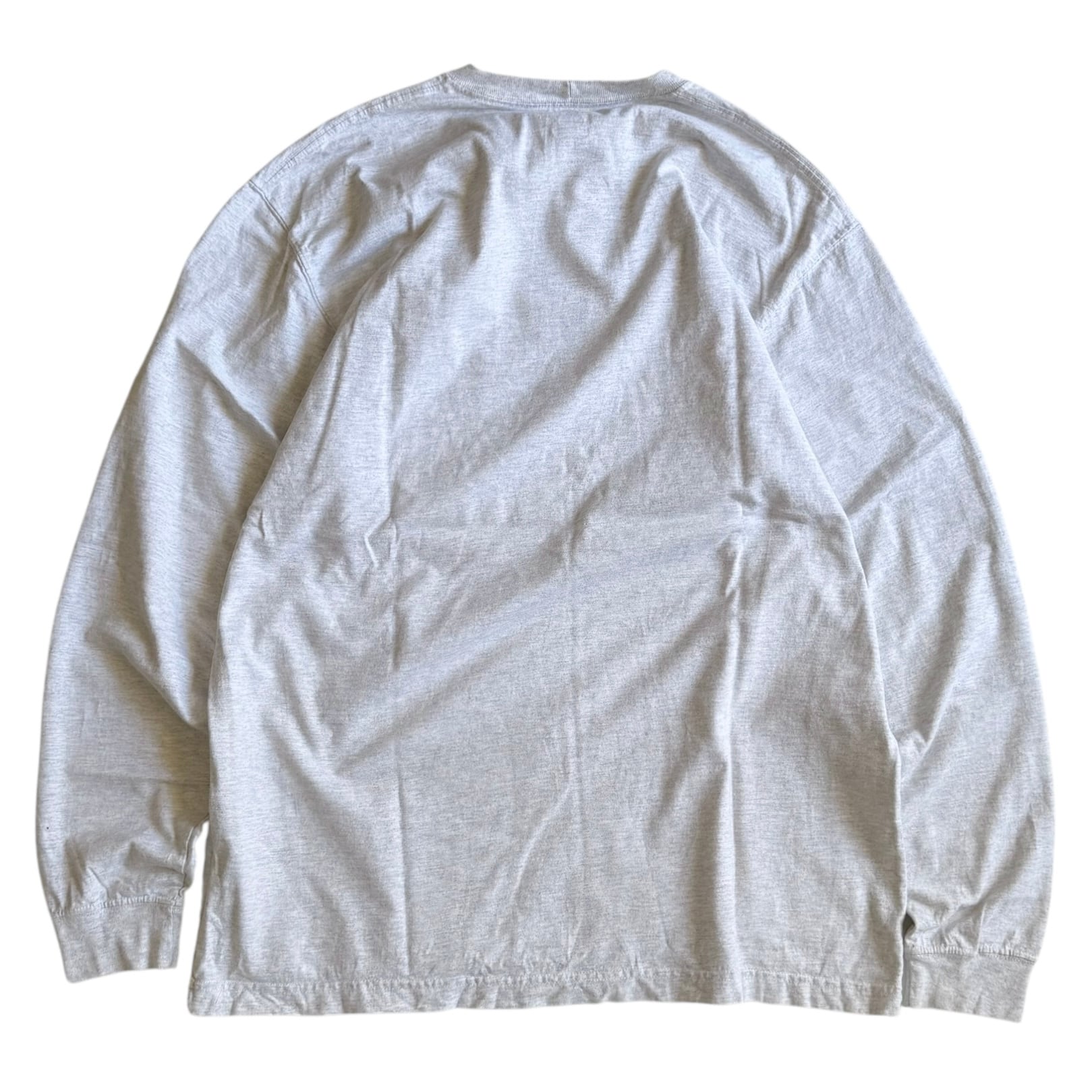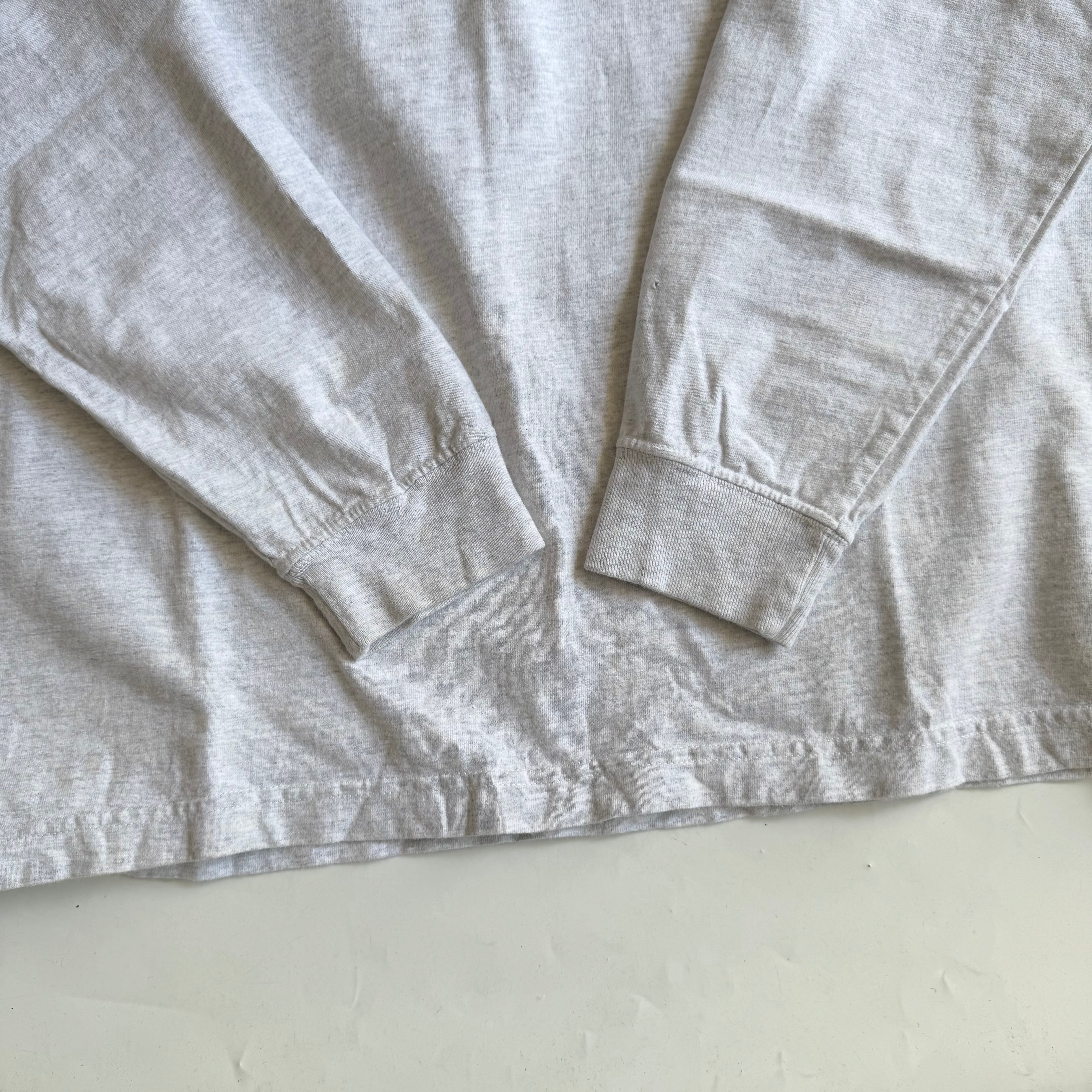 •SIZE L 肩幅 55cm 袖丈 68.5cm 身幅 61cm 着丈 78.5cm 175cm着用 •MATERIAL COTTON 99% POLYESTER 1% •COLOR グレー •CONDITION 袖口に使用感、背面に薄いシミ、左袖にピンホール。写真にてご確認下さい。 ya6131