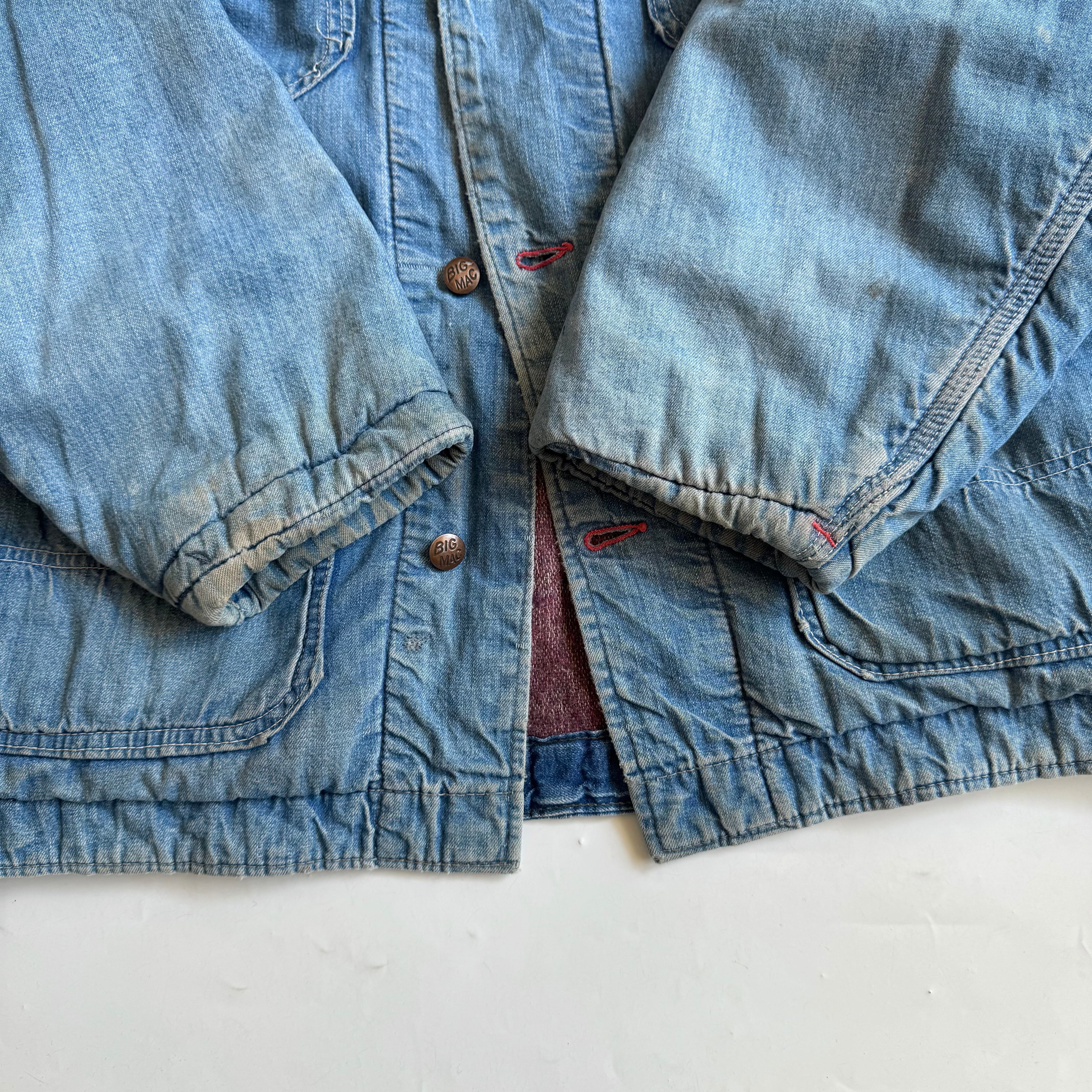 60s〜 •SIZE 表記不明 肩幅 51cm 袖丈 59cm 身幅 61cm 着丈 75cm 178cm着用 •MATERIAL 恐らく COTTON •COLOR インディゴ •CONDITION 使用感、フロントにリペア、アタリ、袖口に汚れ。写真にてご確認ください。 ya6139