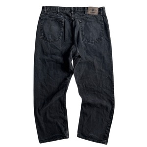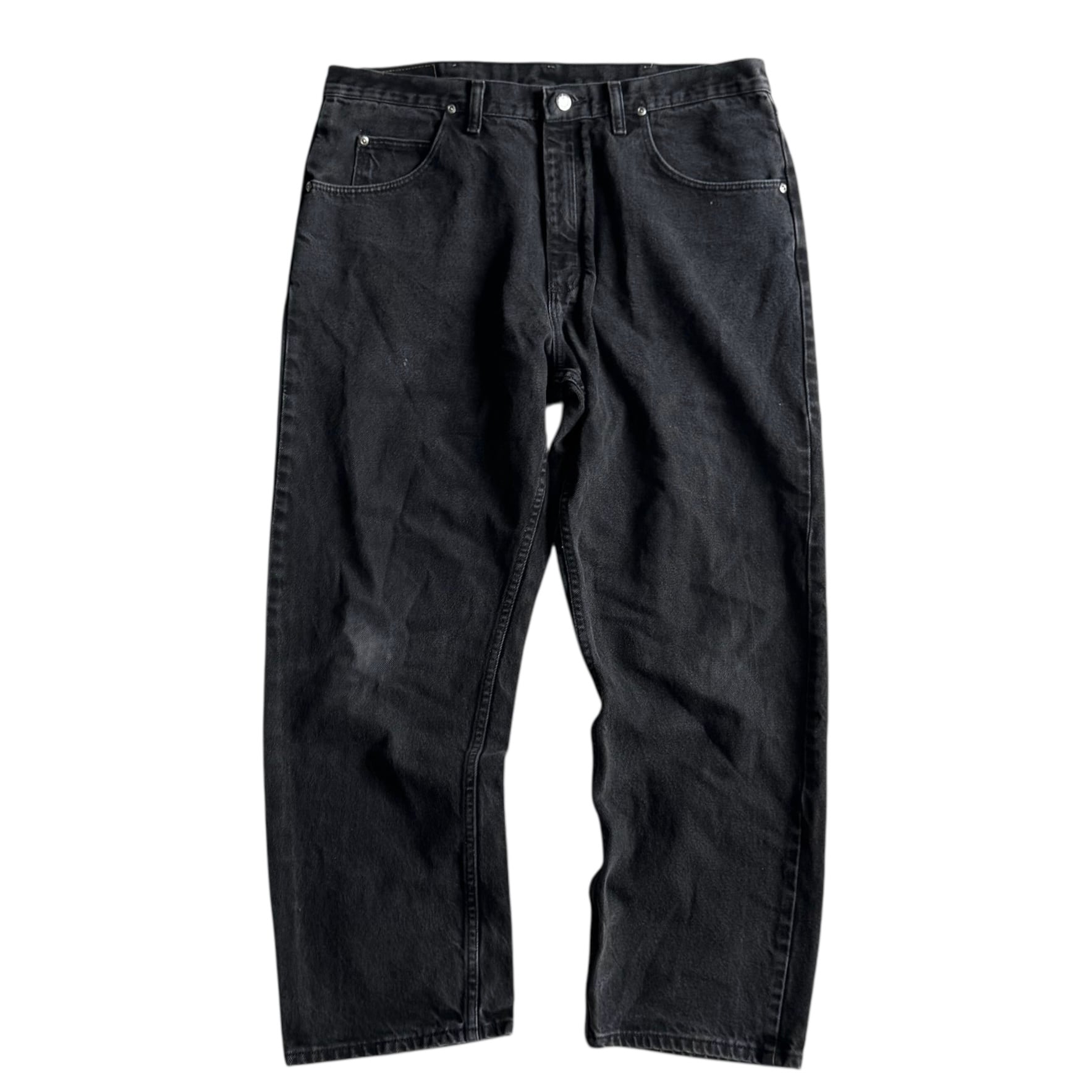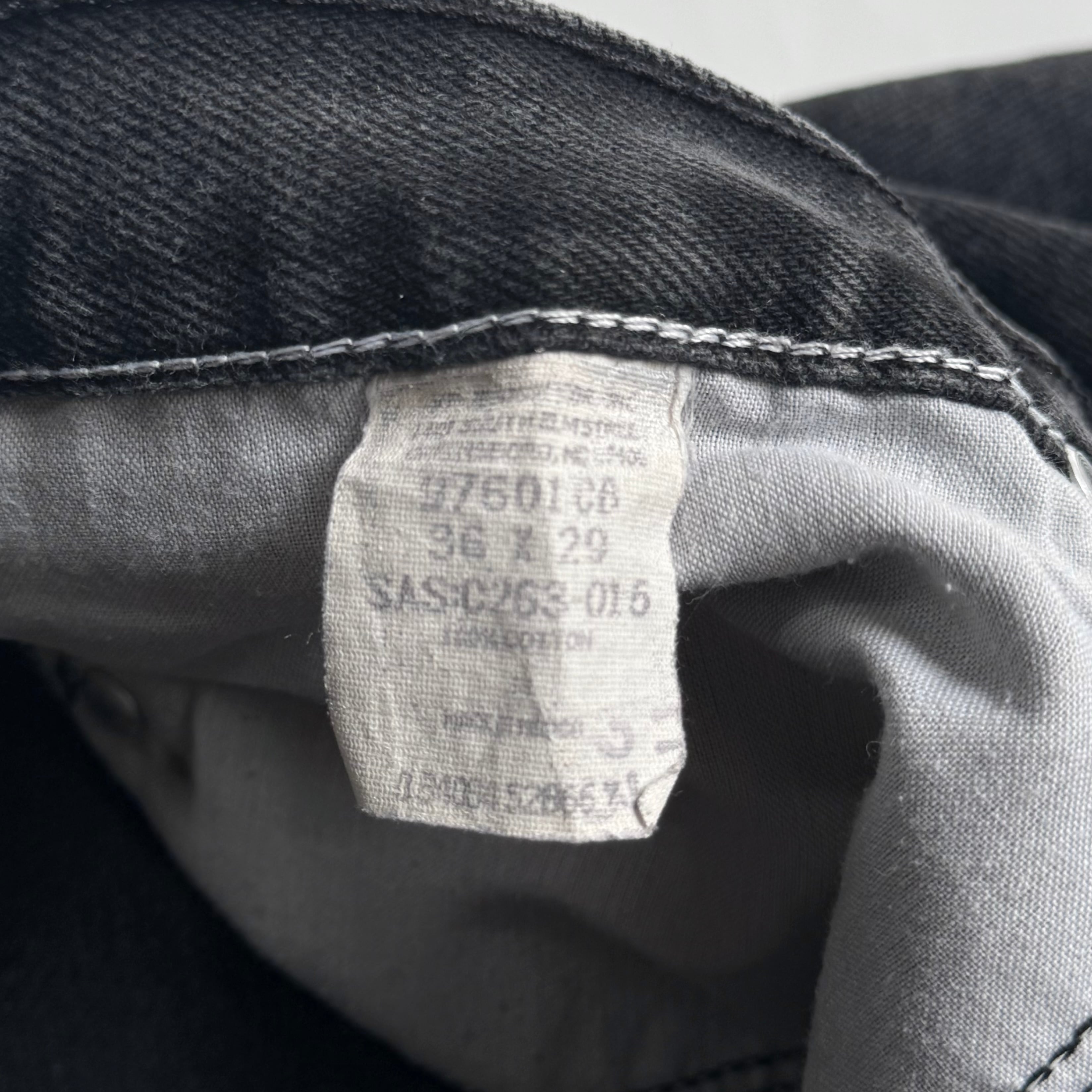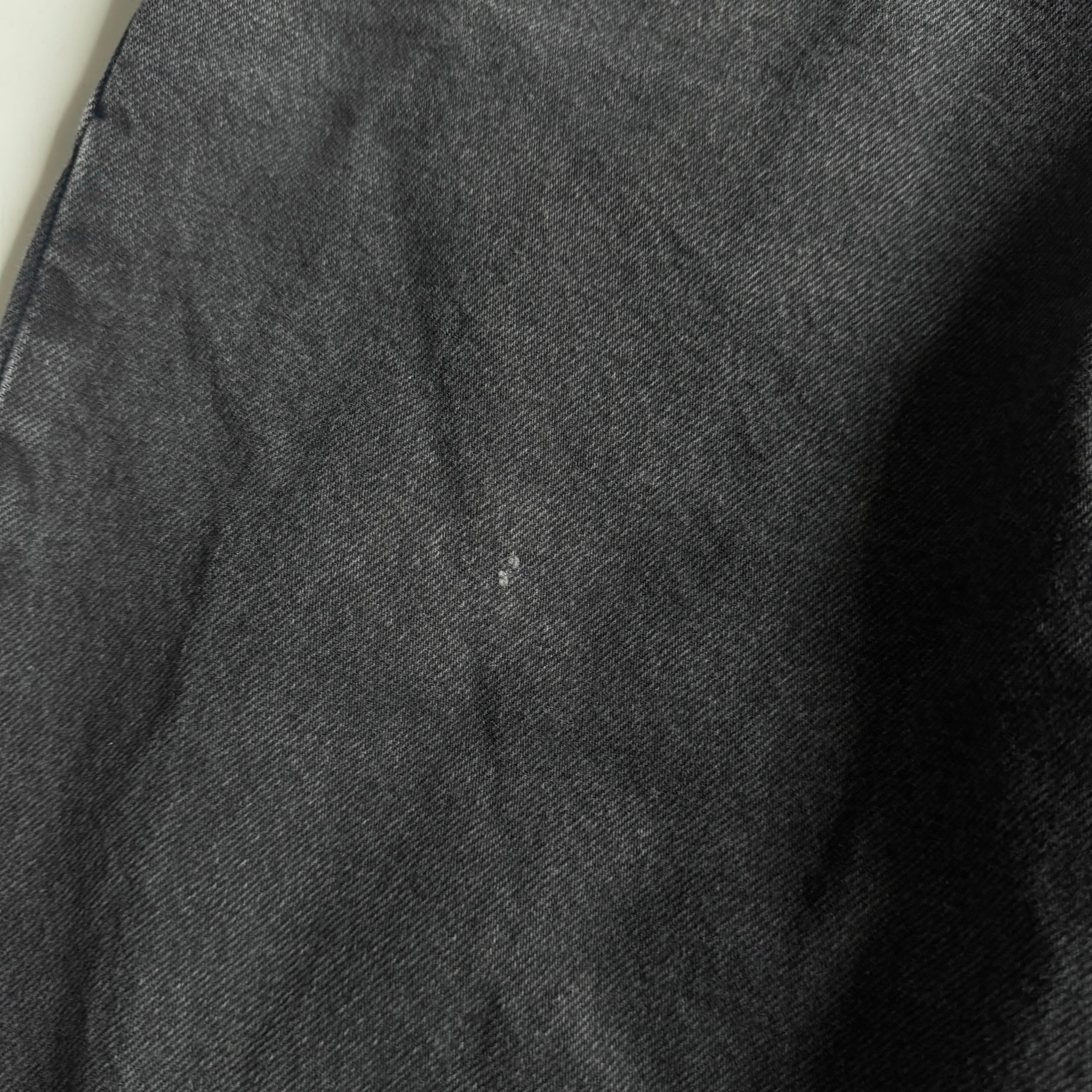 •SIZE 36×29 ウエスト 94cm 股上 31cm 股下 72.5cm わたり 35cm 裾幅 22.5cm •MATERIAL COTTON 100% •COLOR ブラック •CONDITION 使用感、フロントに小さな汚れやダメージ、右膝にアタリ。写真にてご確認ください。 ya6150