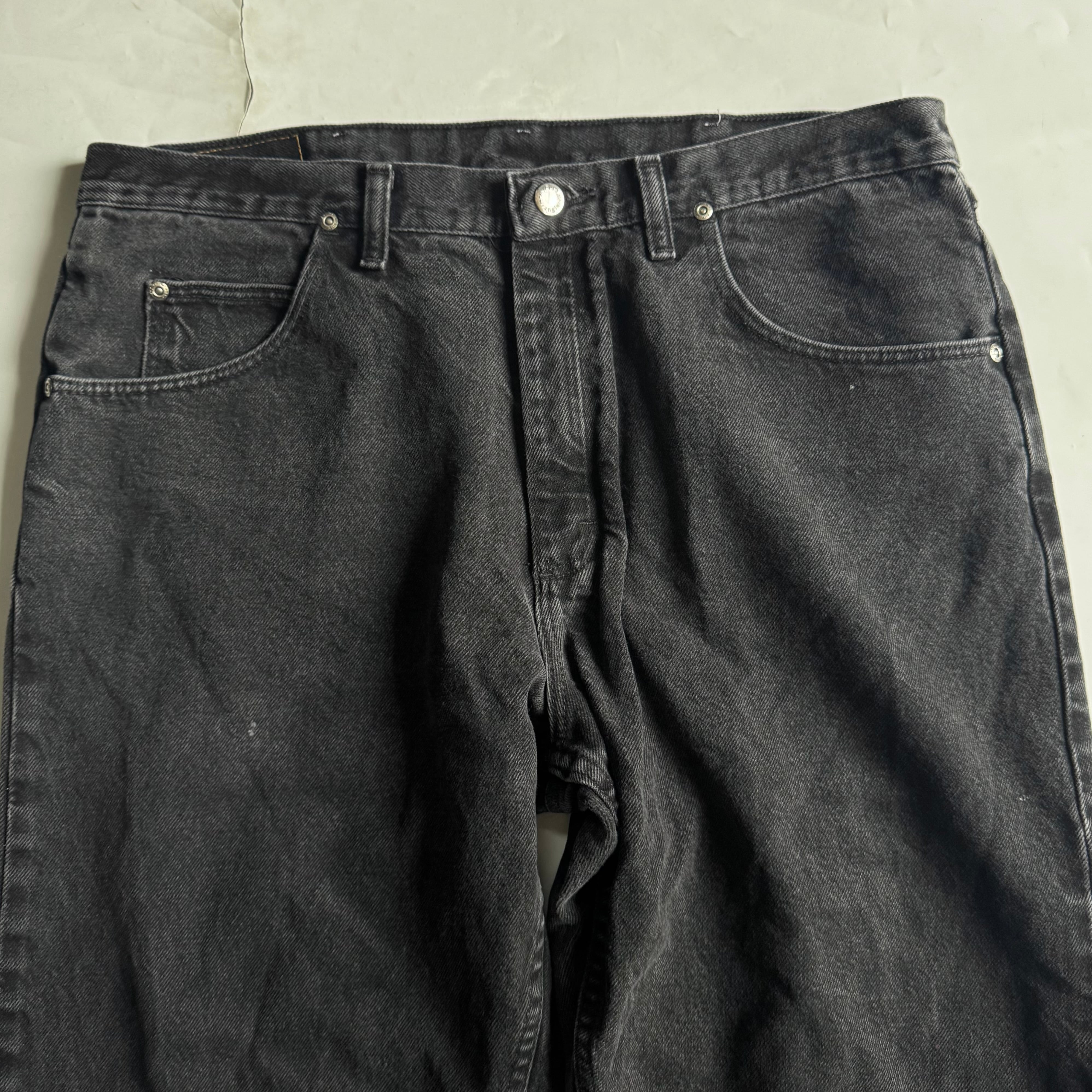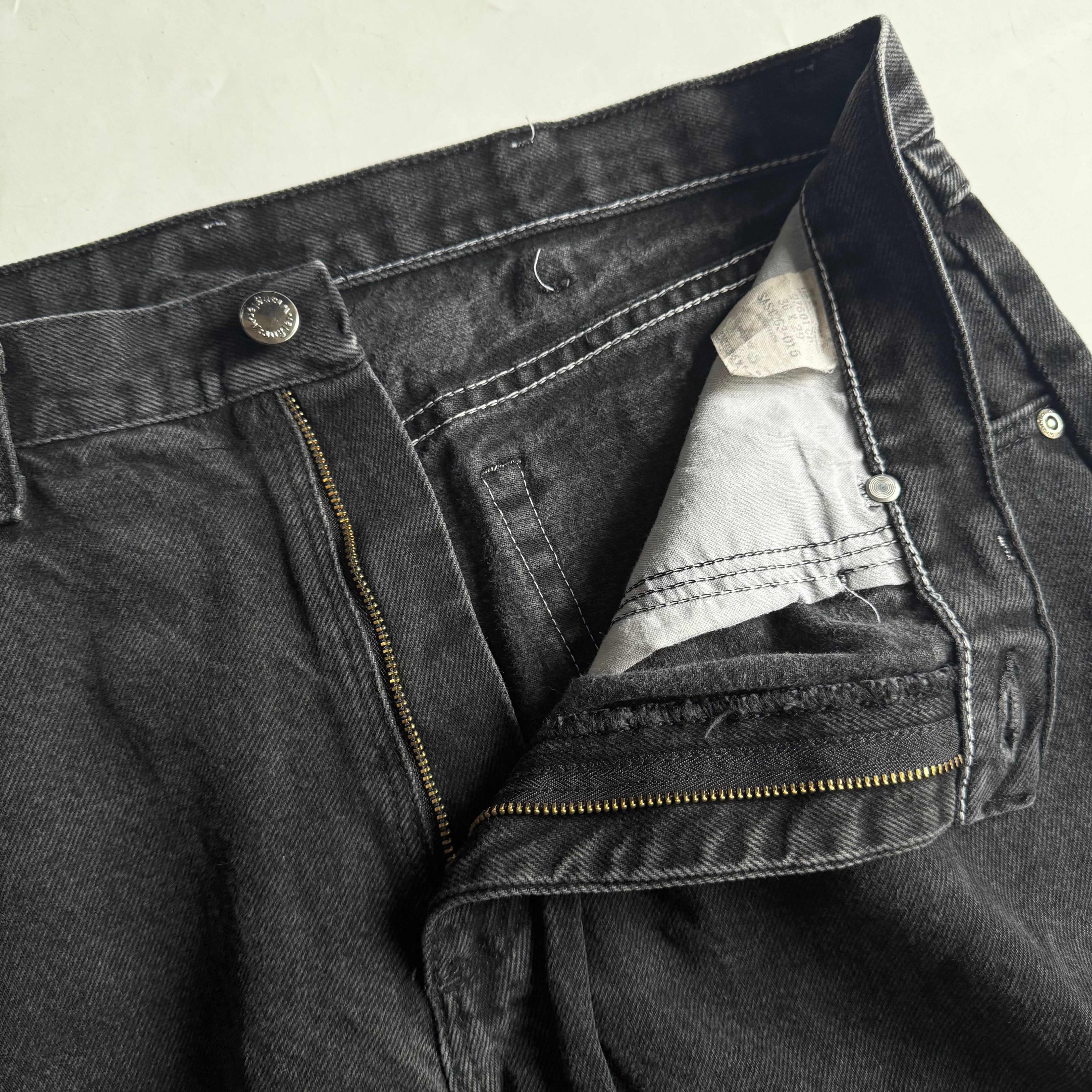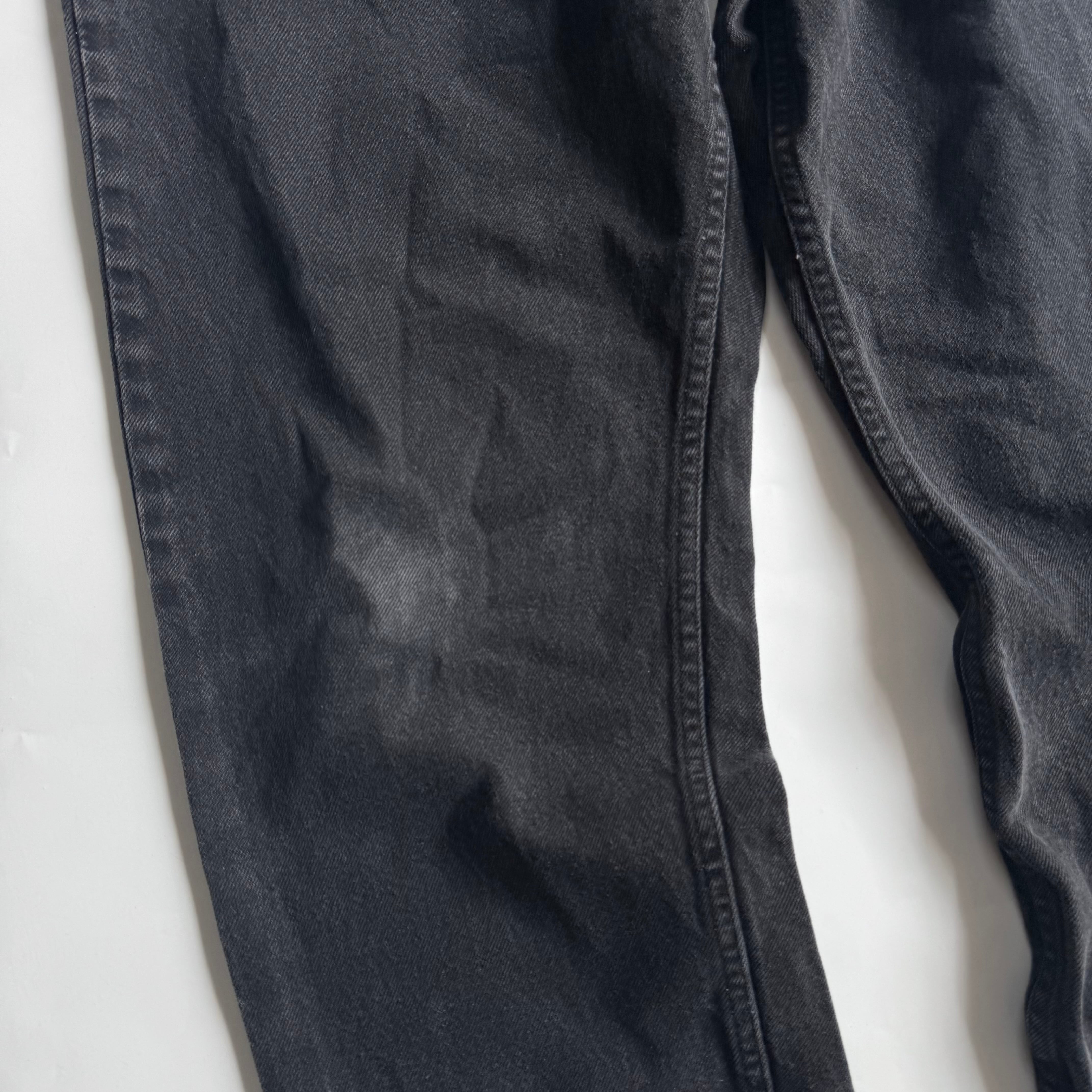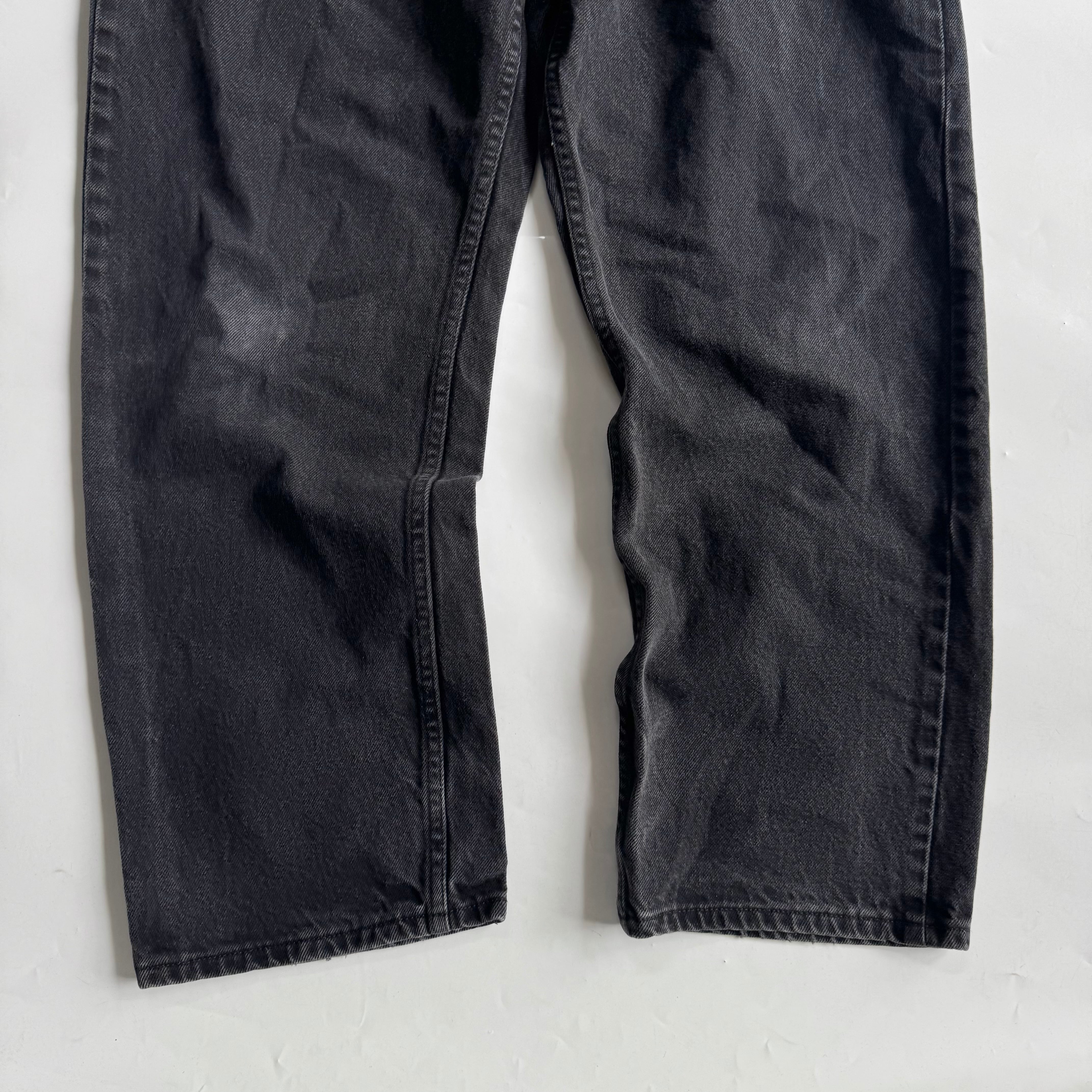 •SIZE 36×29 ウエスト 94cm 股上 31cm 股下 72.5cm わたり 35cm 裾幅 22.5cm •MATERIAL COTTON 100% •COLOR ブラック •CONDITION 使用感、フロントに小さな汚れやダメージ、右膝にアタリ。写真にてご確認ください。 ya6150