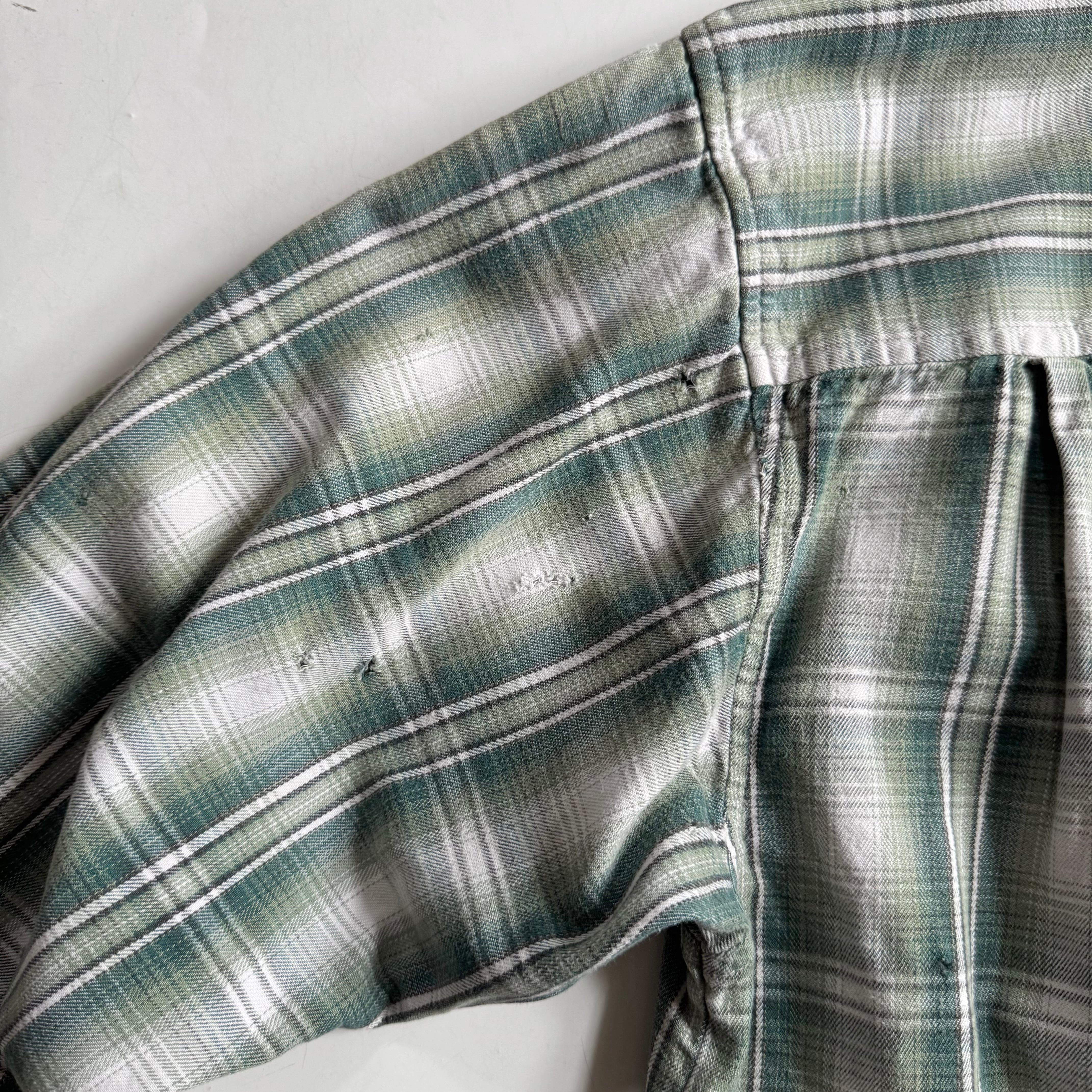 •SIZE XL 肩幅 59cm 袖丈 60cm 身幅 67cm 着丈 77cm 175cm着用 •MATERIAL COTTON 100% •COLOR グリーン ホワイト ブラック •CONDITION 使用感、左肩背面にダメージ。 写真にてご確認ください。 gar2460