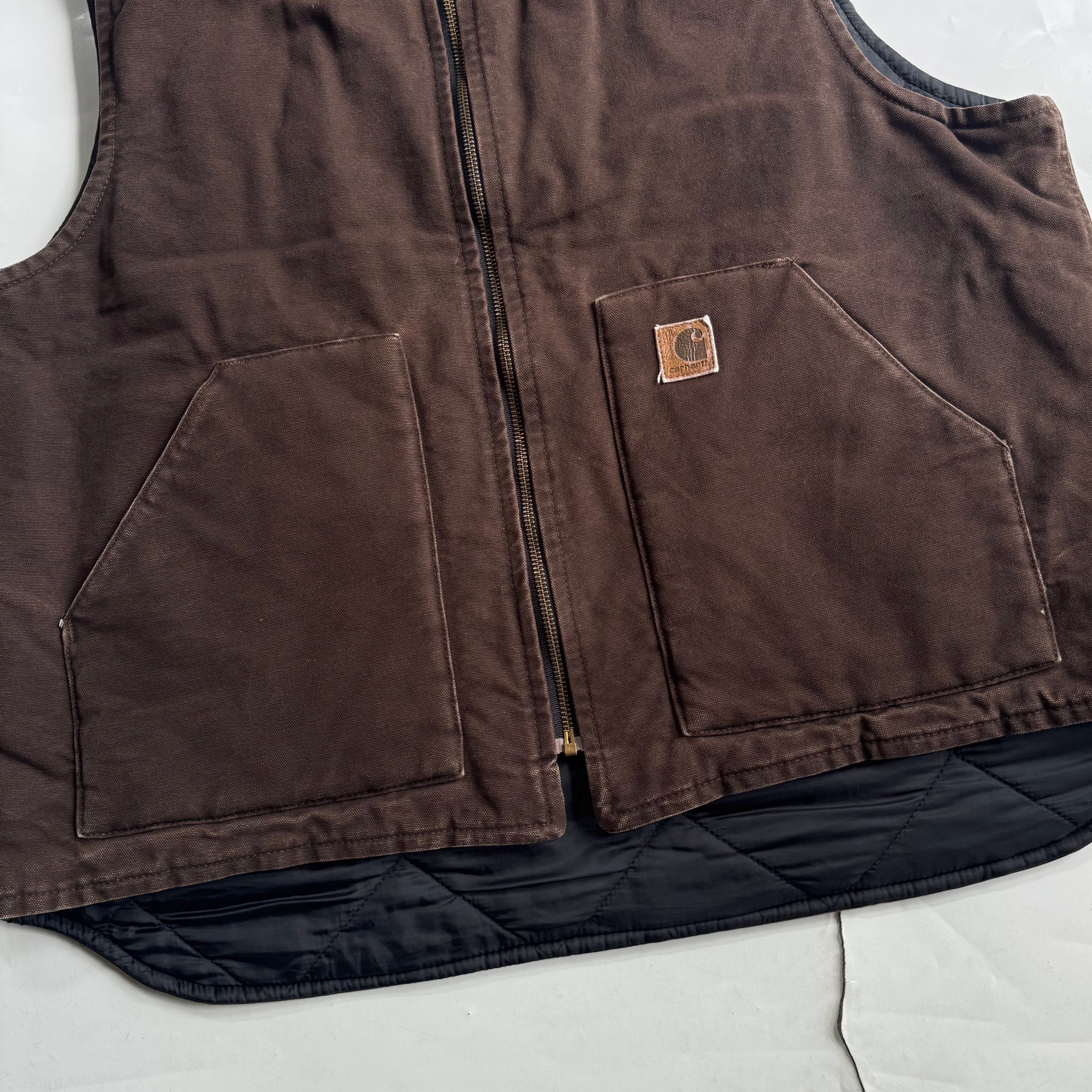 気取らずガバッと着れるお馴染みのダックベスト。着やすいカラーだと思います◎ •SIZE XL 肩幅 46cm 身幅 66cm 着丈 71cm 175cm着用 •MATERIAL COTTON 100% •COLOR ブラウン •CONDITION 使用感、多少のアタリ。 写真にてご確認下さい。 gar2676