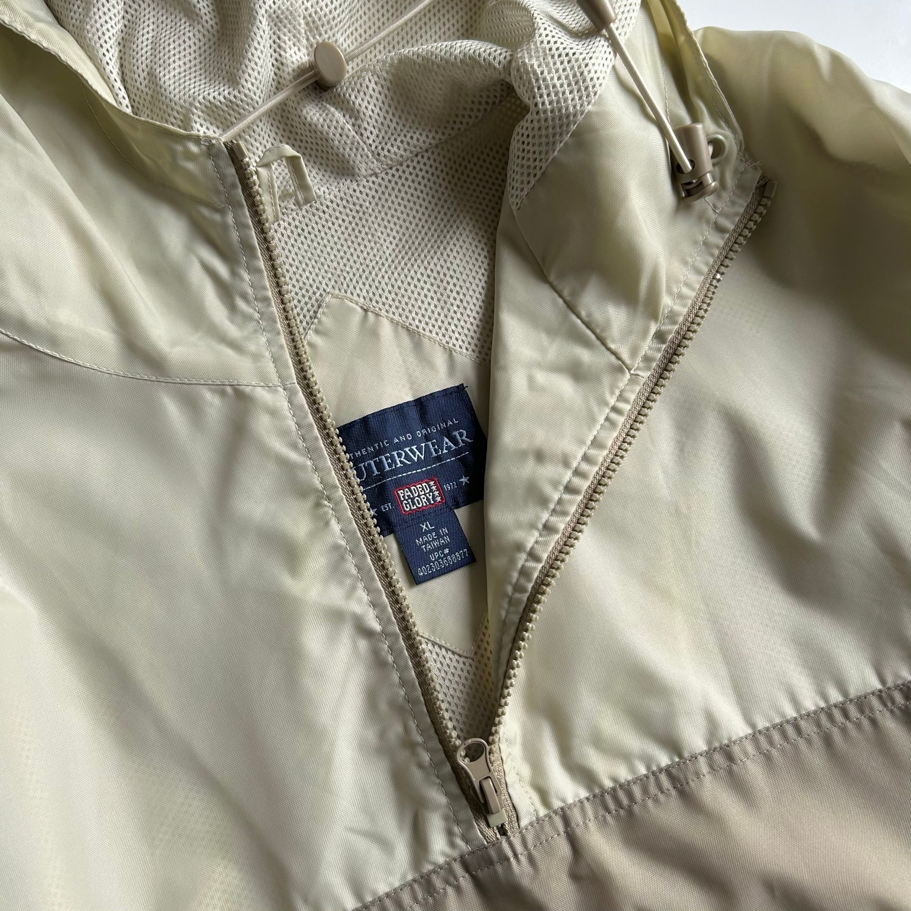 •SIZE XL 肩幅 68cm 袖丈 59.5cm 身幅 73.5cm 着丈 73.5cm 175cm着用 •MATERIAL NYLON 100% •COLOR ベージュ系 •CONDITION 色褪せ、シミ汚れあり 手首付近ダメージあり 写真参照 ya6285