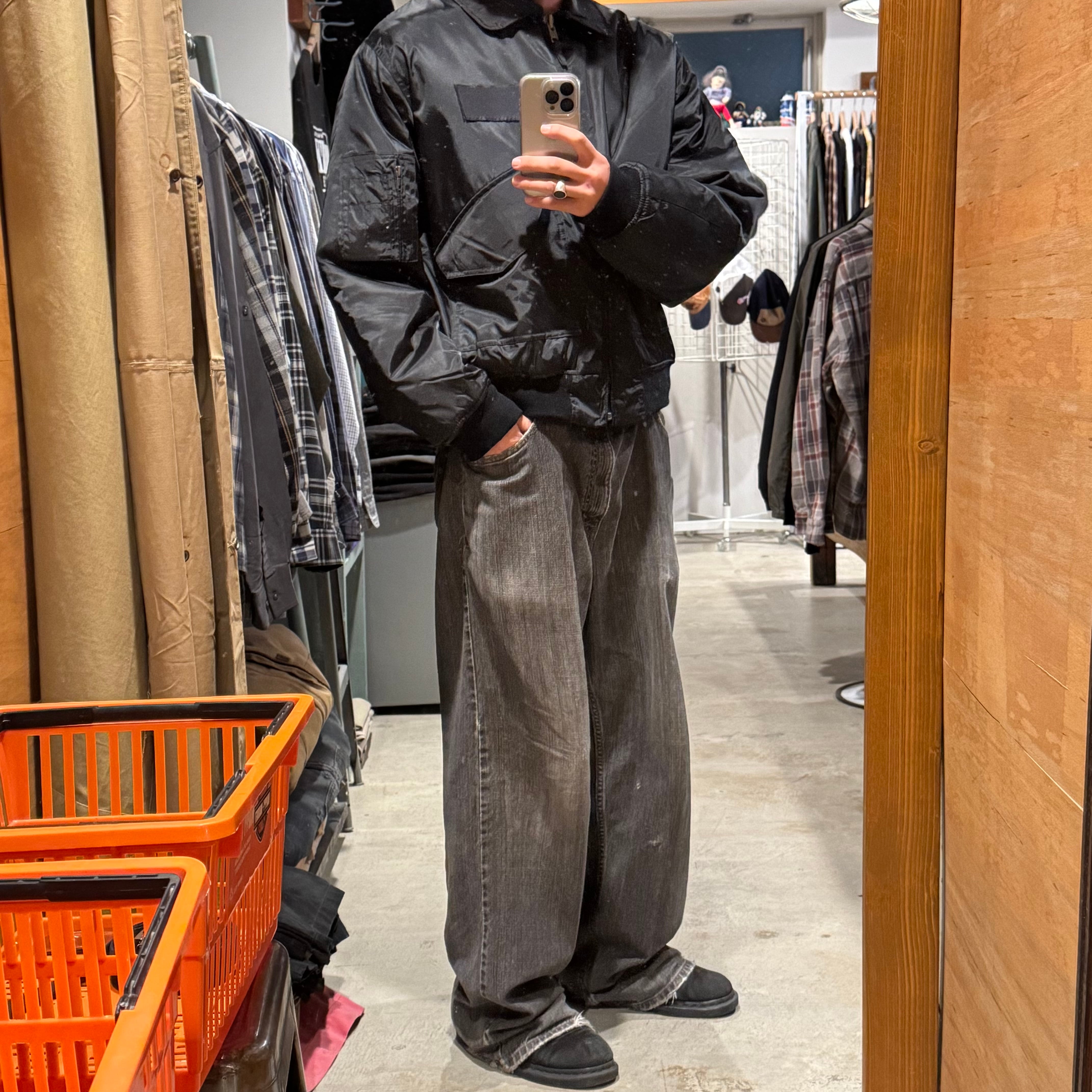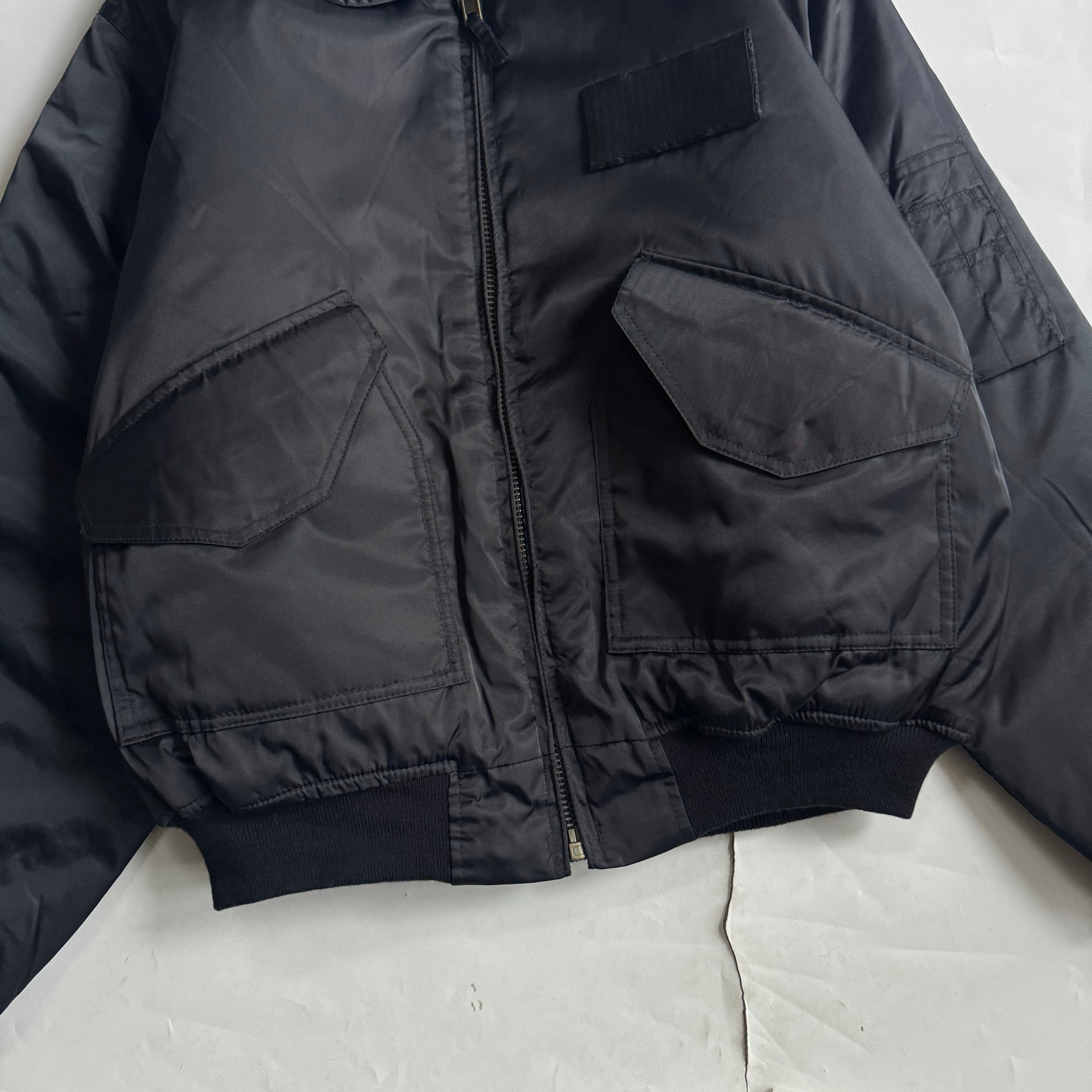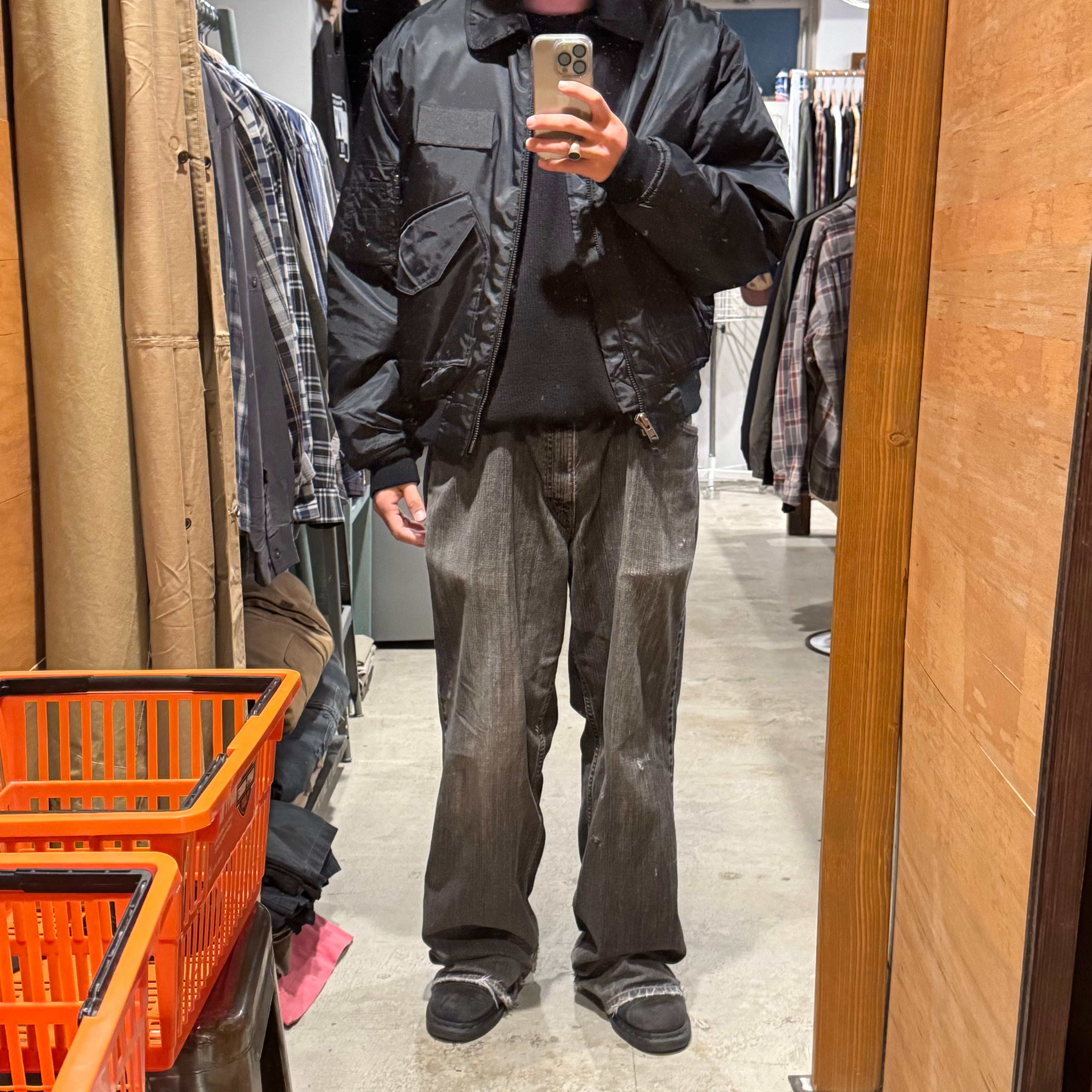 民間のcwu45-p。この手のフライトjktから滲み出る漢気感◎。軽くて着やすく、中綿で保温性あり。身幅広めで着丈短めないい形です。