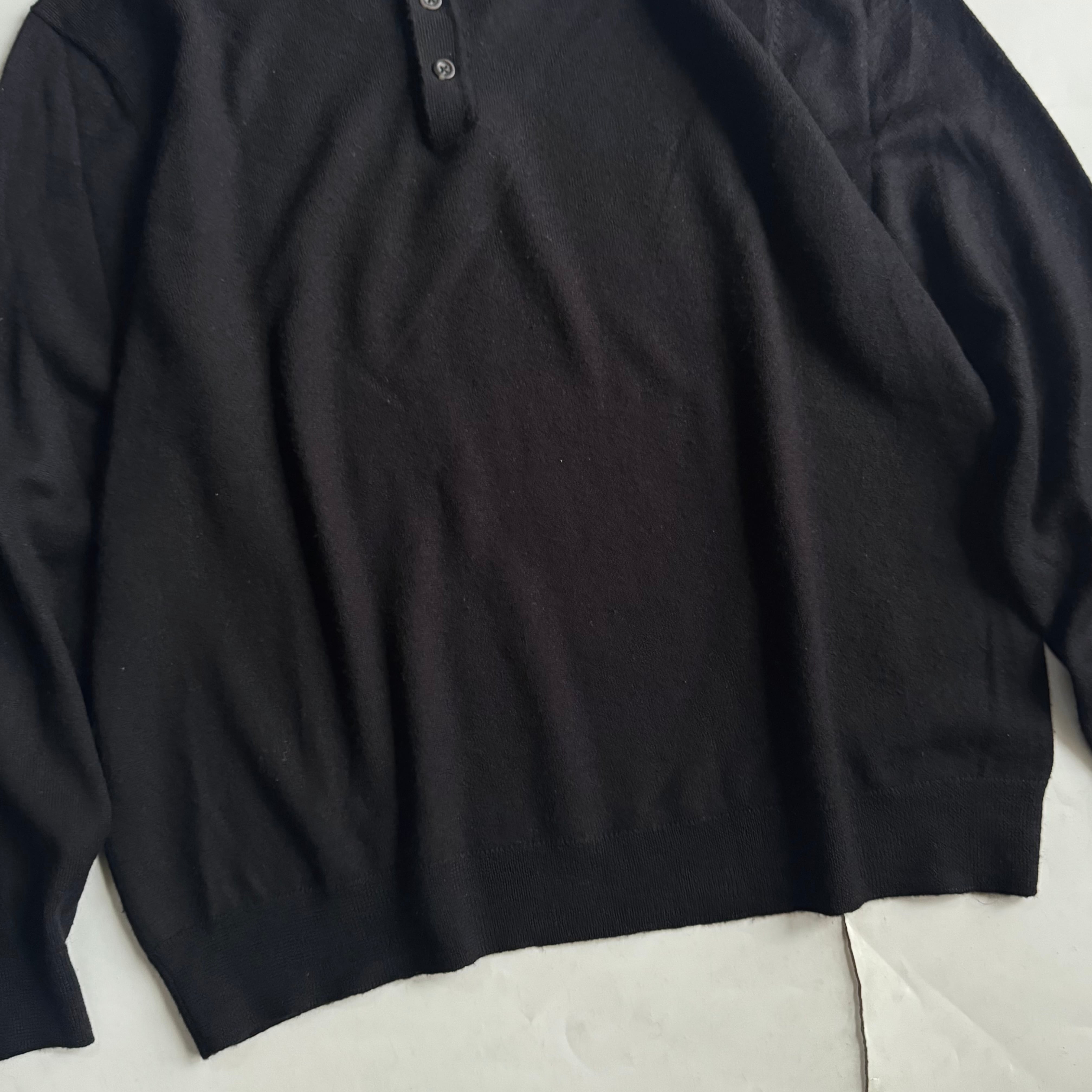 程よくゆとりのあるルーズなシルエット◎ •SIZE XL 肩幅 50.5cm 袖丈 60cm 身幅 59cm 着丈 66.5cm 175cm着用 •MATERIAL MERINO WOOL 52% ACRYLIC 48% •COLOR ブラック •CONDITION 使用感はございますが、目立ったダメージや汚れはございません。 ya6297