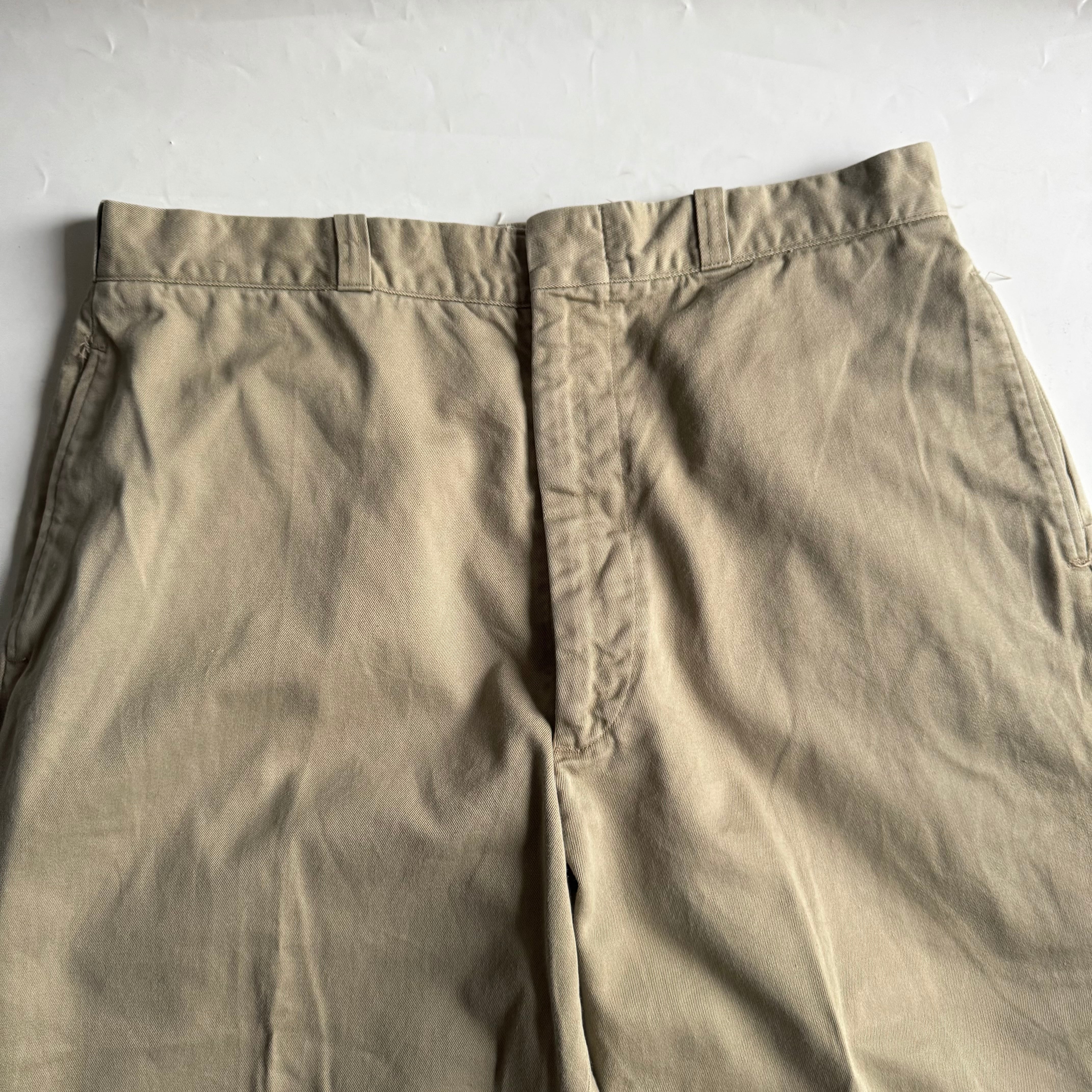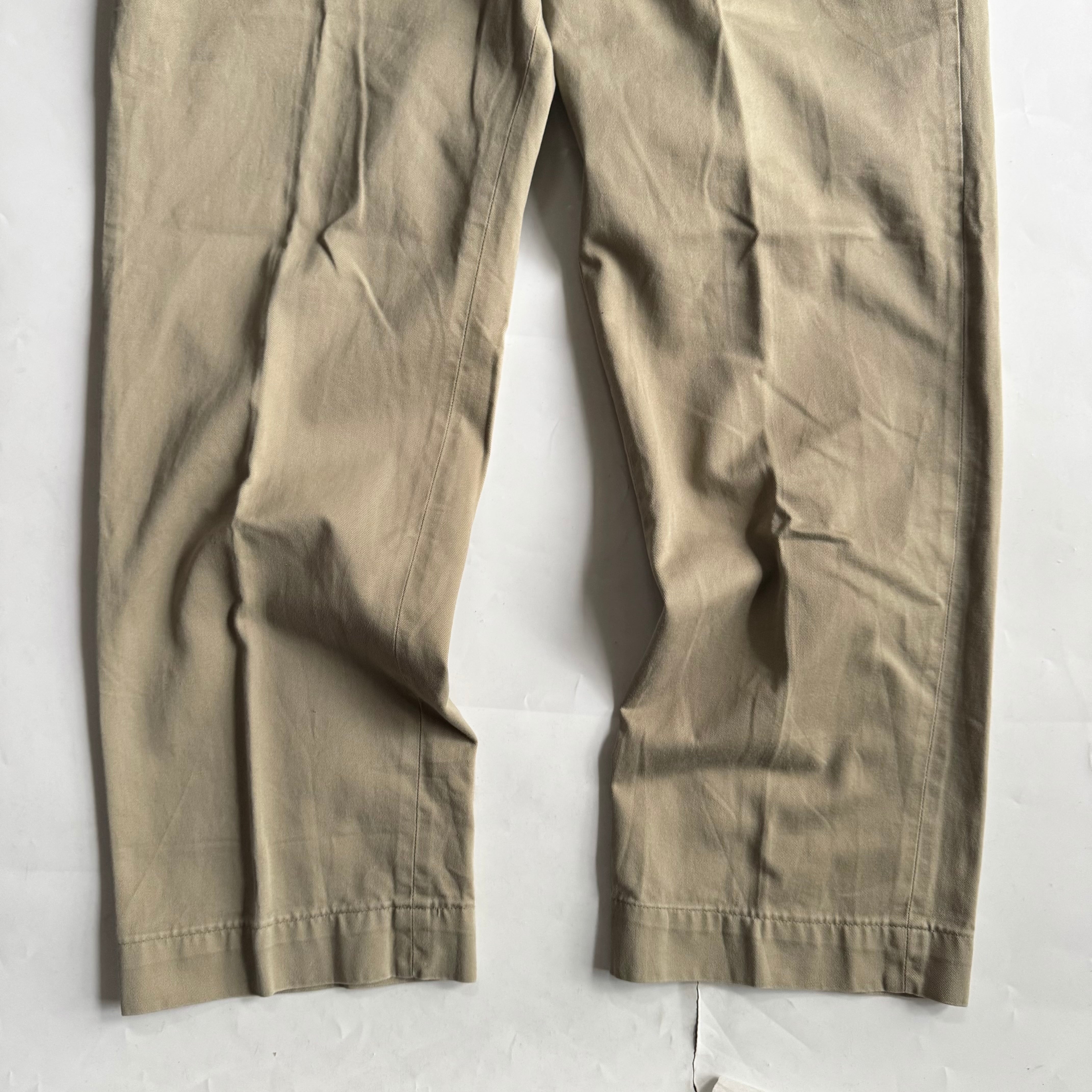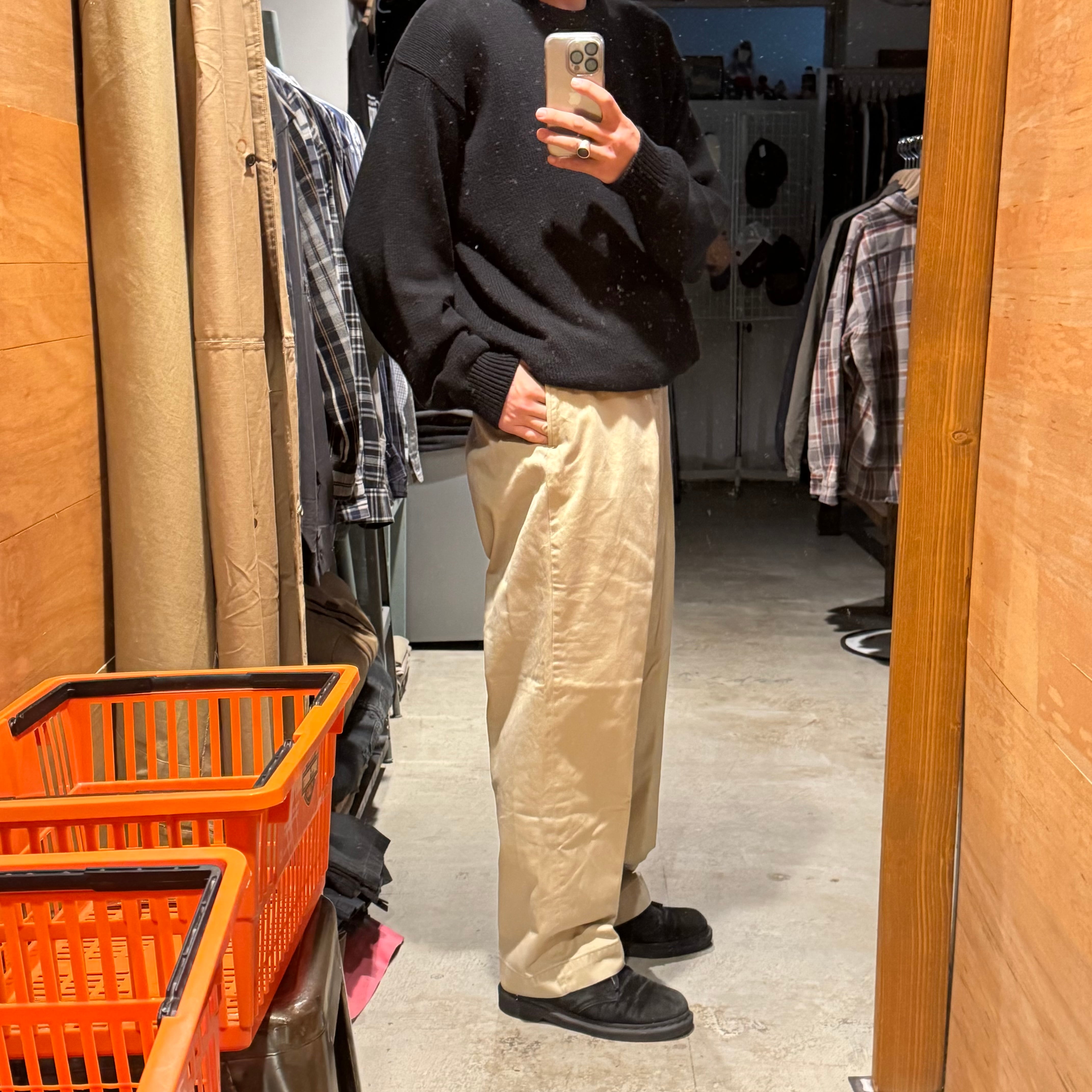 60s~ •SIZE 36×31 ウエスト 86cm 股上 32.5cm 股下 75.5cm わたり 34cm 裾幅 23.5cm 175cm着用 •MATERIAL COTTON 100% •COLOR ベージュ •CONDITION 使用感はございますが、目立った傷や汚れ等はございません。 kt491