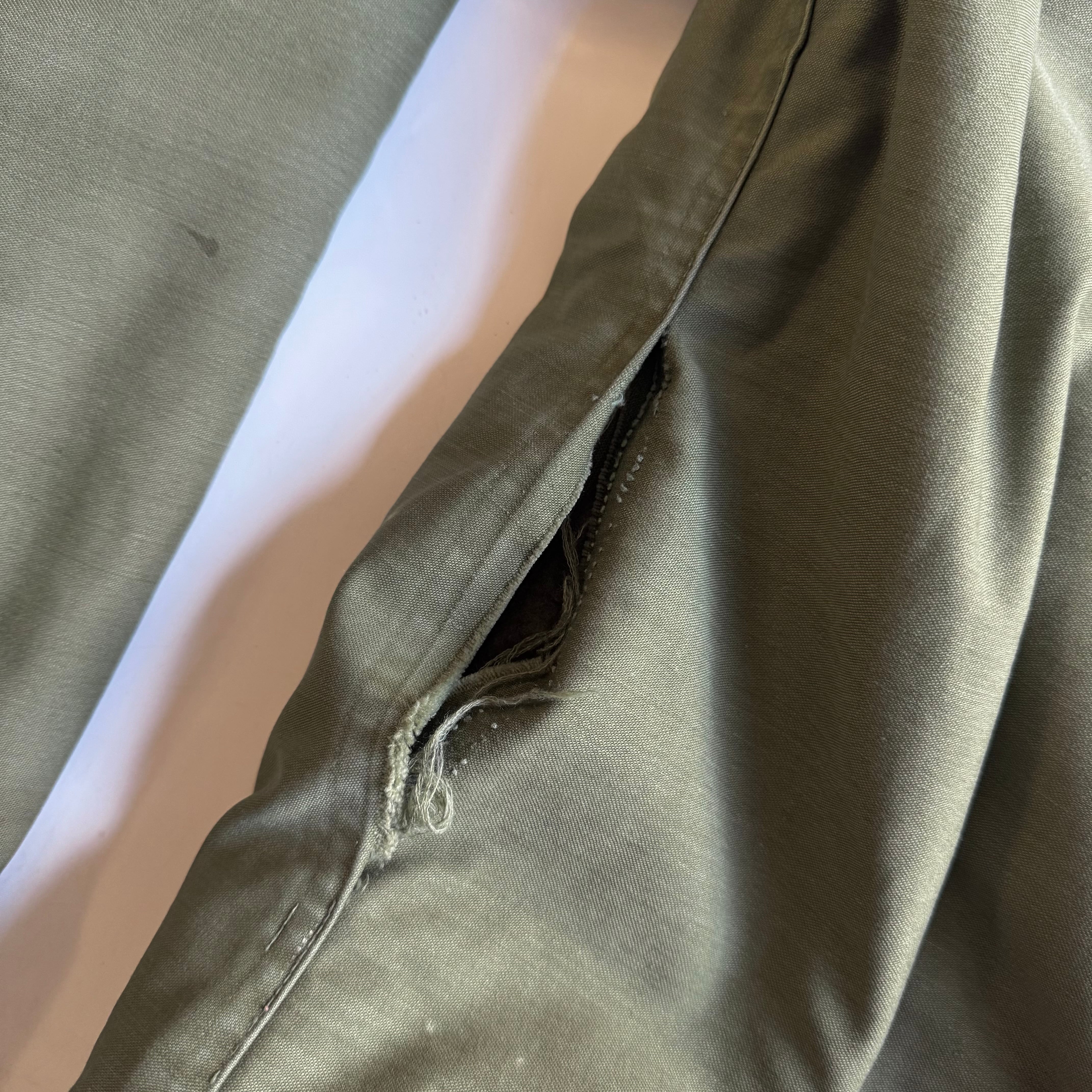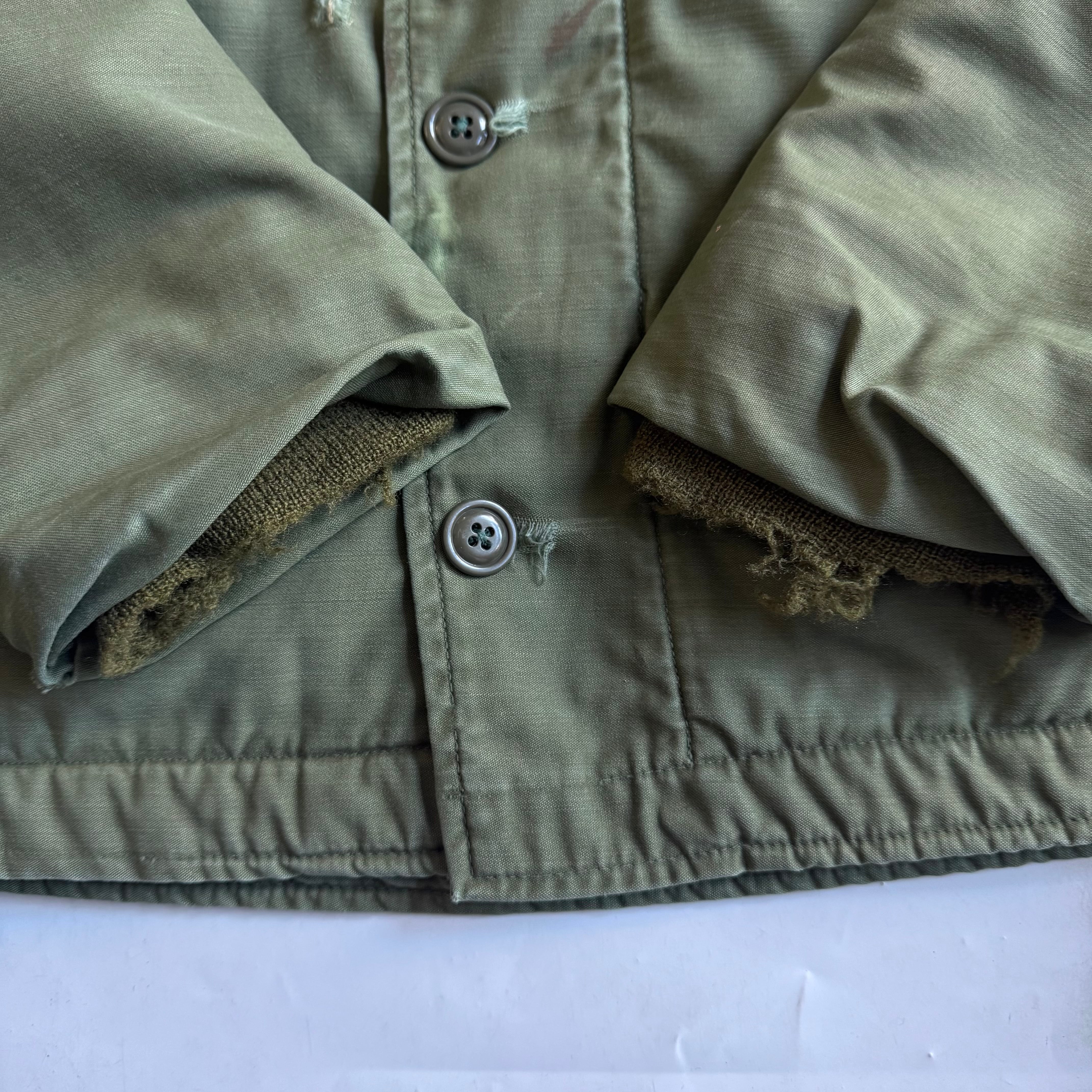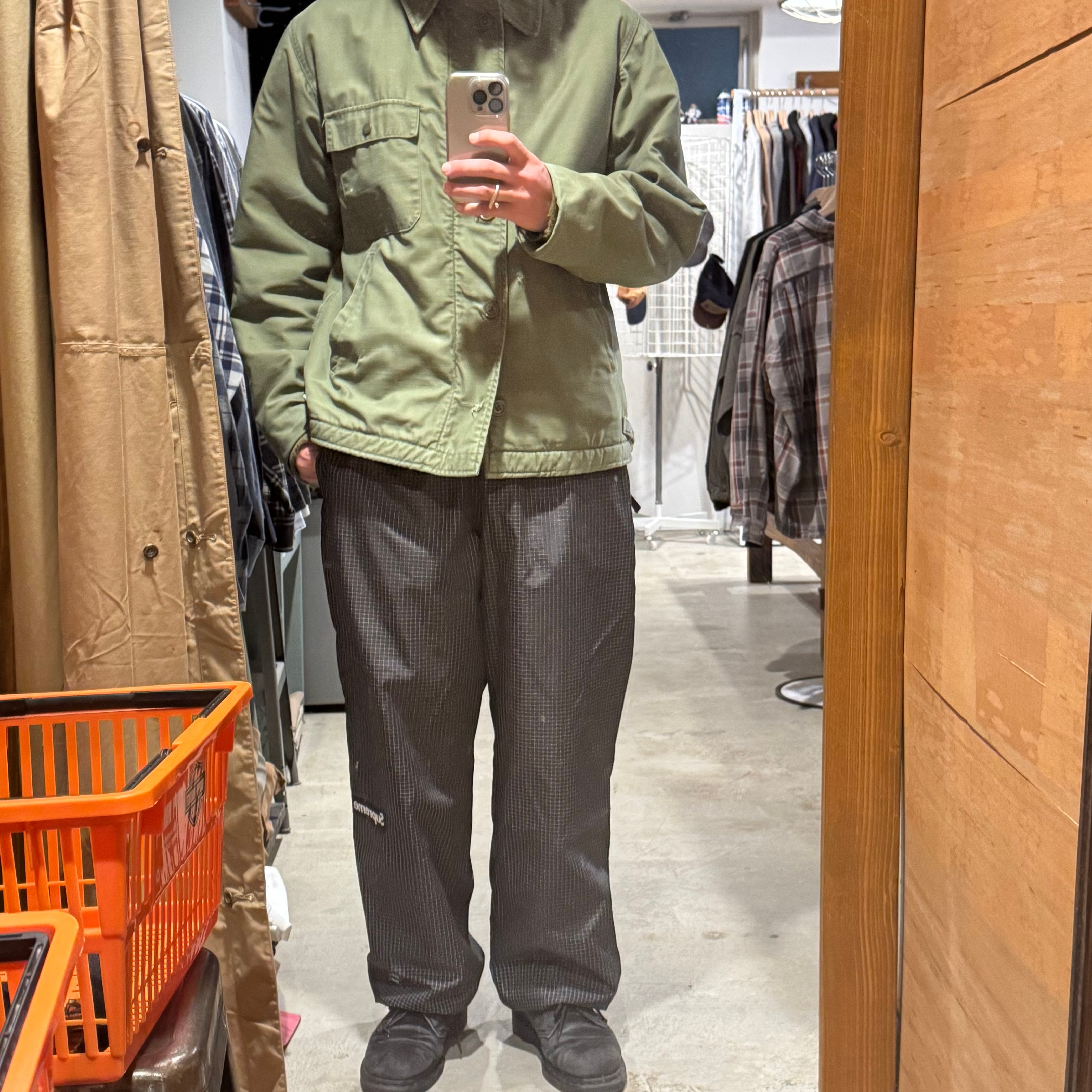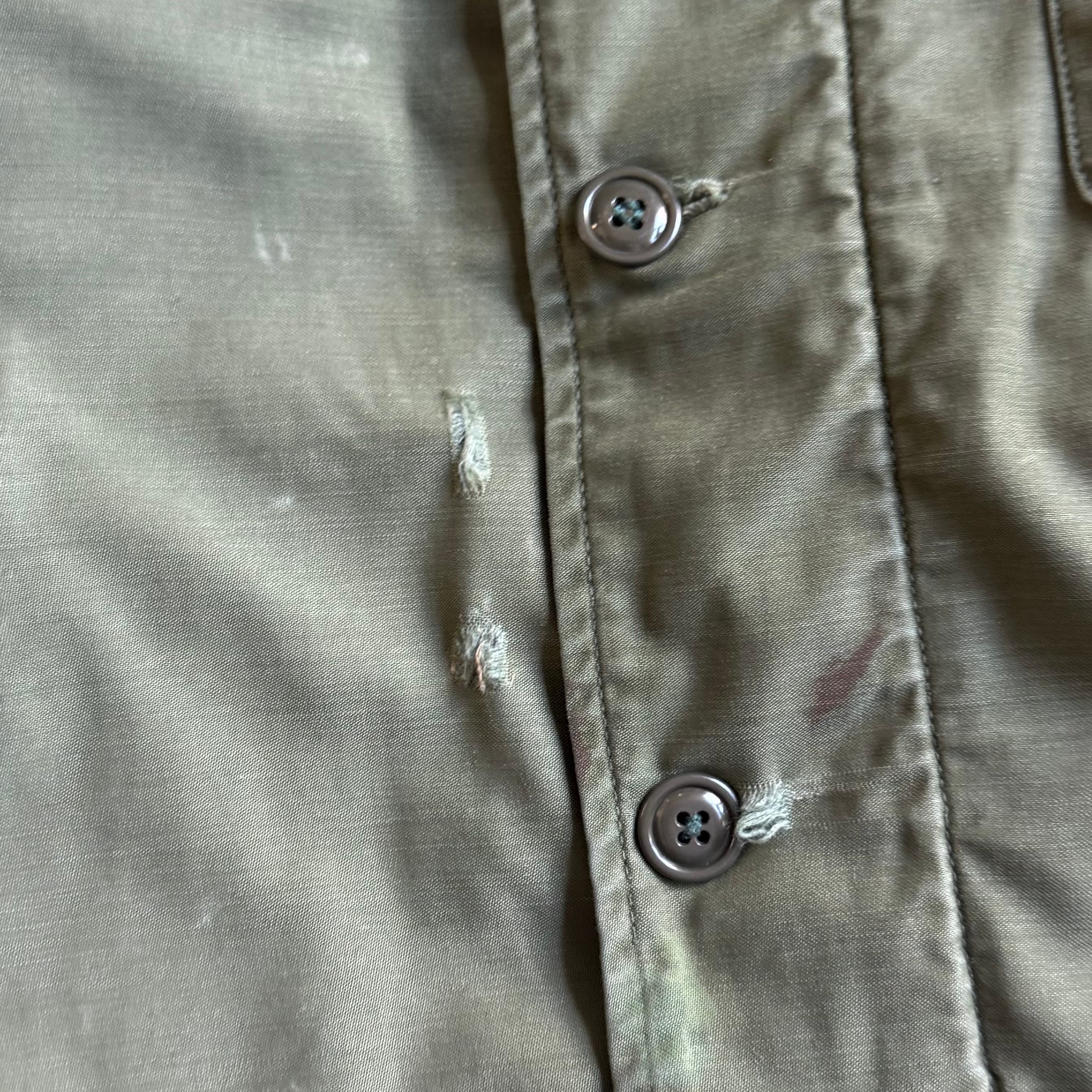 •SIZE M 肩幅 47.5cm 袖丈 64.5cm 身幅 60cm 着丈 71.5cm 175cm着用 •MATERIAL COTTON 100% •COLOR カーキ •CONDITION 使用感、全体的にダメージ、汚れ。写真にてご確認ください。