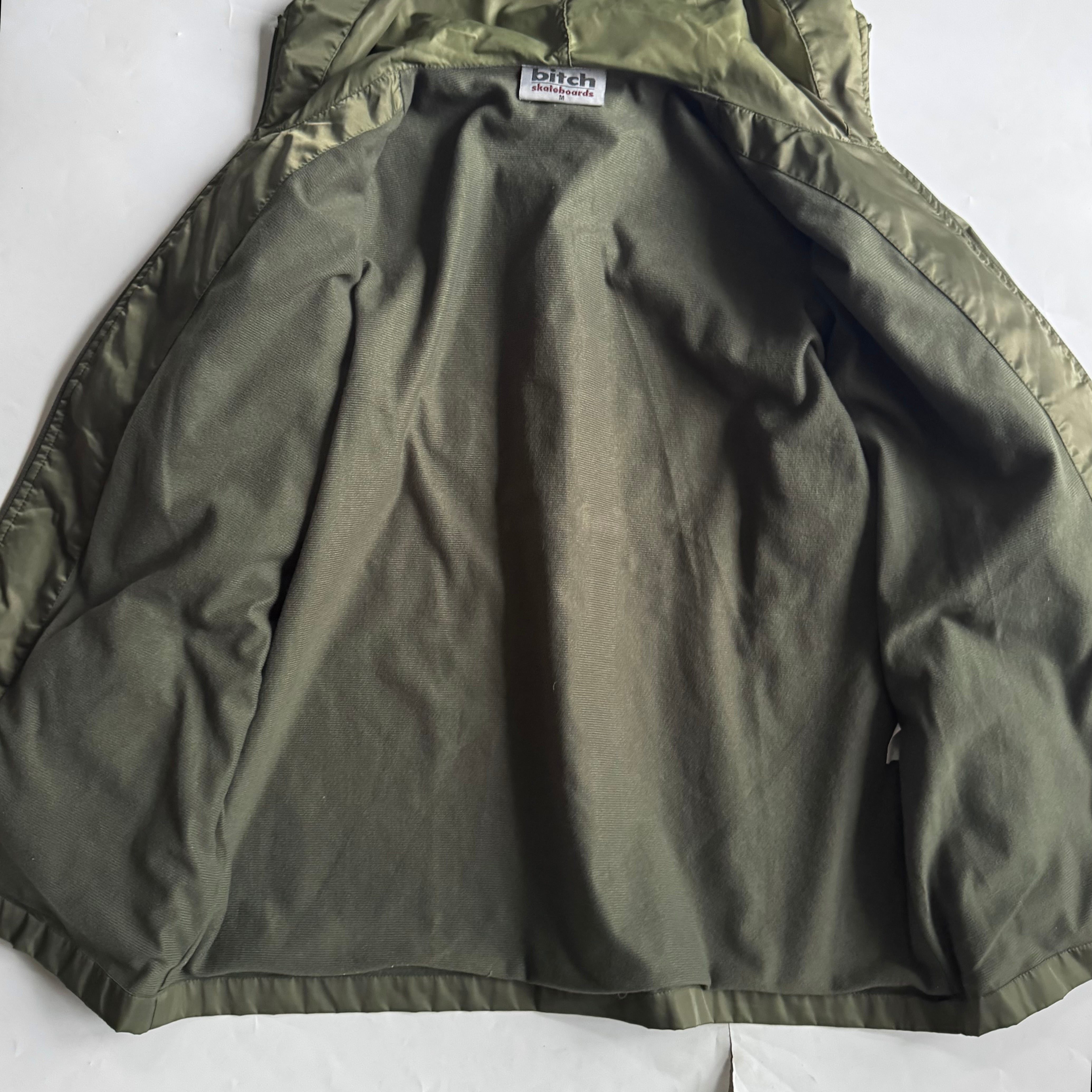 リフレクティブのロゴパッチ付 アーバンなカラー 裏地は薄手のフリースでこの時期調子良さげです •SIZE M 肩幅 53cm 袖丈 62cm 身幅 62cm 着丈 73cm 175cm着用 •MATERIAL NYLON 100% •COLOR カーキグリーン •CONDITION アーム部分に薄い汚れ。 写真にてご確認下さい。 me1026