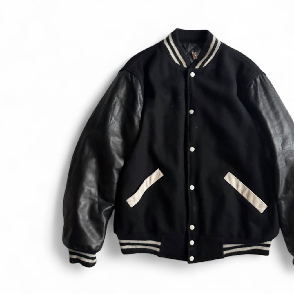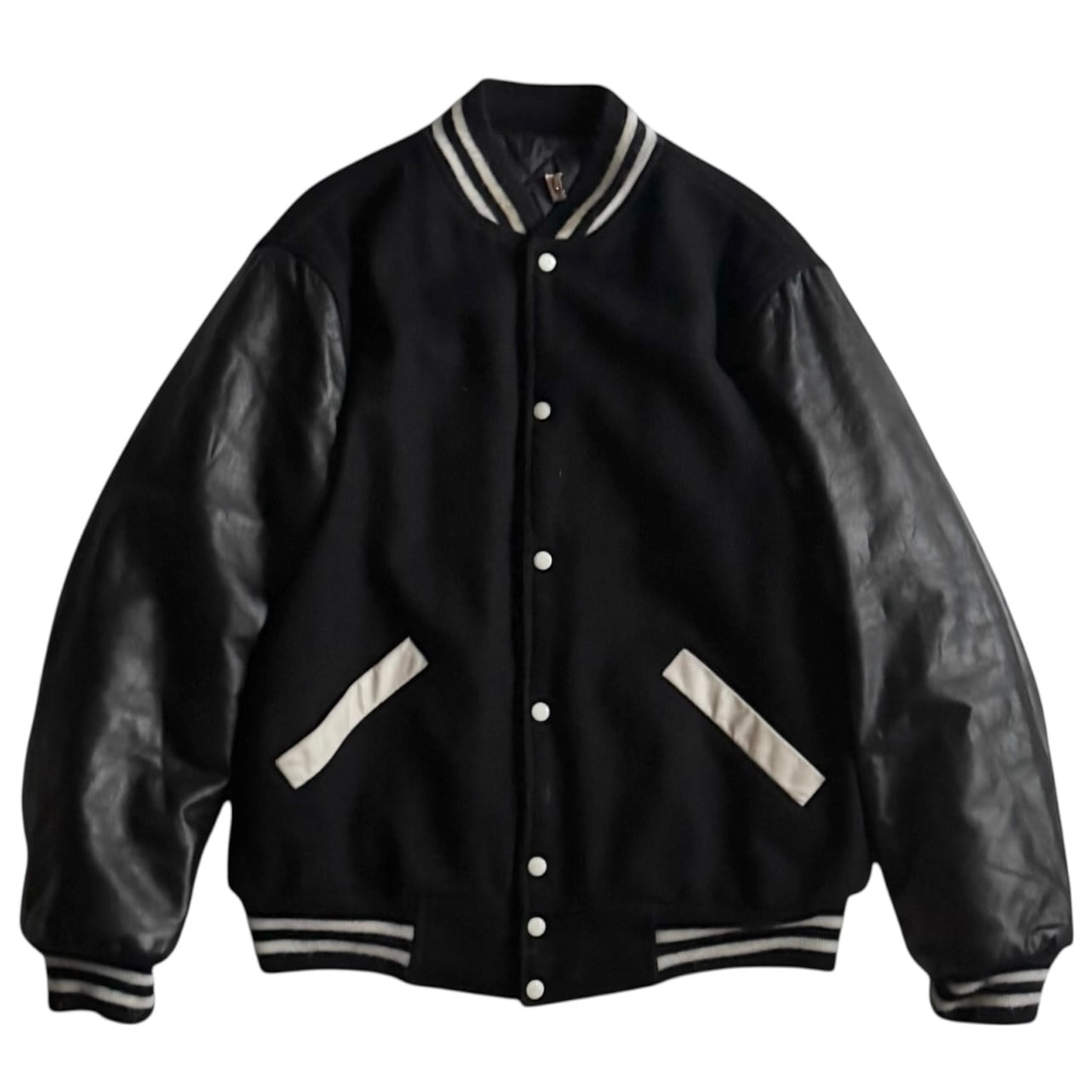 •SIZE L 肩幅 53cm 袖丈 67cm 身幅 63cm 着丈 70cm 175cm着用 •MATERIAL WOOL LEATHER •COLOR ブラック •CONDITION フロントに薄い汚れ、小さなほつれ。 写真にてご確認下さい。 kt526