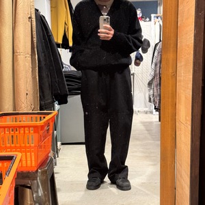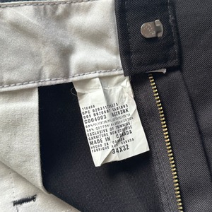 •SIZE 34×32 ウエスト 90cm 股上 35cm 股下 82cm 渡り 35cm 裾幅 26.5cm 175cm着用 •MATERIAL POLYESTER 65% COTTON 35% •COLOR ブラック •CONDITION 背面ヒップ辺りに小さな汚れ。 写真にてご確認下さい。