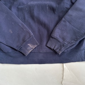 珍しいリバースタイプ ヘビーなオンスの生地◎ •SIZE 表記不明 肩幅 55cm 袖丈 65cm 身幅 60cm 着丈 68cm 175cm着用 •MATERIAL 恐らく COTTON POLYESTER •COLOR ネイビー •CONDITION 全体的に汚れ、ペンキ汚れ、袖や襟にダメージ。写真にてご確認下さい。 kt535