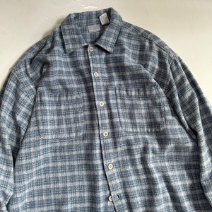 ボックスタイプで台襟がない仕様 よりラフな雰囲気 ナイスカラーです •SIZE L 肩幅 55cm 袖丈 54.5cm 身幅 62cm 着丈 74cm 175cm着用 •MATERIAL COTTON 100% •COLOR ブルー系 •CONDITION 使用感はございますが、目立った傷や汚れ等はございません。 gar2621