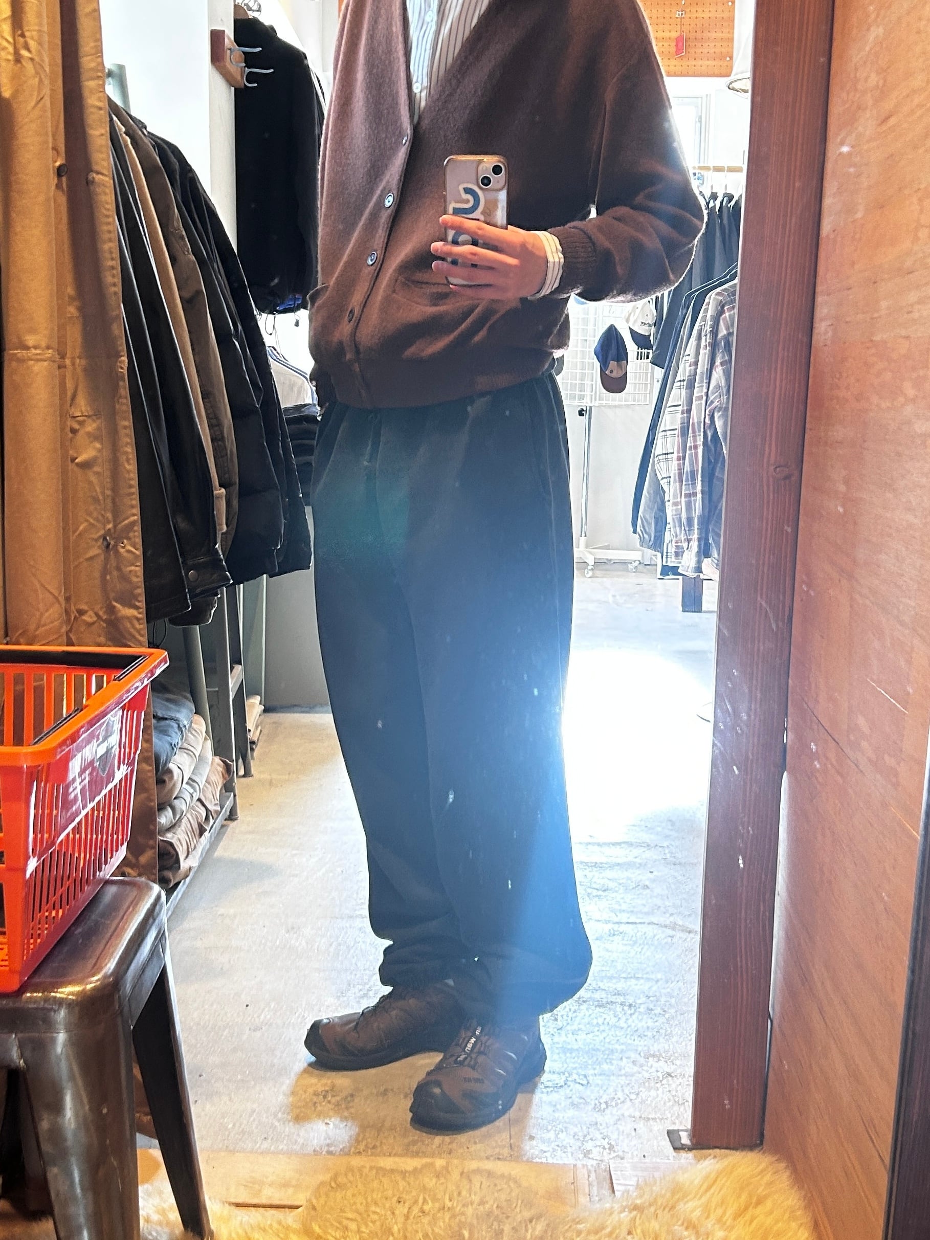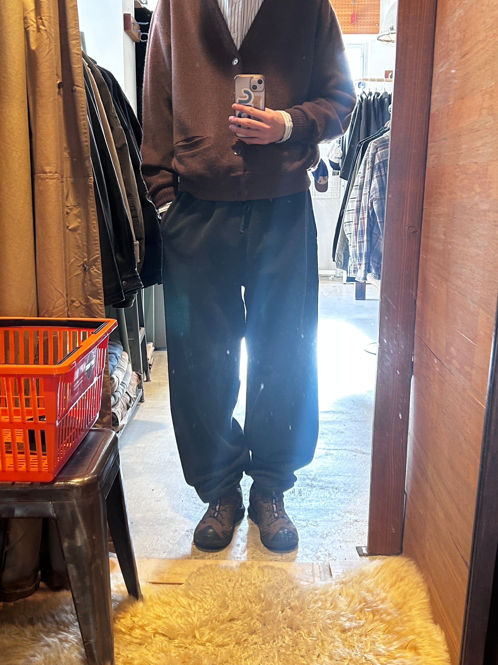 上もでませんが、パンツはもっとみつかりません独特のがさっと感が癖になります •SIZE L ウエスト 88cm 股上 36cm 股下 79.5cm わたり 35cm 裾幅 15cm 180cm着用 •MATERIAL Cotton100% •COLOR ブラック •CONDITION 全体的にフェード感あり 写真参照 kt543